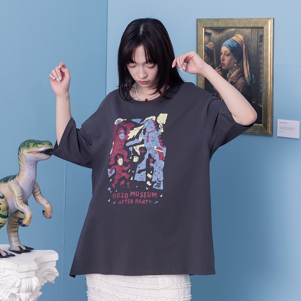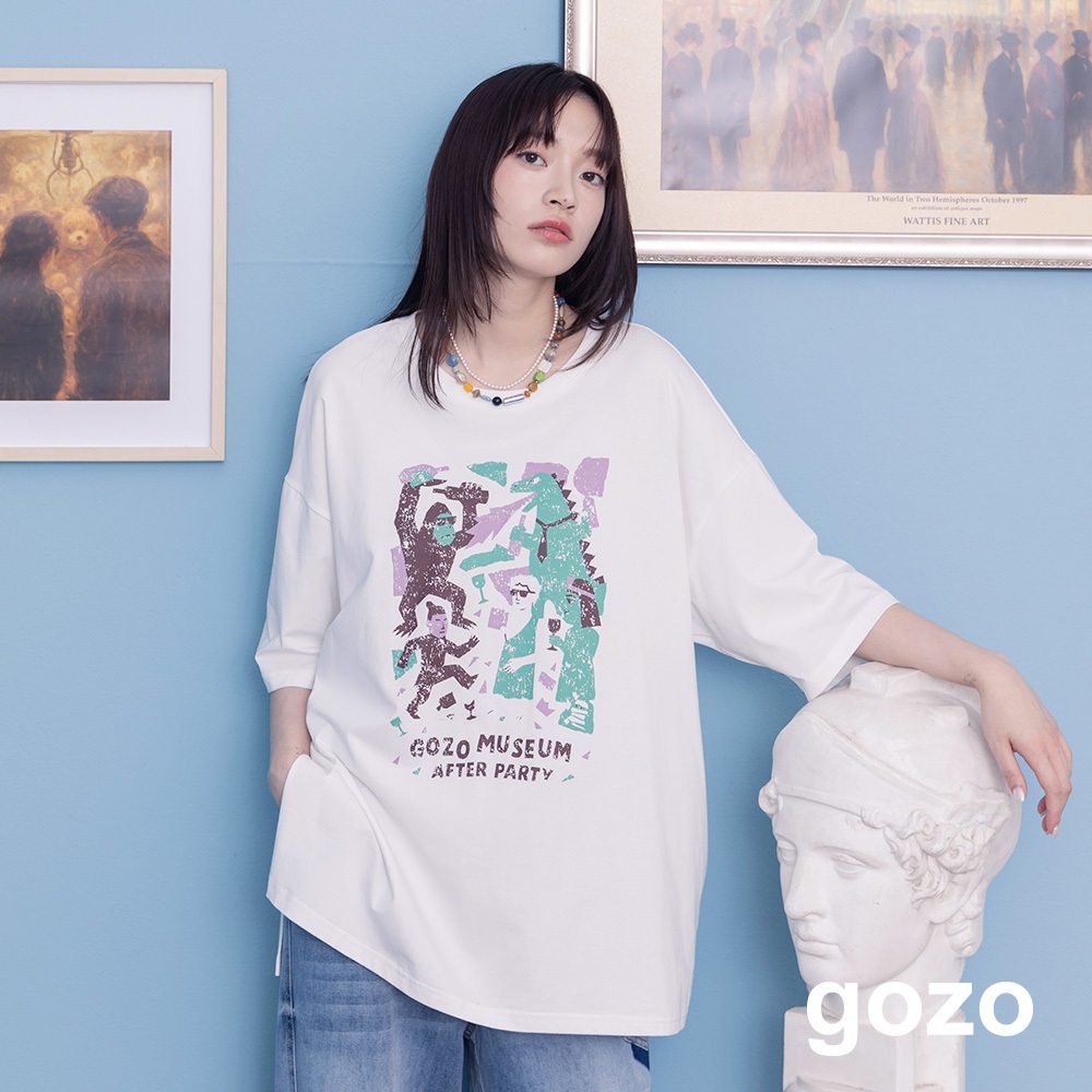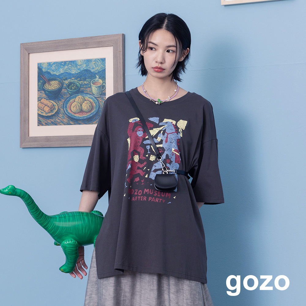 【gozo】➤博物館after party寬鬆涼感T恤(白色/深灰_F) | 女裝 圓領 涼感白,F|深灰,FT-shirtsgozo 品牌旗艦店