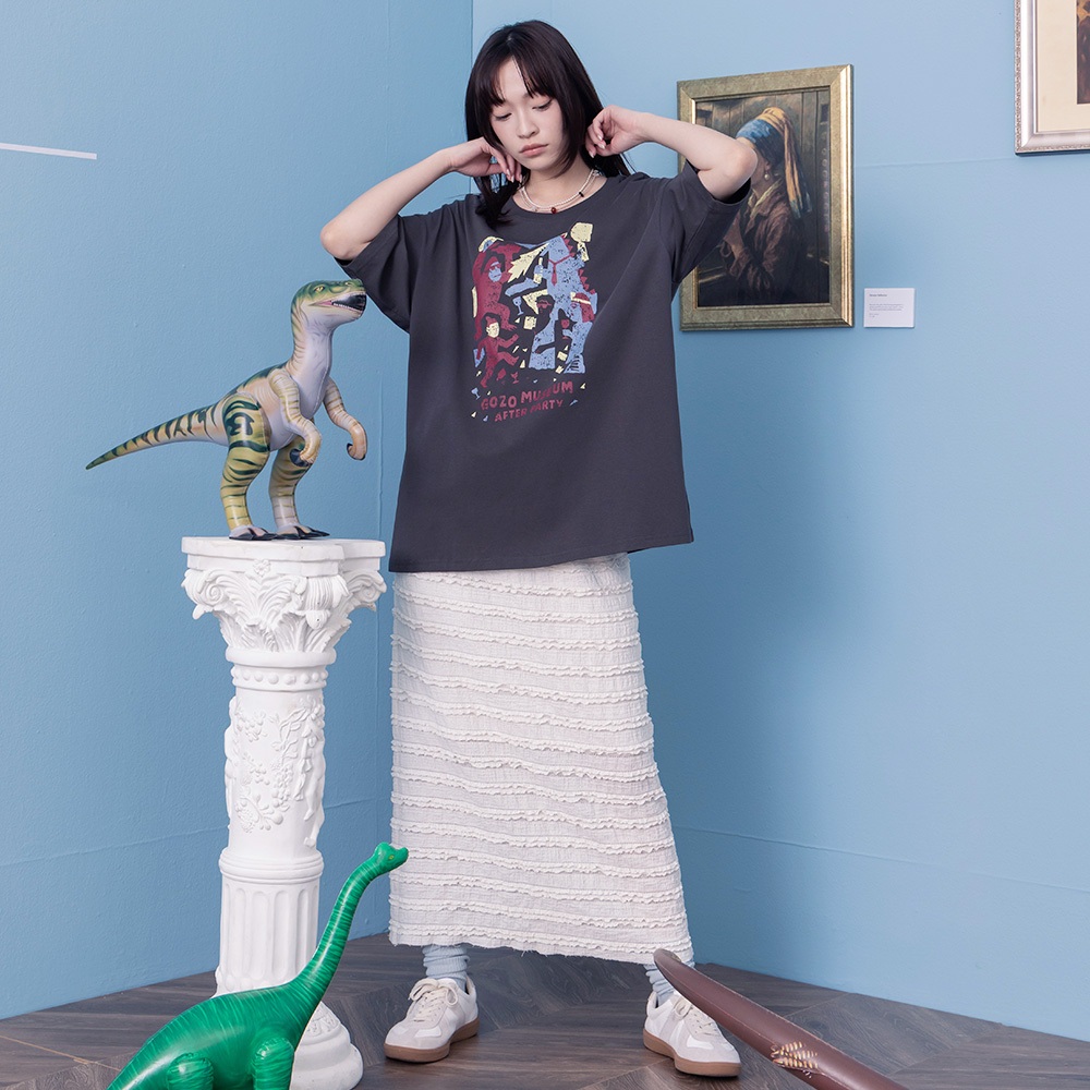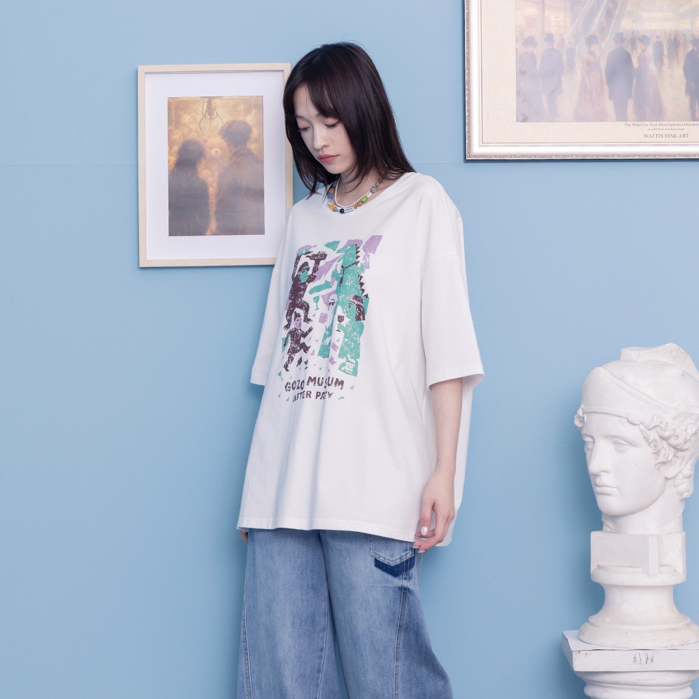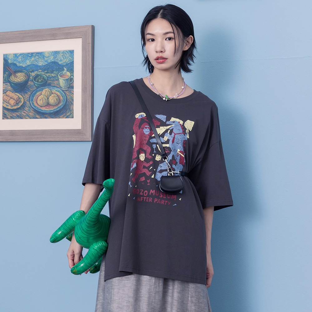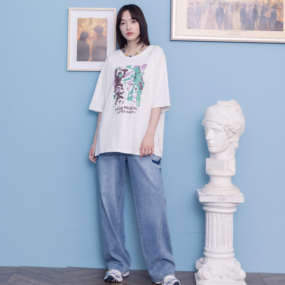 【gozo】➤博物館after party寬鬆涼感T恤(白色/深灰_F) | 女裝 圓領 涼感白,F|深灰,FT-shirtsgozo 品牌旗艦店