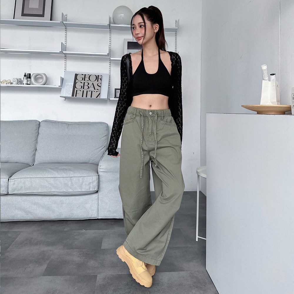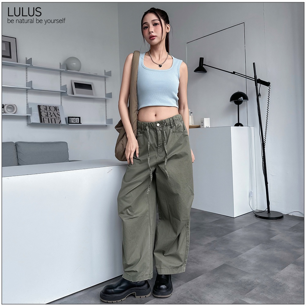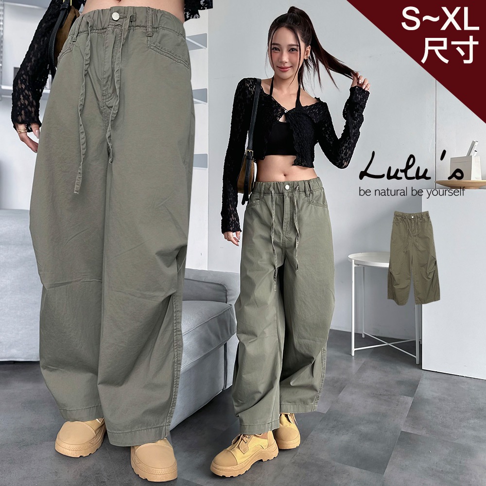 LULUS/現貨/小隻女的腰鬆緊工裝長褲S-XL軍綠【A04250150】抽繩 寬褲 250625軍綠L|軍綠M|軍綠S|軍綠XLPantsLULUS