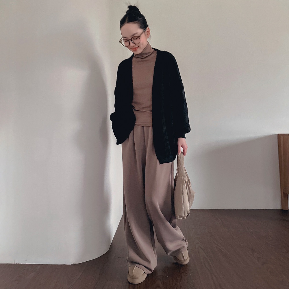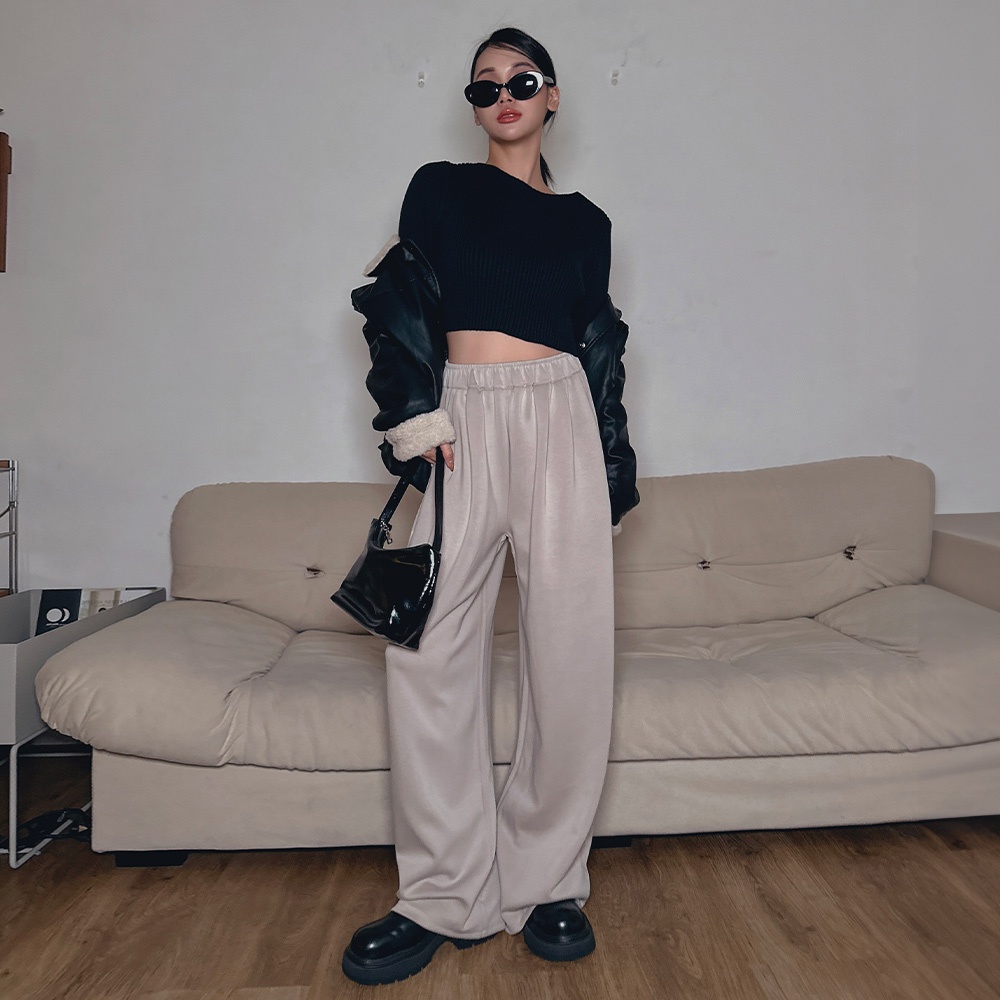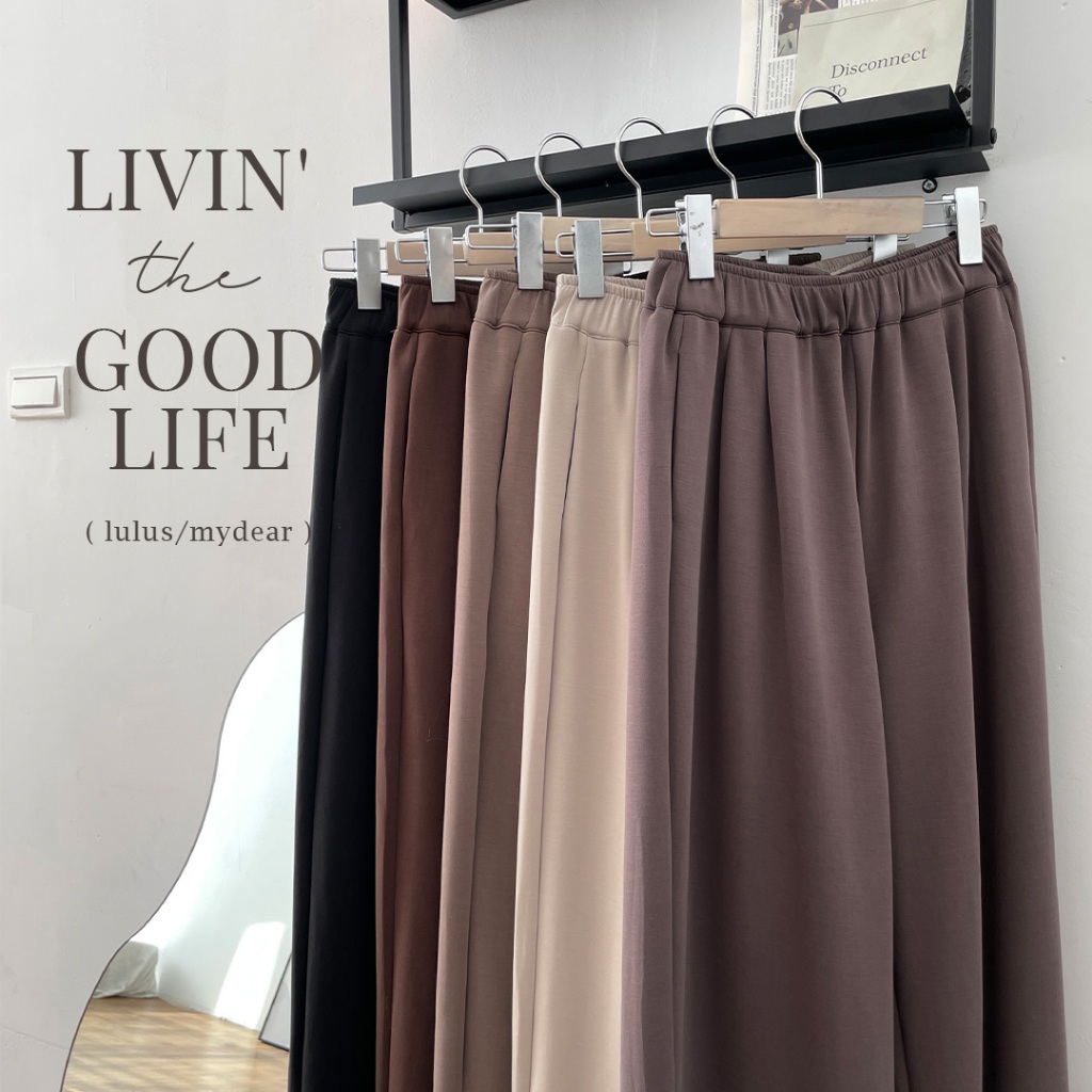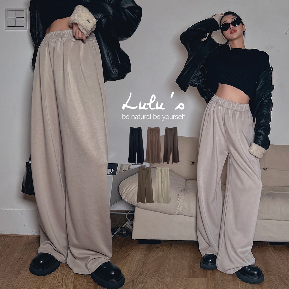 LULUS/太空輕柔棉休閒寬褲5色【A04240240】垂墜輕棉 直筒長褲241205灰|灰杏|灰綠|黑|咖啡PantsLULUS