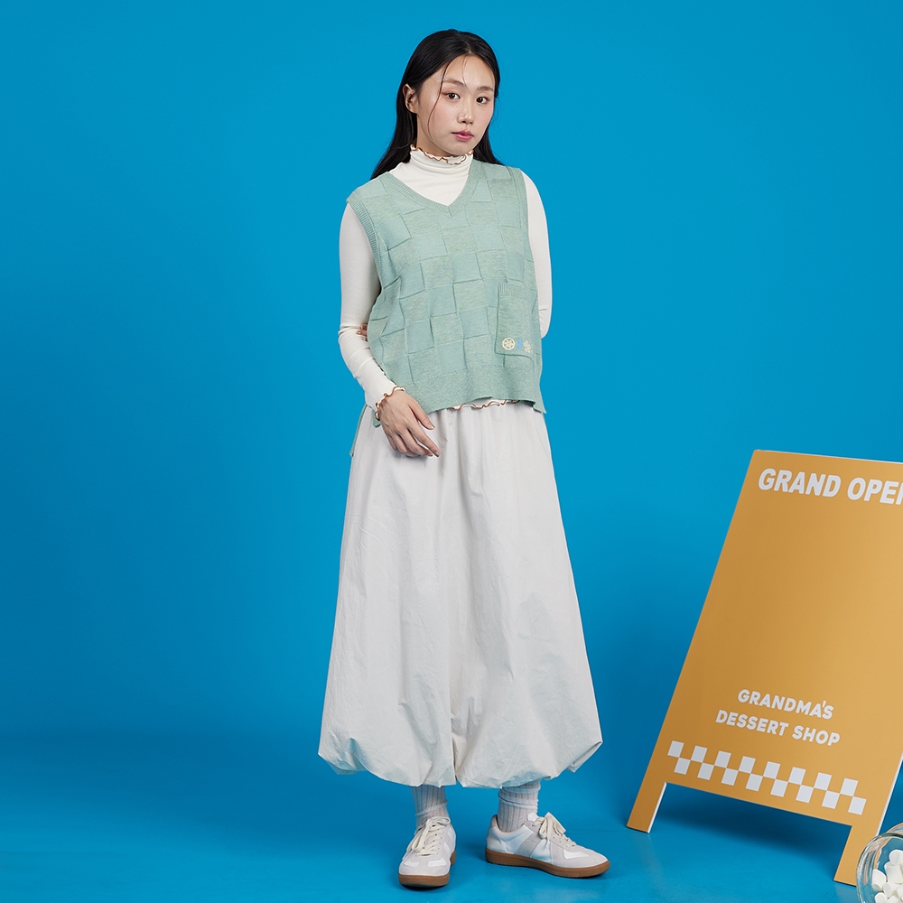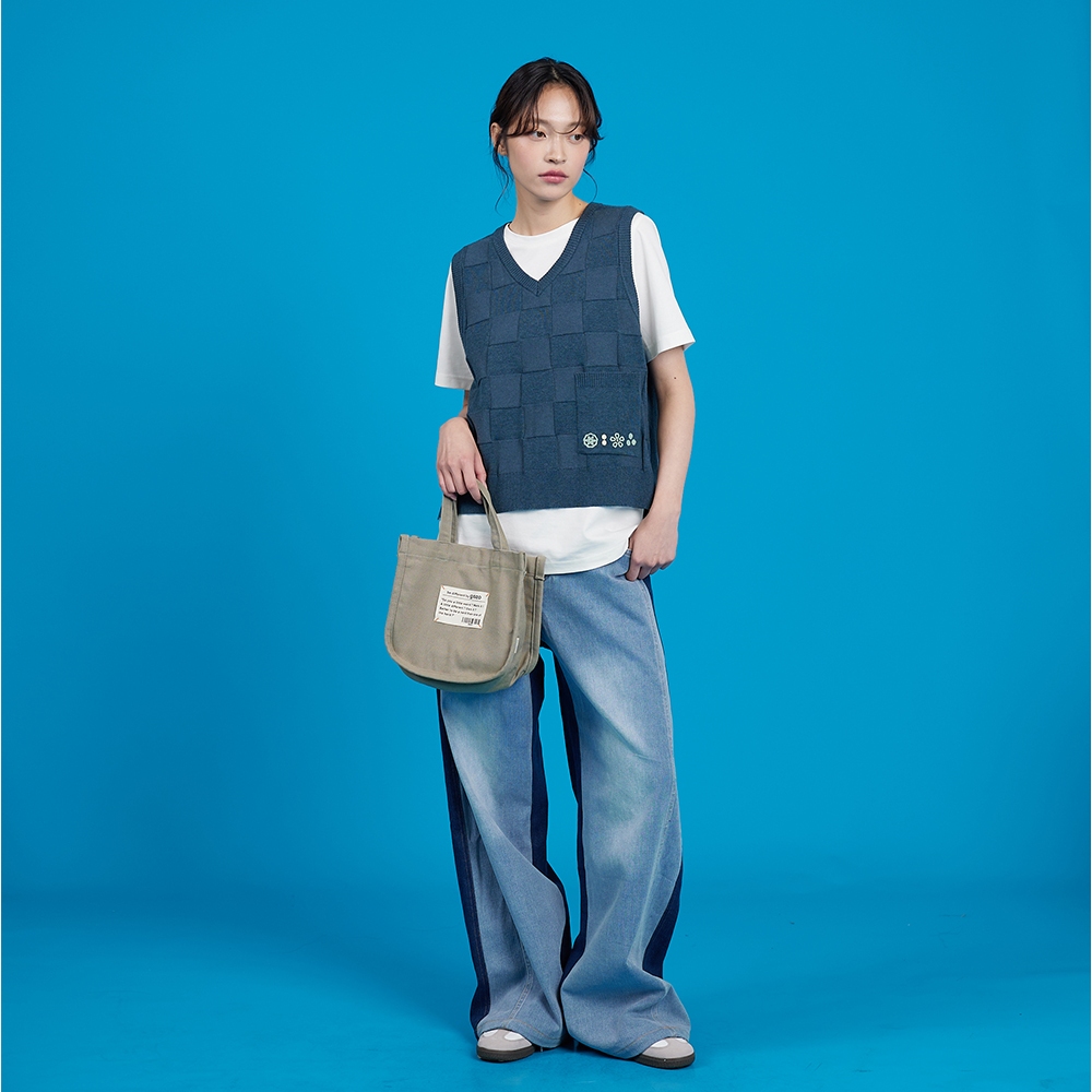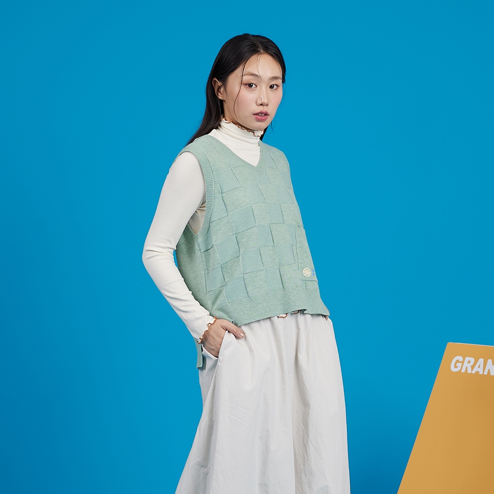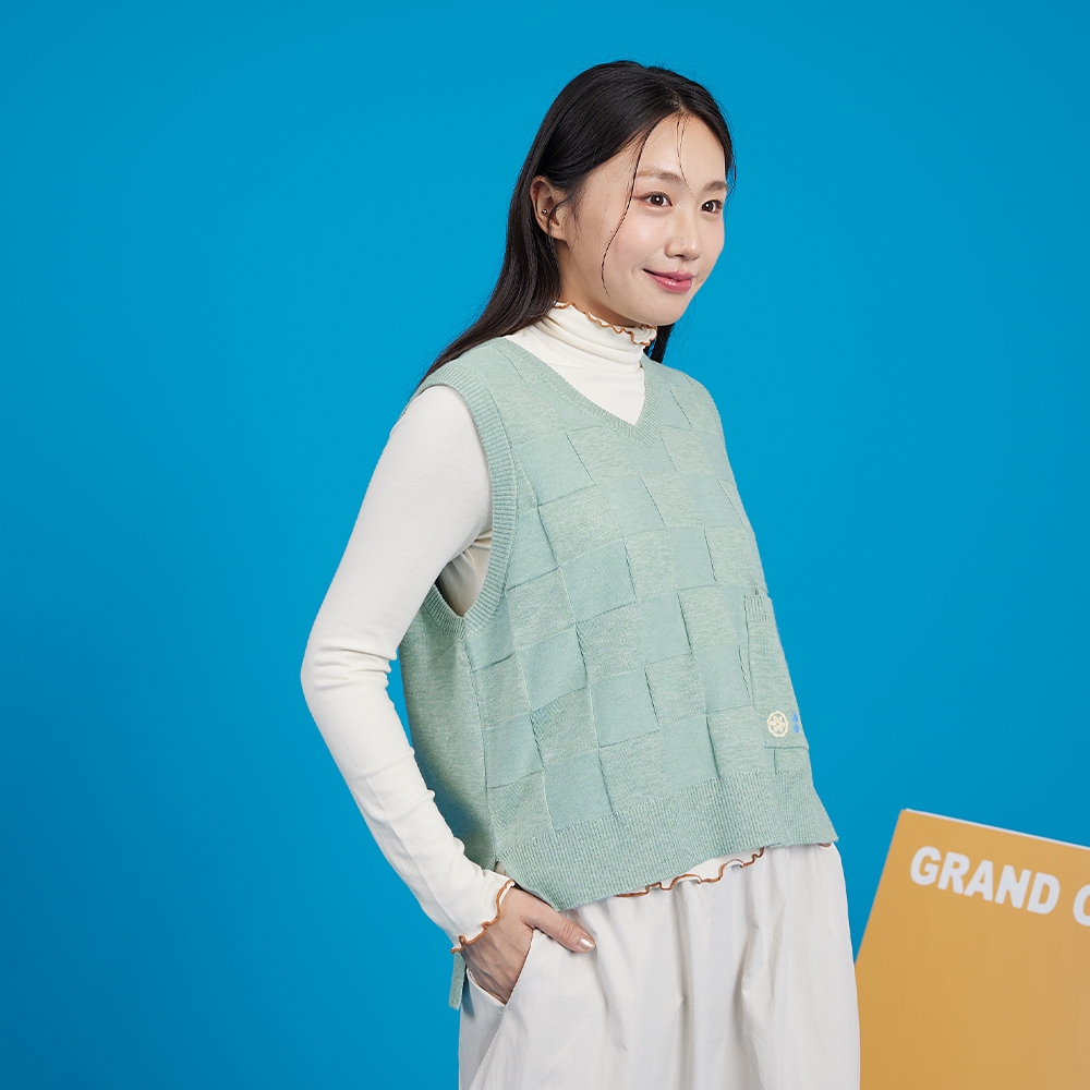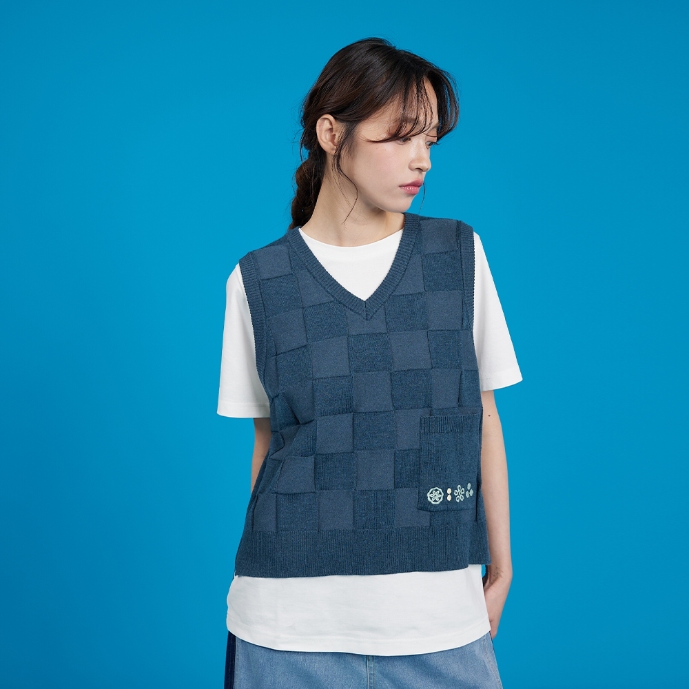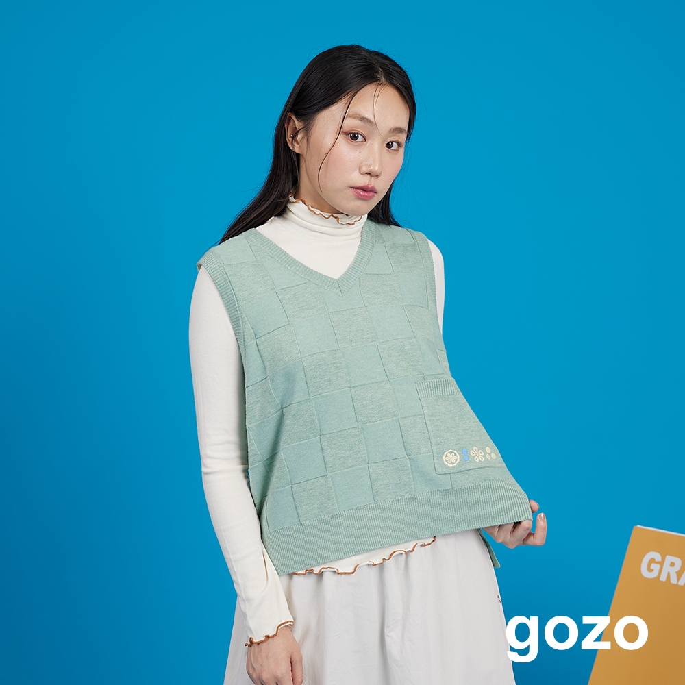 【gozo】綠豆椪摩斯密碼棋盤格毛衣背心(深藍/綠色_F) | 女裝 V領 保暖