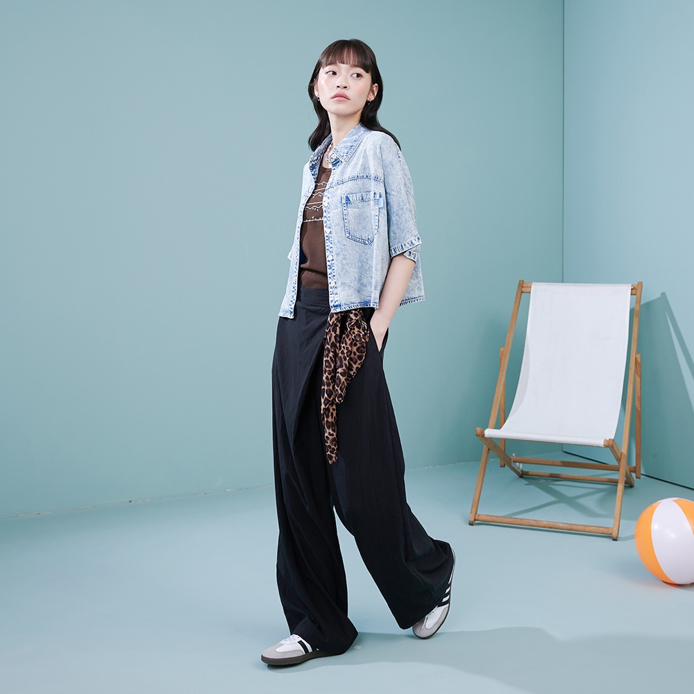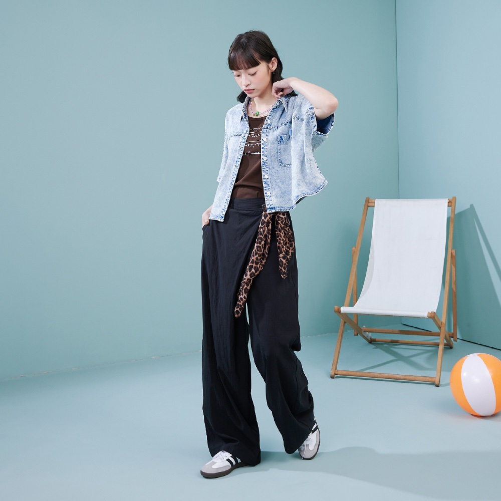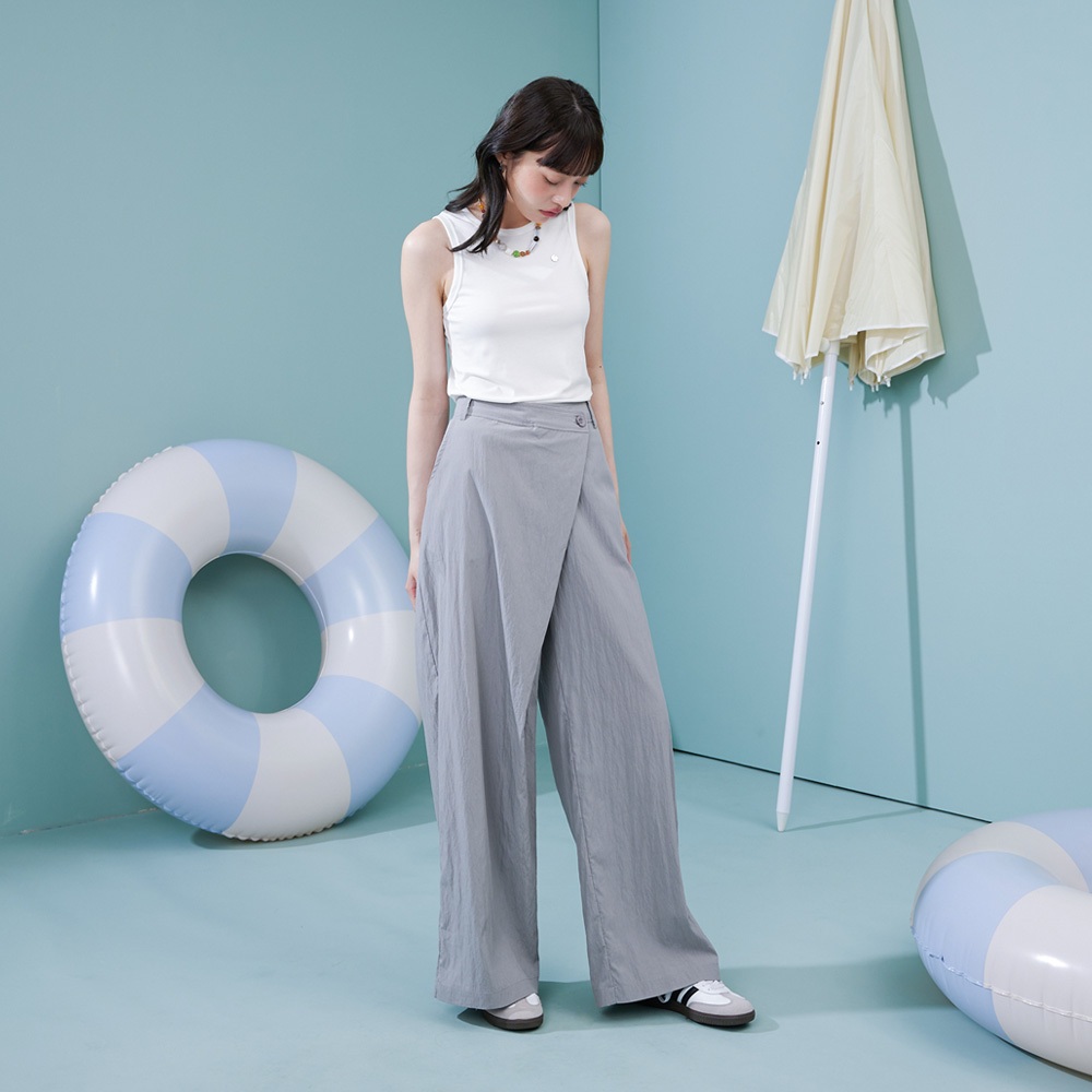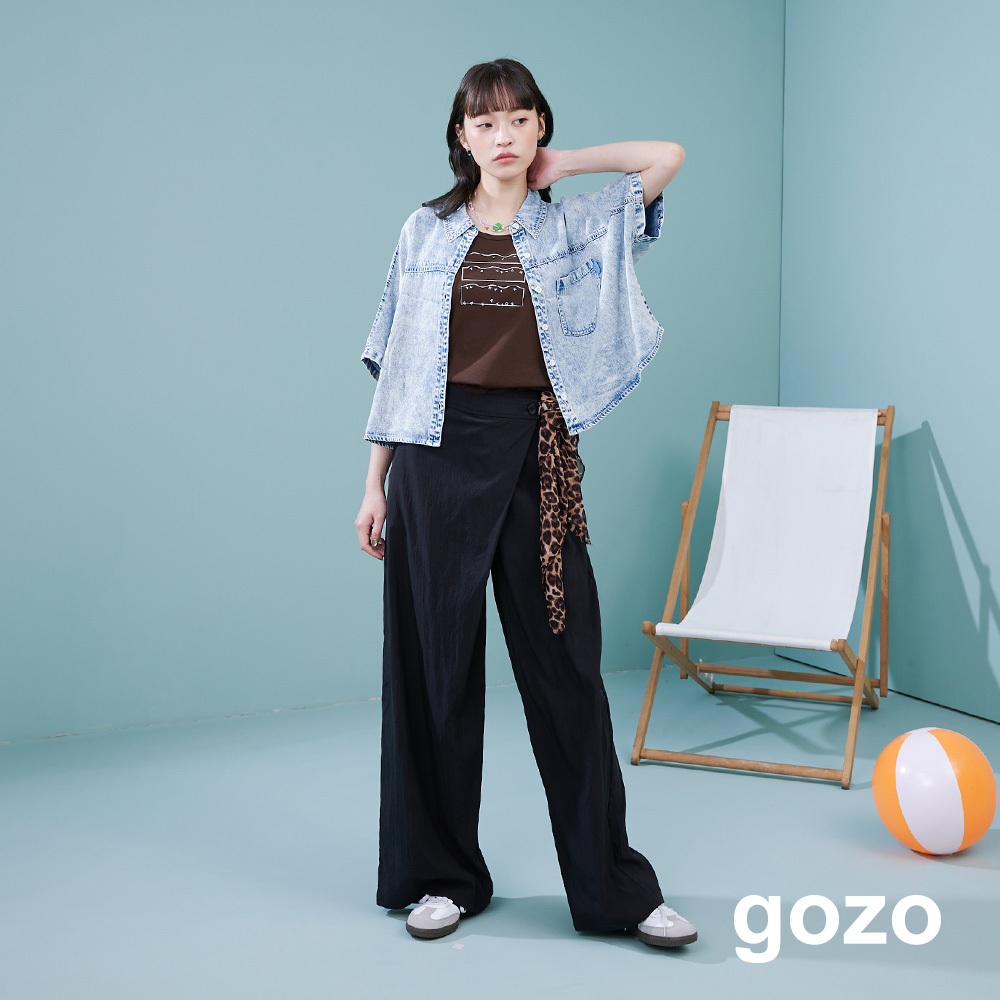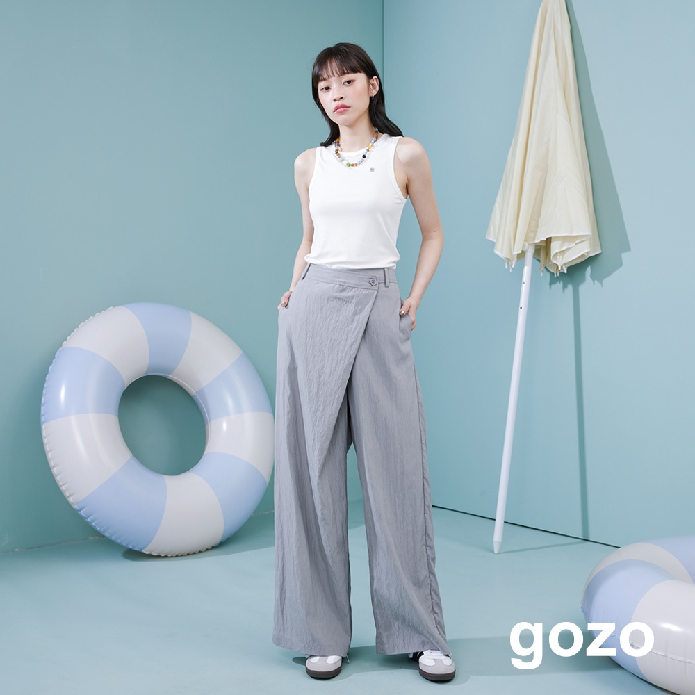 【gozo】涼感天絲側釦裙片寬褲(黑色/灰色_M/L) | 女裝 顯瘦 休閒黑色,M|黑色,L|灰色,M|灰色,LPantsgozo 品牌旗艦店