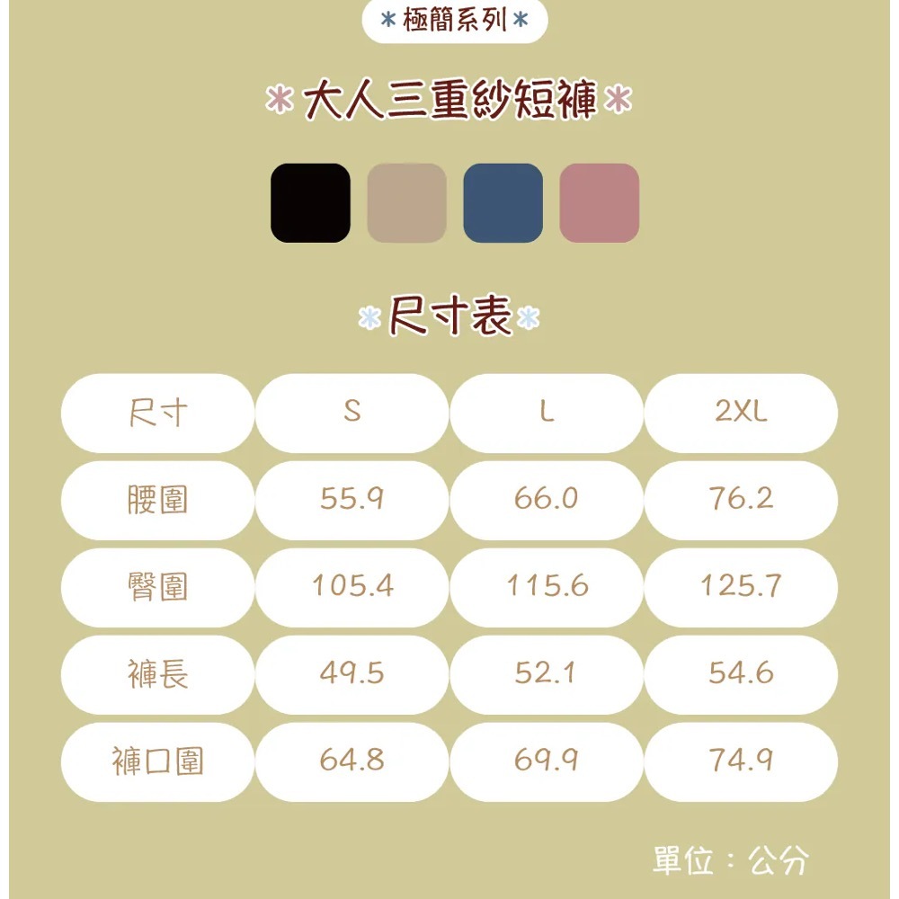 【hahababy】極簡系列-大人三重紗短褲黑色,S|黑色,L|黑色,2XL|卡其色,S|卡其色,L|卡其色,2XL|藍色,S|藍色,L|藍色,2XL|粉色,S|粉色,L|粉色,2XLShortshahababy 品牌直營店