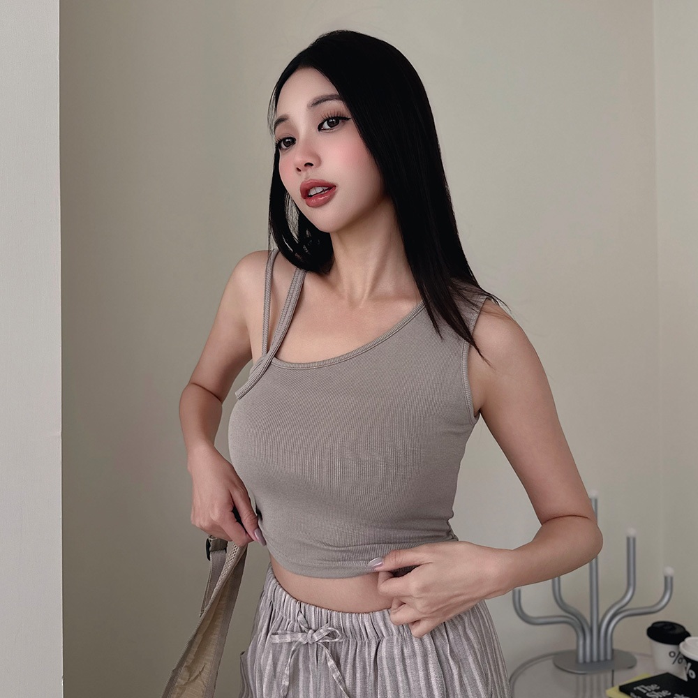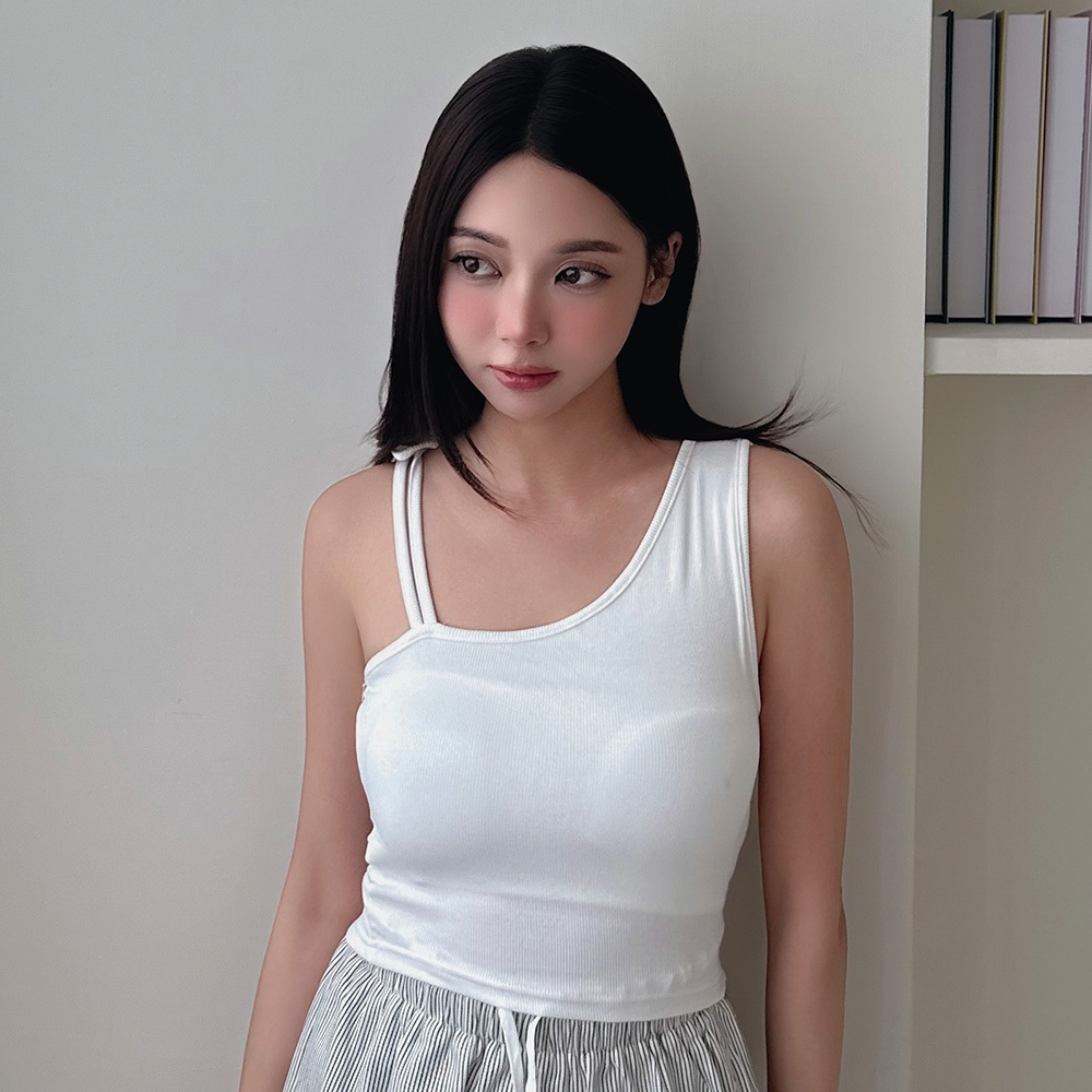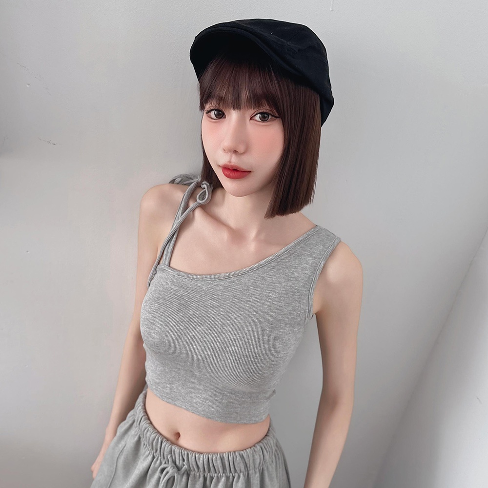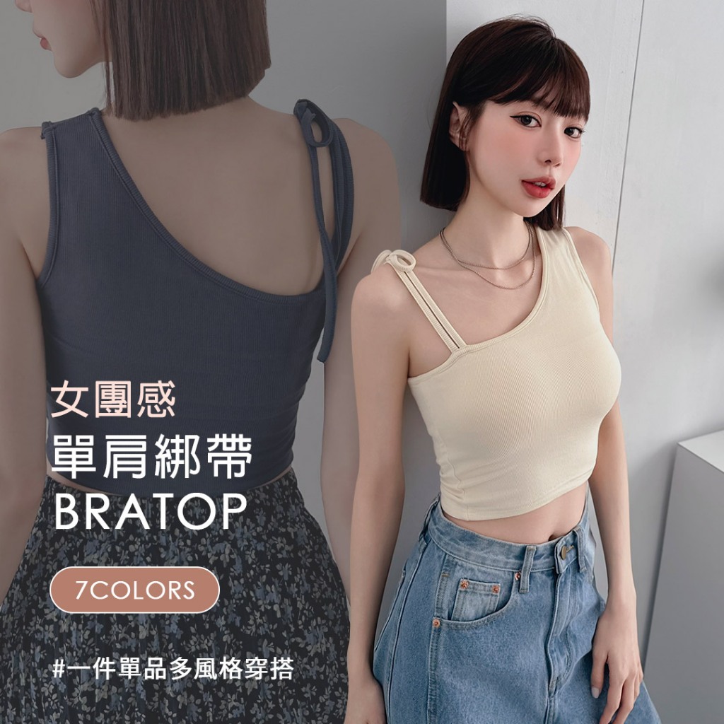 LULUS/單肩綁帶造型罩杯BRATOP背心7色【A01250260】斜肩 胸墊 蝴蝶結250423杏|花灰|黑|寶藍|白|灰咖|奶灰Tanks & CamisolesLULUS