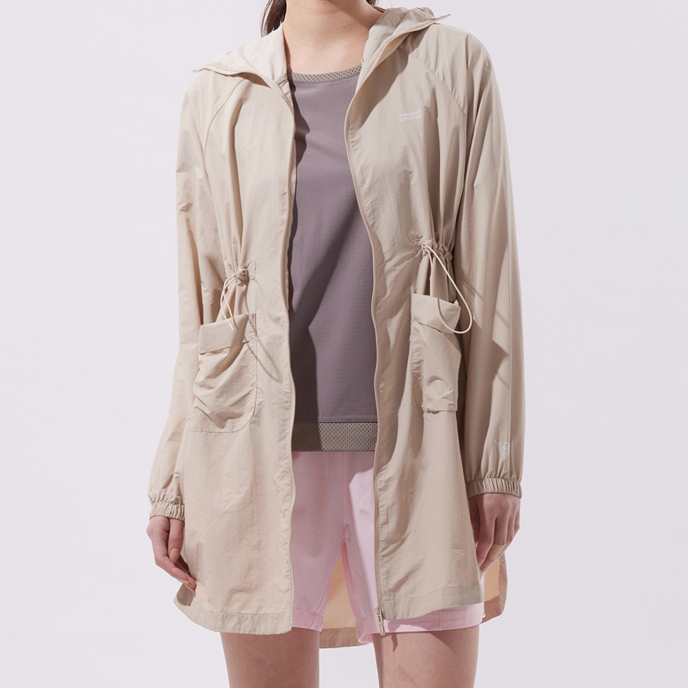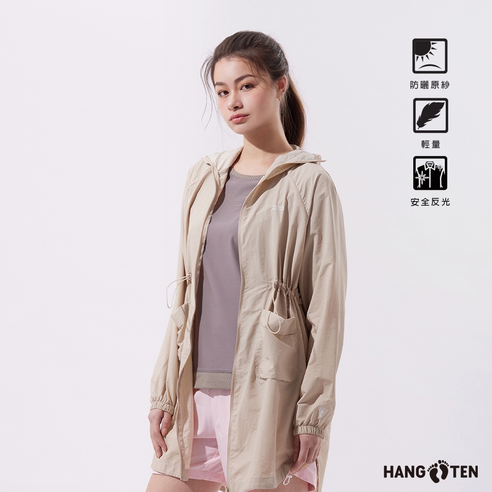 【Hang Ten】女裝-恆溫多功能-防曬涼感原紗長版連帽外套(杏色)M|LOthersHANG TEN 官方旗艦館