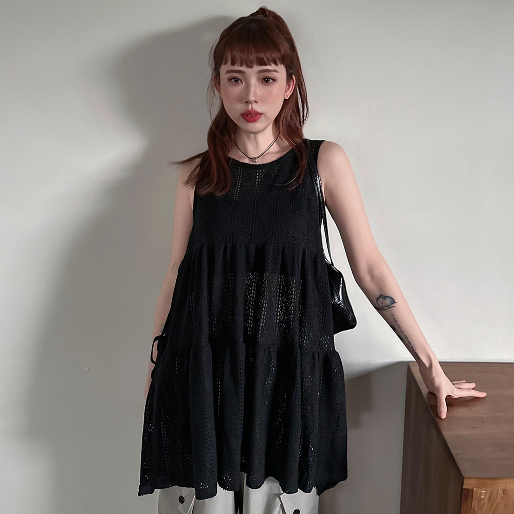 LULUS/編織感簍空側綁帶背心裙3色【A01250404】250611杏|黑|白Tanks & CamisolesLULUS
