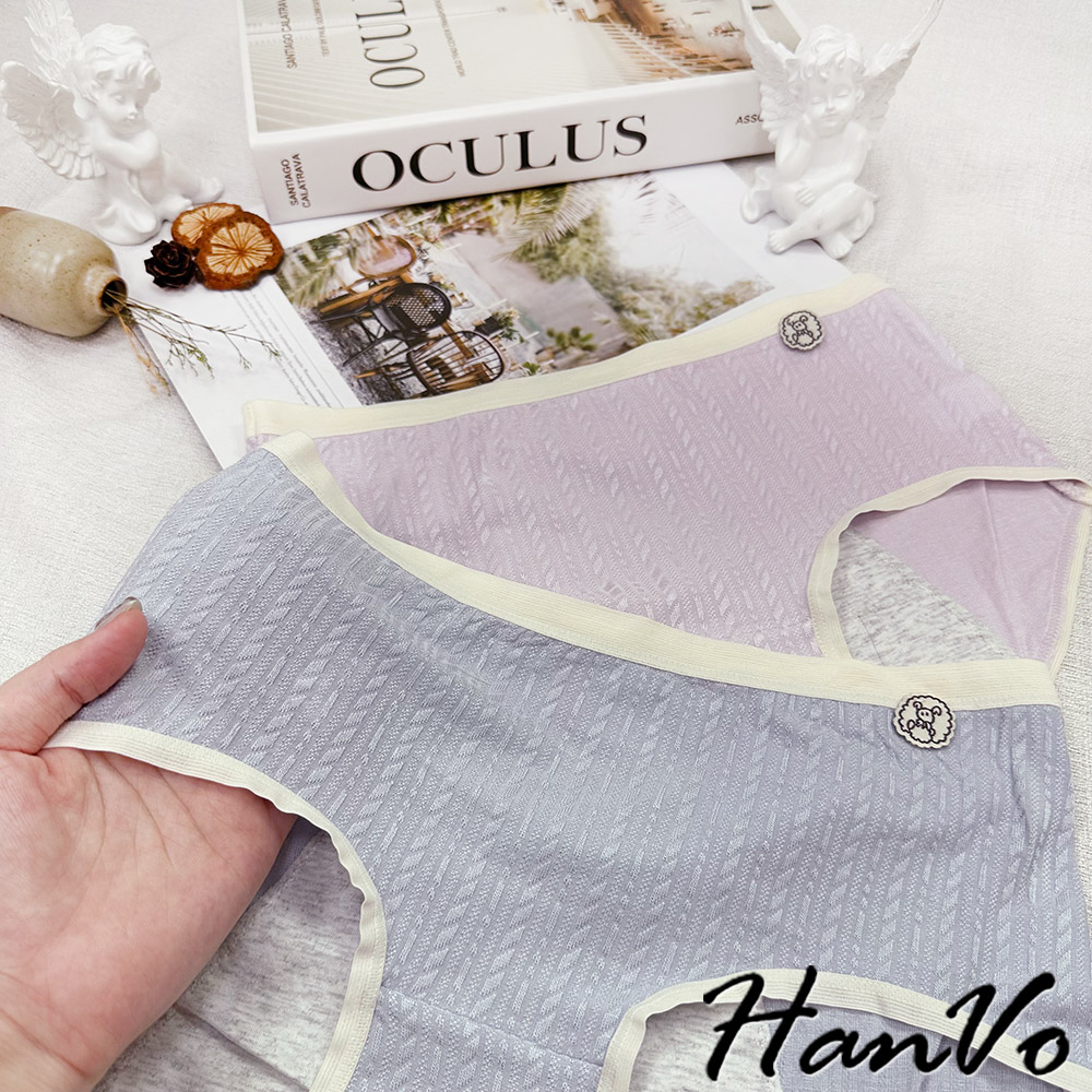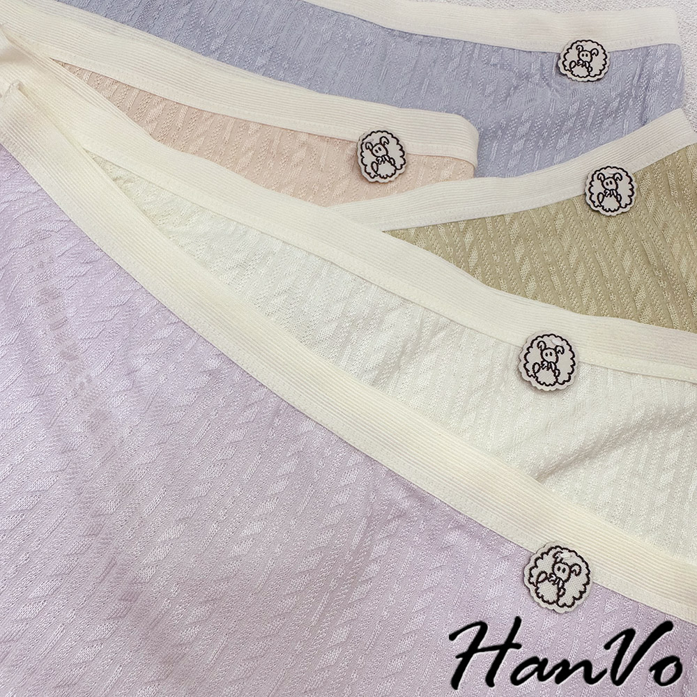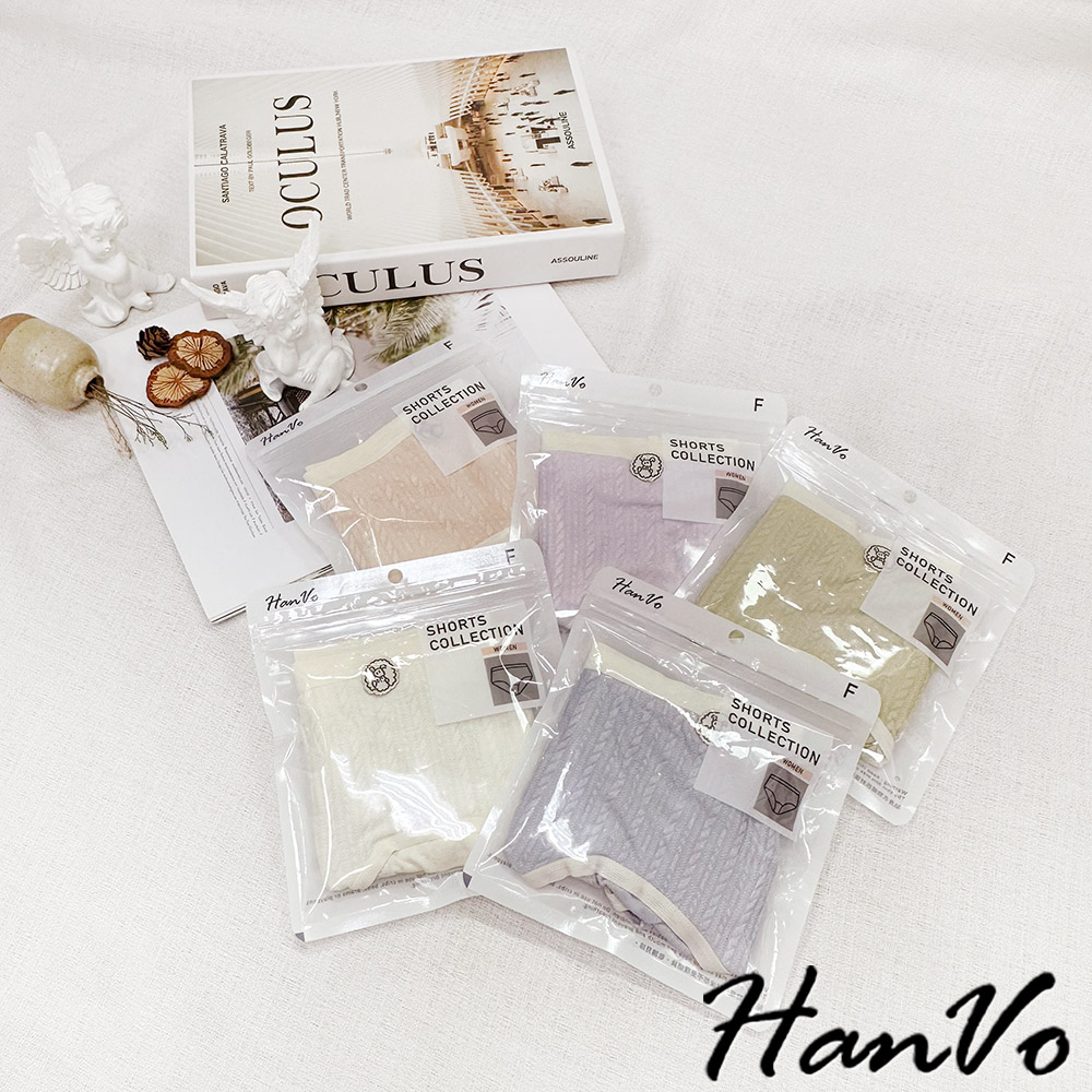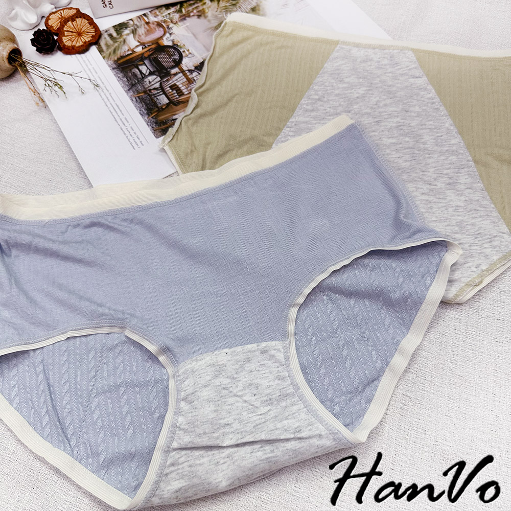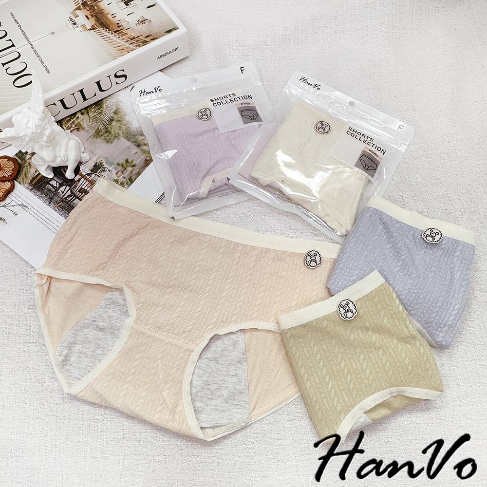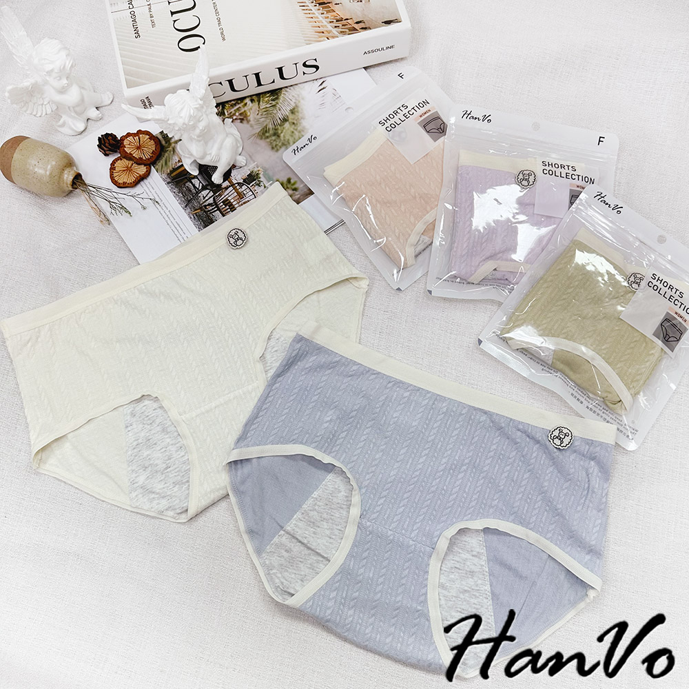 【HanVo】升級款! 奶油色麻花壓紋生理褲系列 獨立包裝 中腰 透氣內褲 女內褲 內褲 內著 A11-5780丁香紫|甜粉橘|酪梨綠|天空藍|米粿白PantiesHanVo Wear Collection