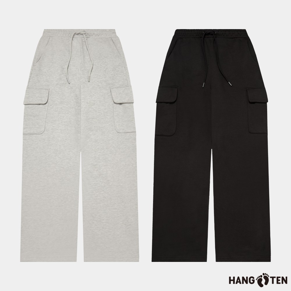 【Hang Ten】女裝-正韓韓國連線-WIDE FIT內刷毛抽繩側邊口袋工裝長褲(多色選)