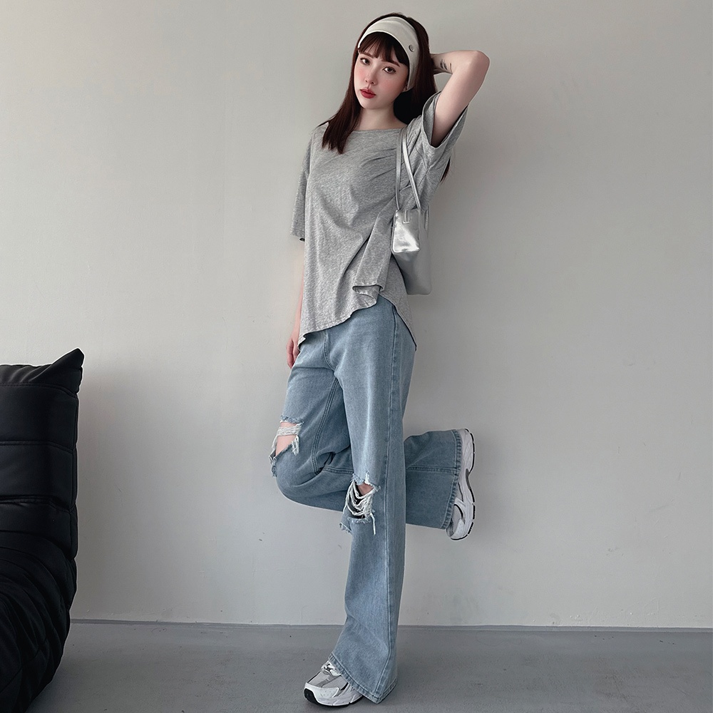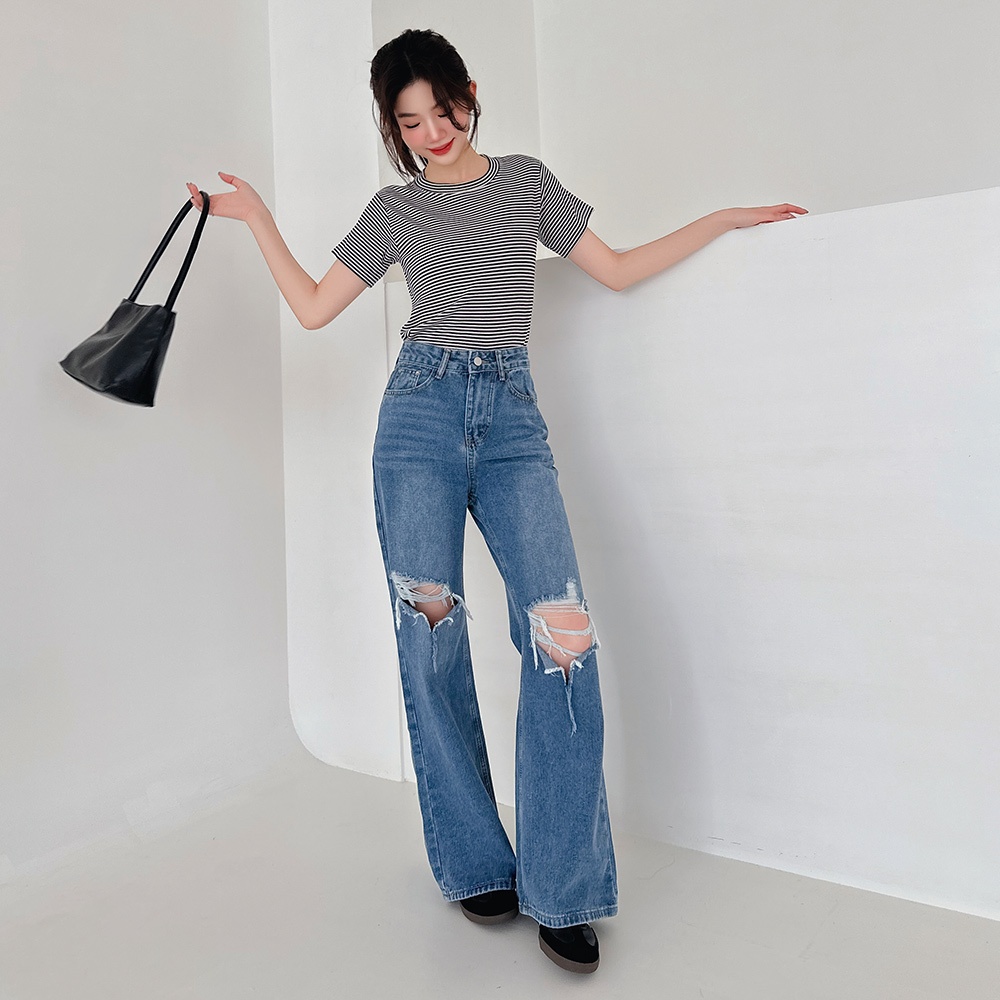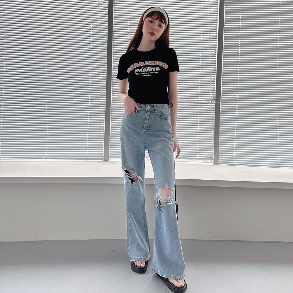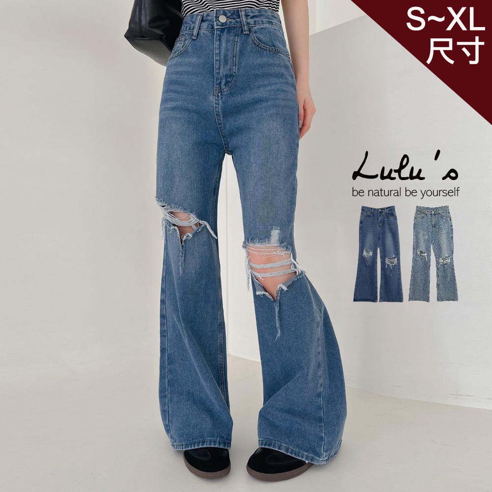 LULUS/現貨/韓國歐膩刷破設計微喇叭牛仔褲S-XL2色【A04250100】250521深藍L|深藍M|深藍S|深藍XL|淺藍L|淺藍M|淺藍S|淺藍XLPantsLULUS