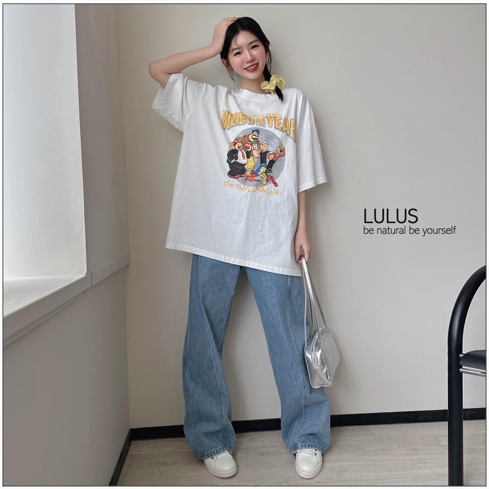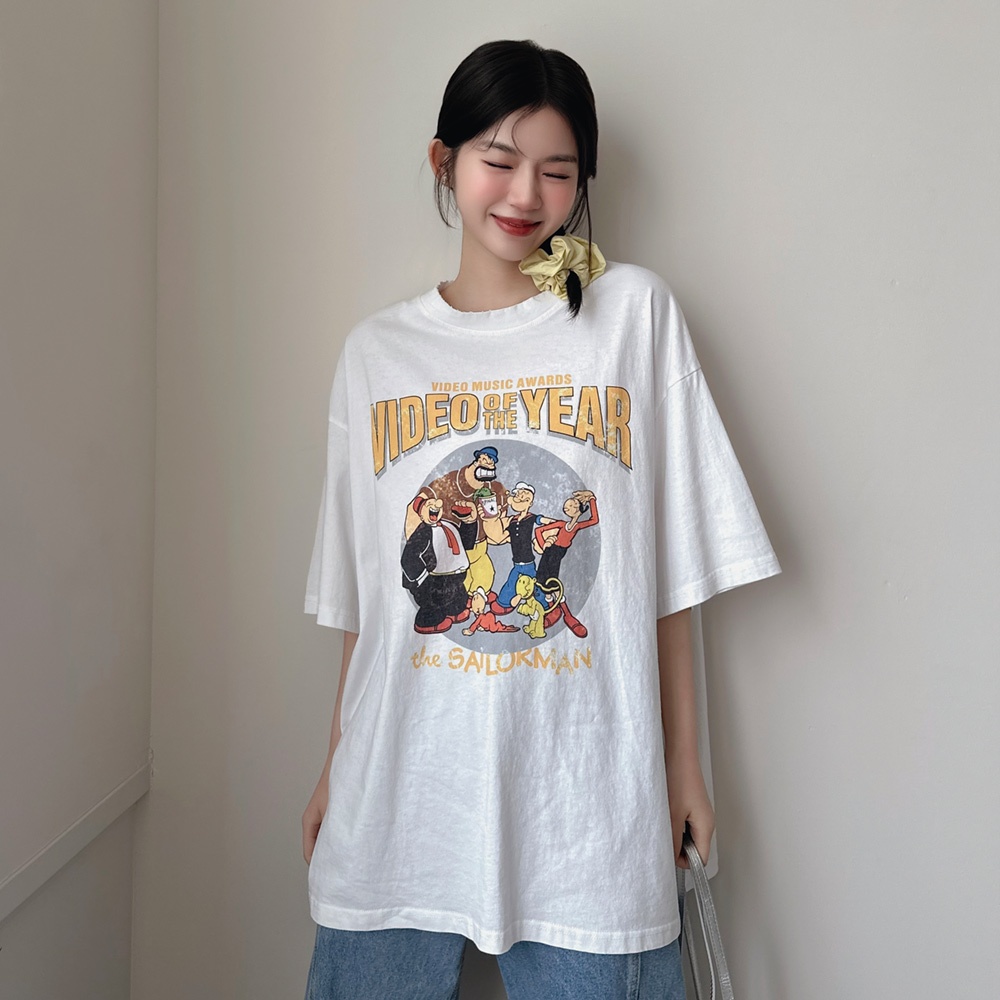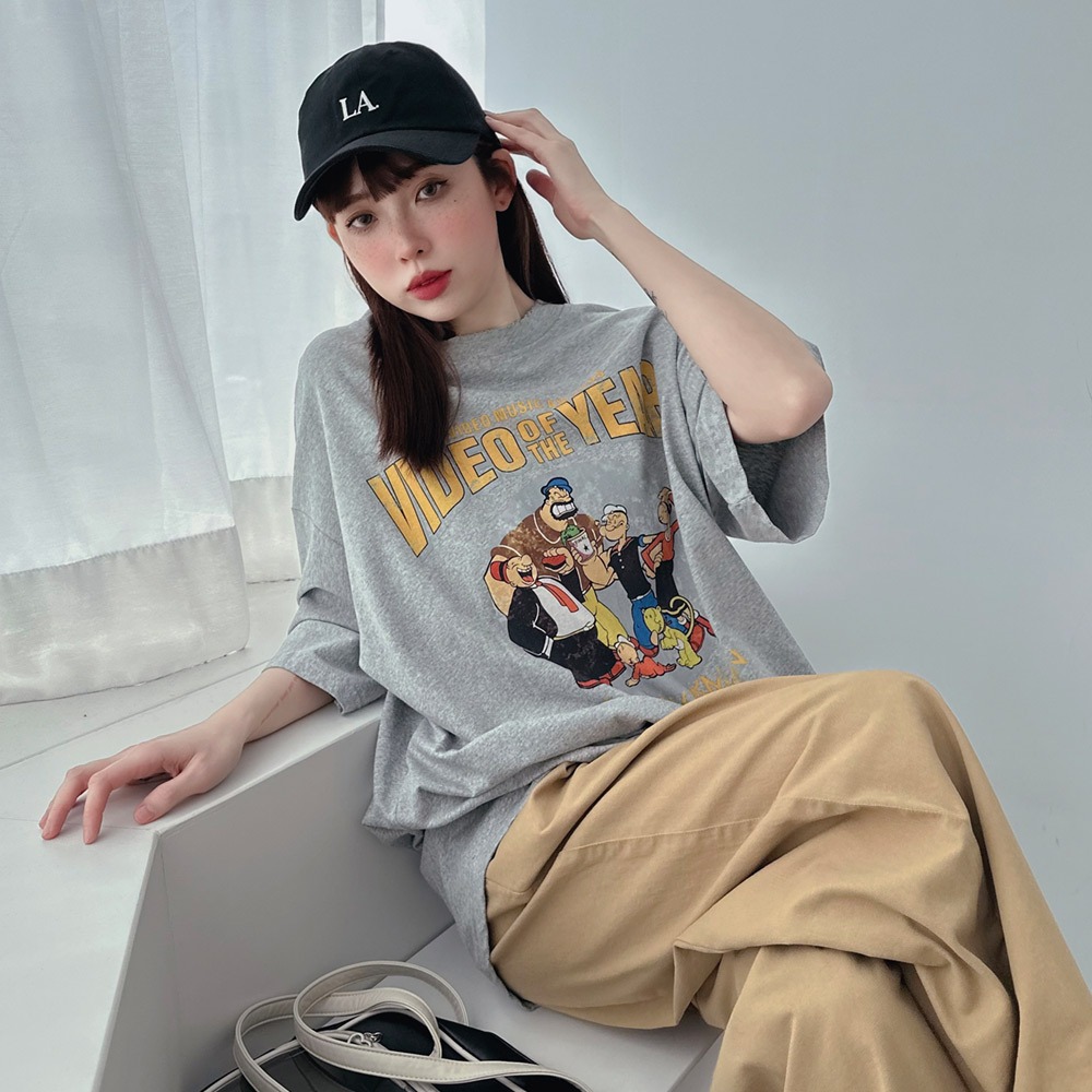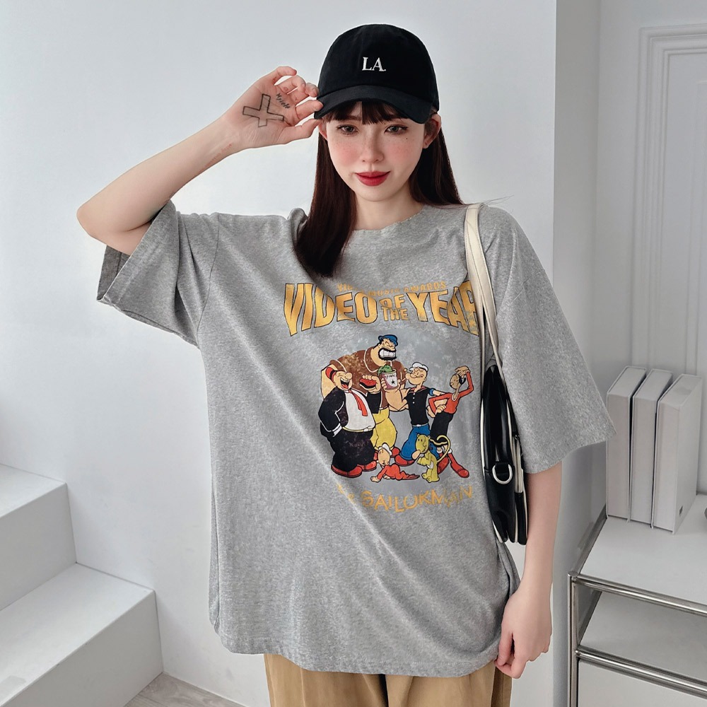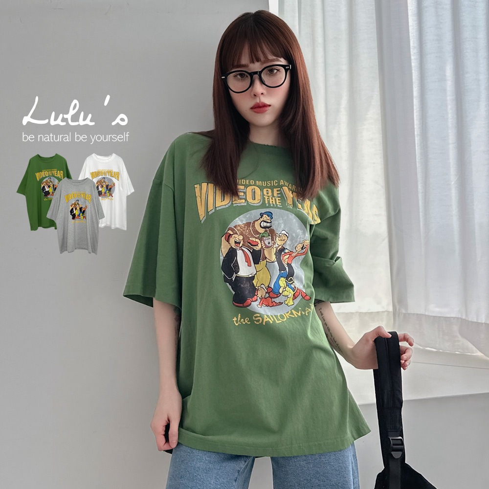 LULUS/派派復古膠印寬鬆T恤3色【A01250115】卜派 卡通 250416花灰|草綠|白T-shirtsLULUS