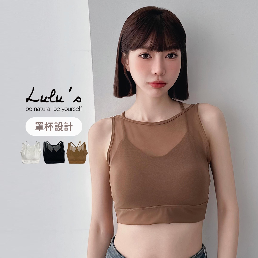 LULUS/假兩件網紗罩杯BRATOP背心3色【A01250183】不刺膚 層次穿搭 透膚 250430咖|黑|白Tanks & CamisolesLULUS