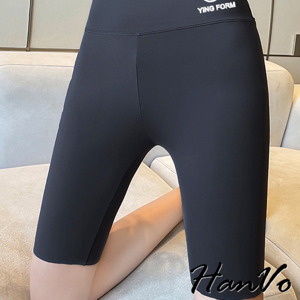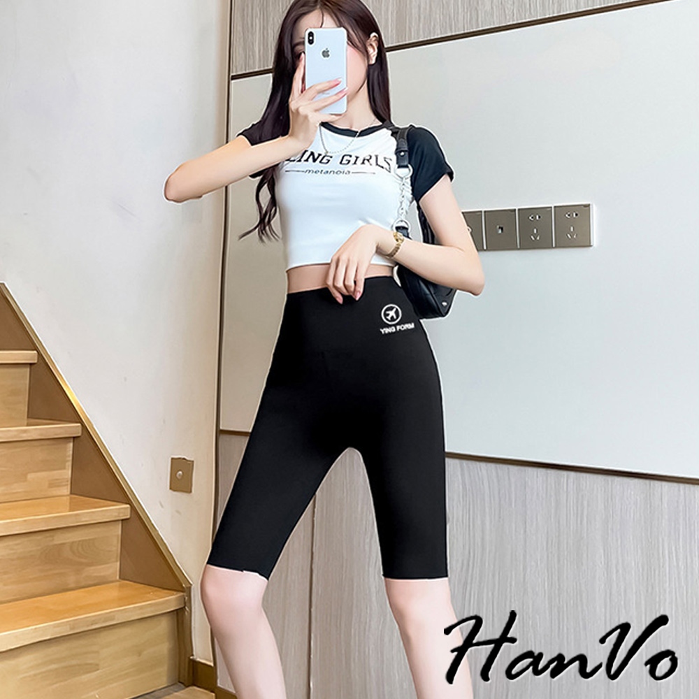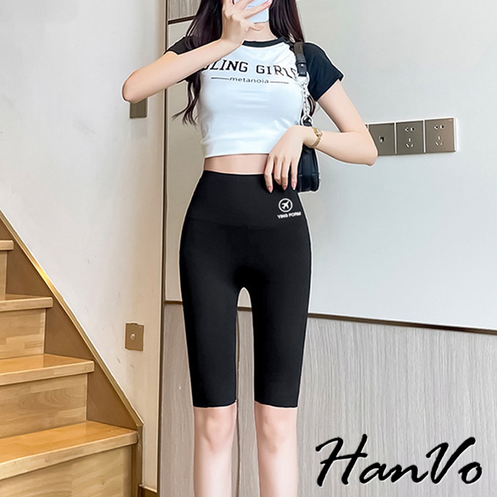 【HanVo】輕薄提臀5分鯊魚褲 緊身瑜珈褲 防走光打底褲 韓版百搭下著 女生衣著 A03-2914黑色|深灰Leggings & TreggingsHanVo Wear Collection
