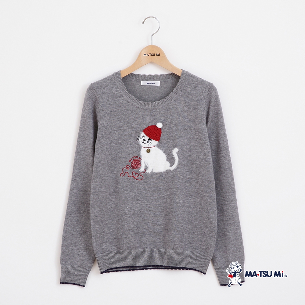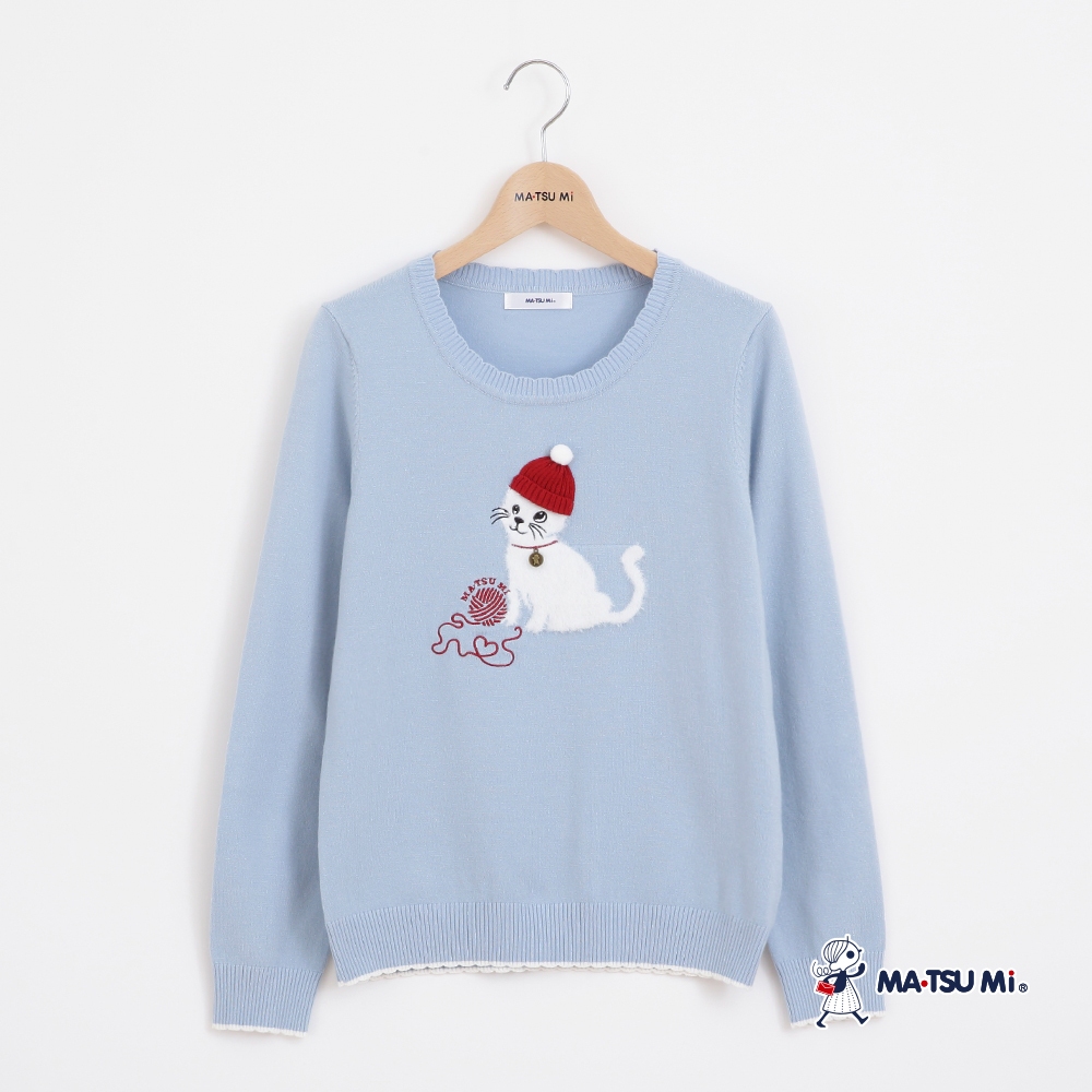 MA‧TSU Mi 毛鬚感貓咪手鉤毛帽裝飾針織上衣(水藍.深灰)水藍,S|水藍,M|水藍,L|水藍,XL|深灰,S|深灰,M|深灰,L|深灰,XLMA•TSU Mi瑪之蜜官方旗艦店
