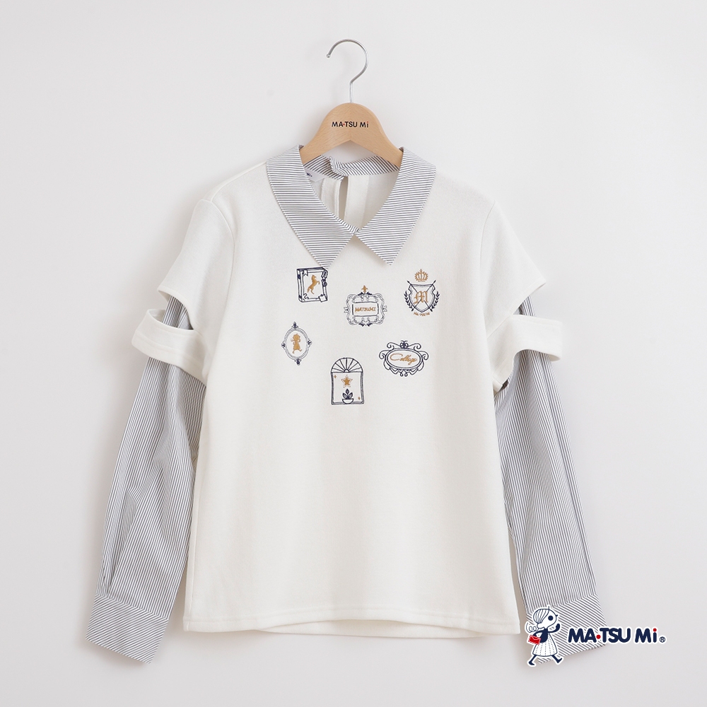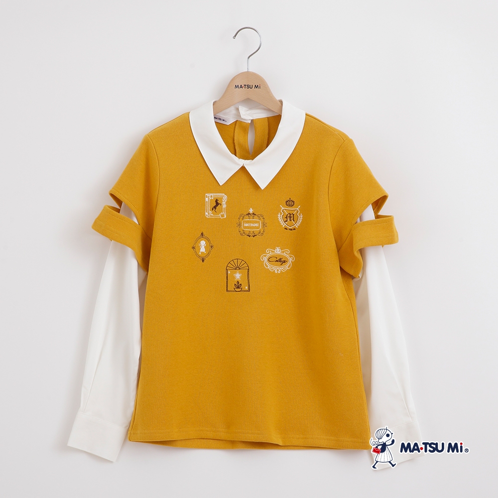 MA‧TSU Mi 清新線條圖案挖洞條紋假兩件上衣(白.黃)黃,L|白,M|白,L|黃,MT-shirtsMA•TSU Mi瑪之蜜官方旗艦店