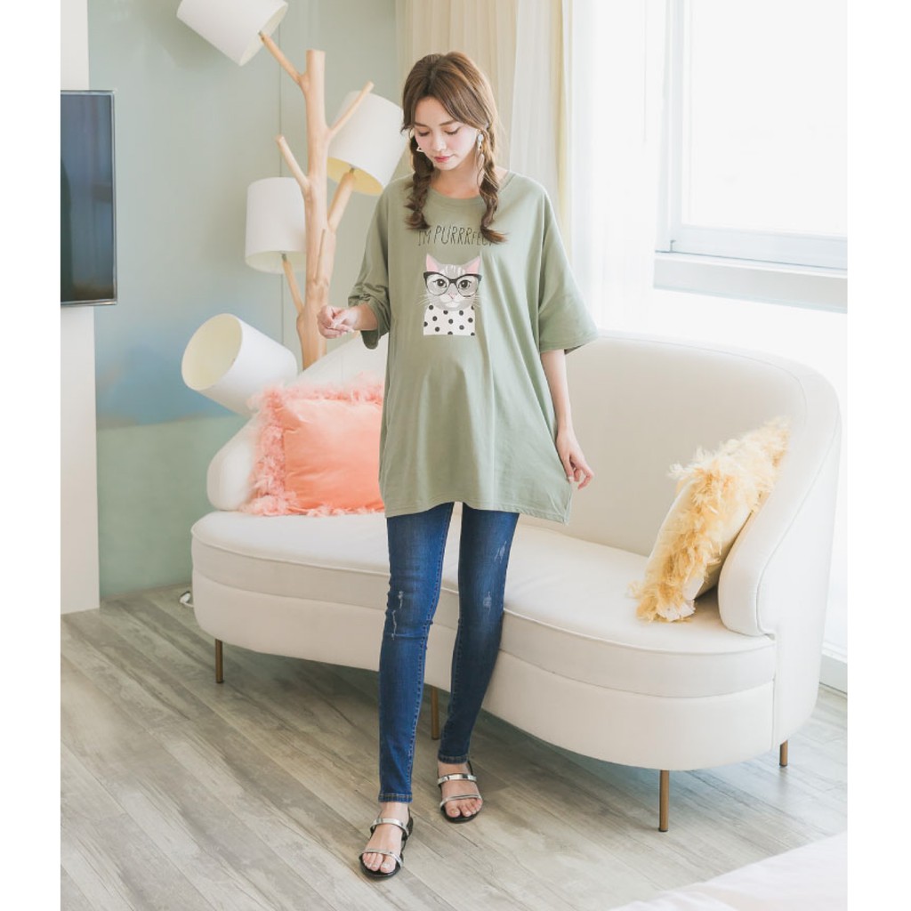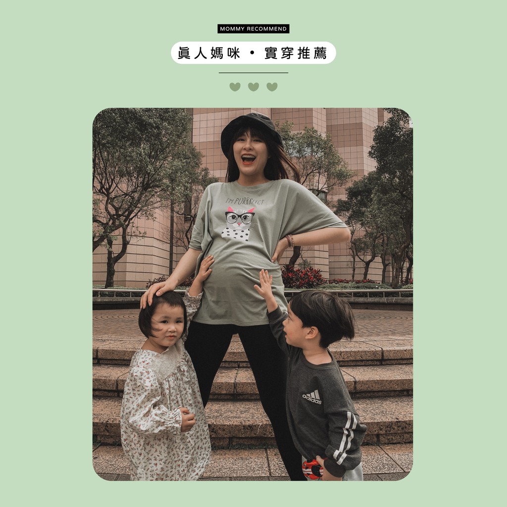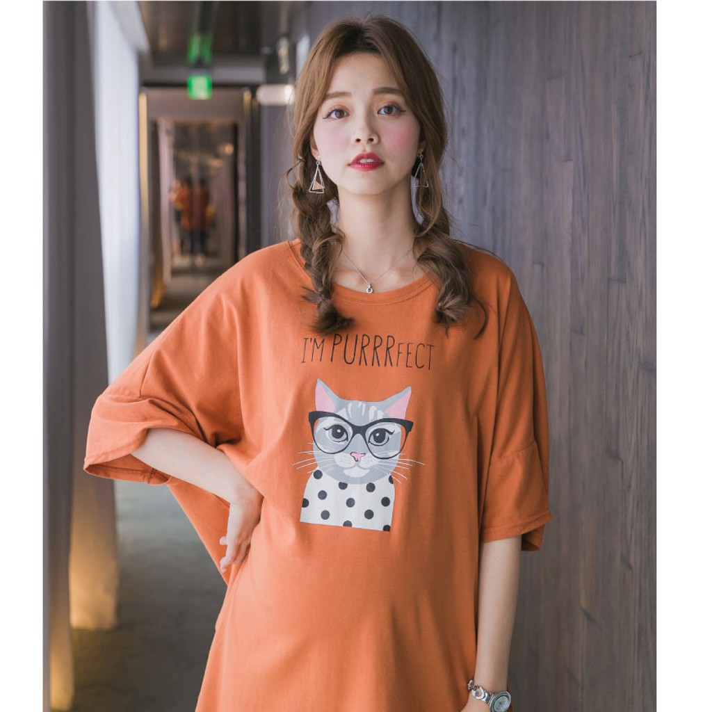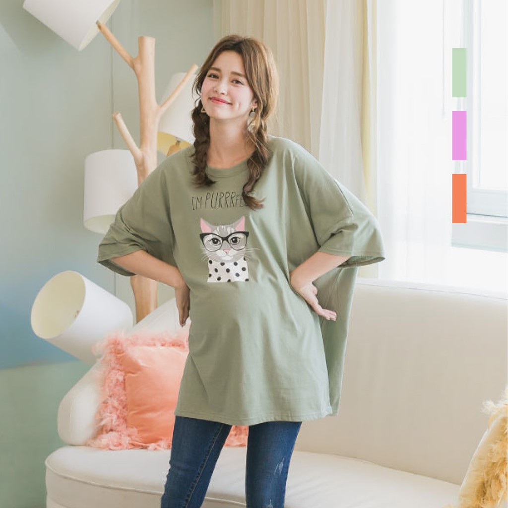 Mamamia孕婦裝 眼鏡貓五分袖寬版孕婦裝 正韓製 短袖 孕婦上衣 長版上衣 [C3087]綠|粉|橘Maternity DressesMamamia孕婦裝
