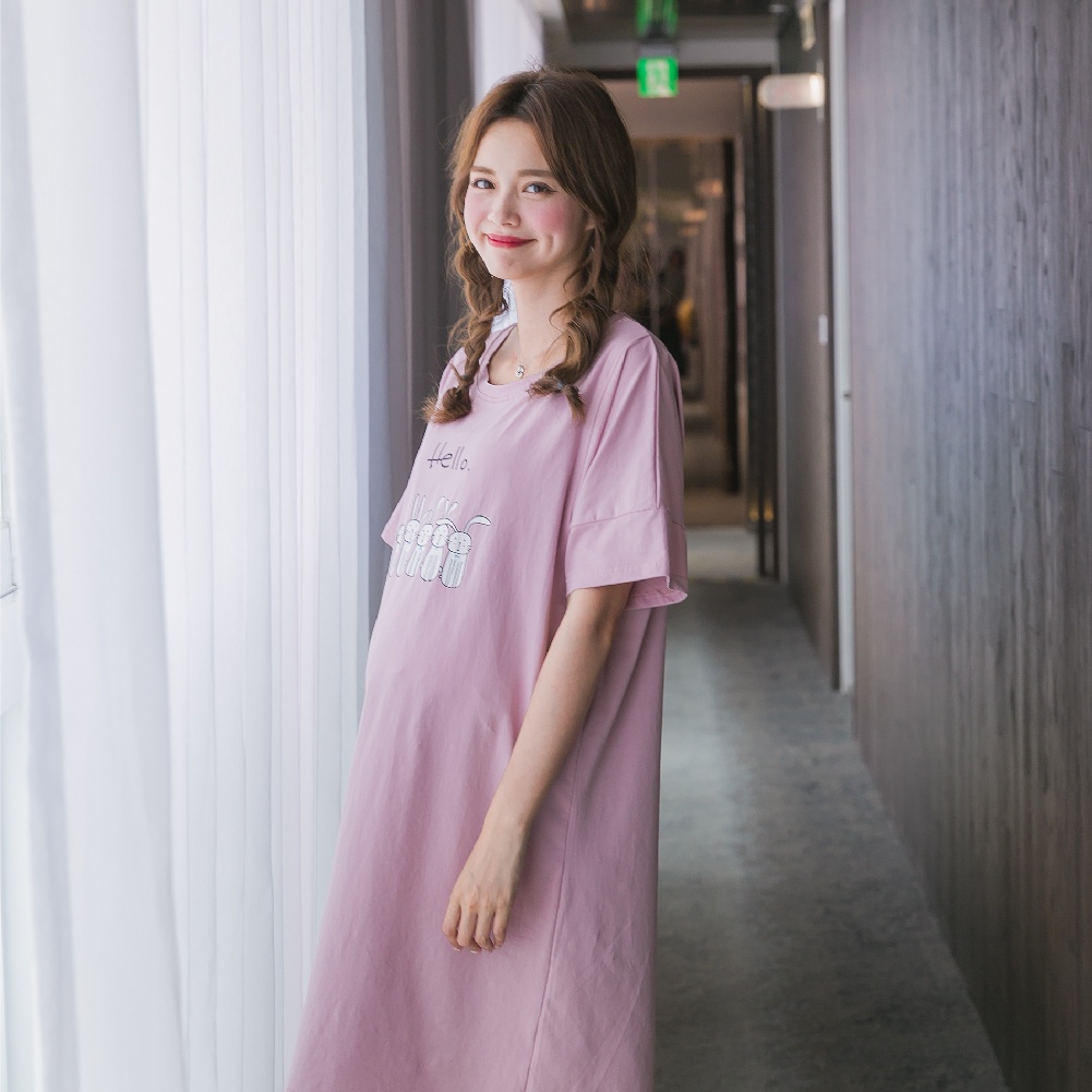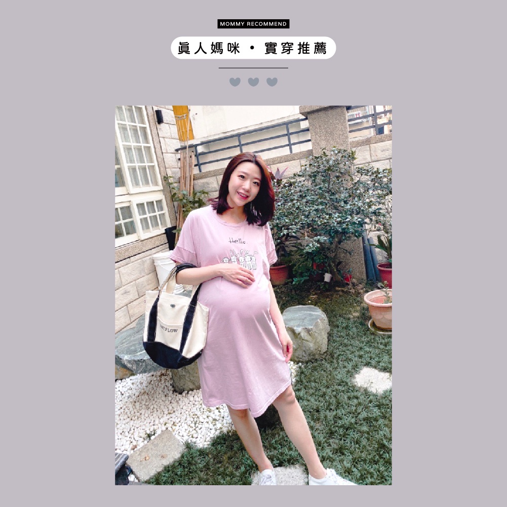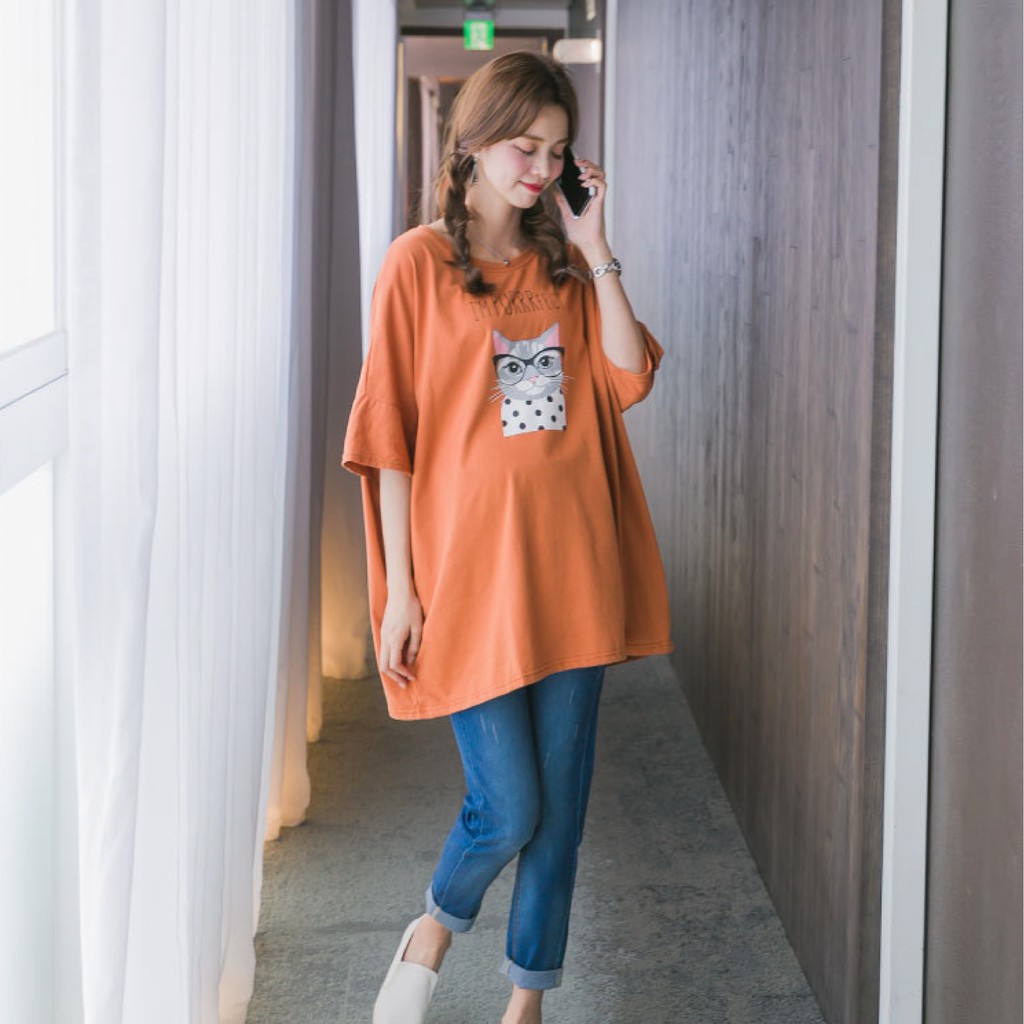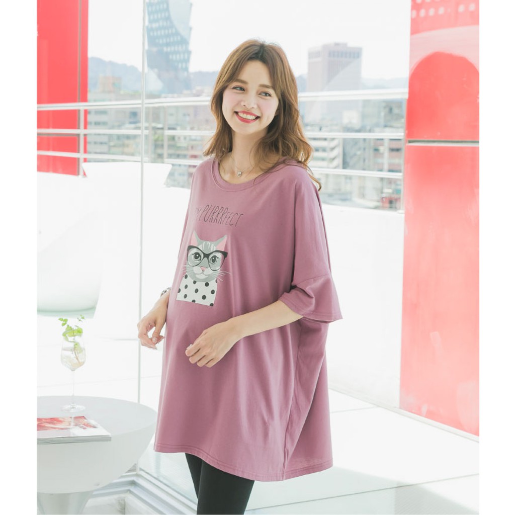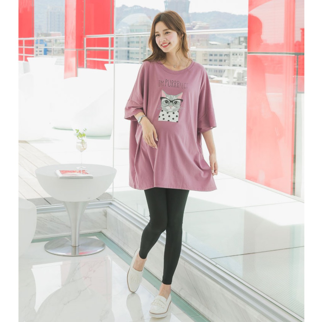 Mamamia孕婦裝 眼鏡貓五分袖寬版孕婦裝 正韓製 短袖 孕婦上衣 長版上衣 [C3087]綠|粉|橘Maternity DressesMamamia孕婦裝