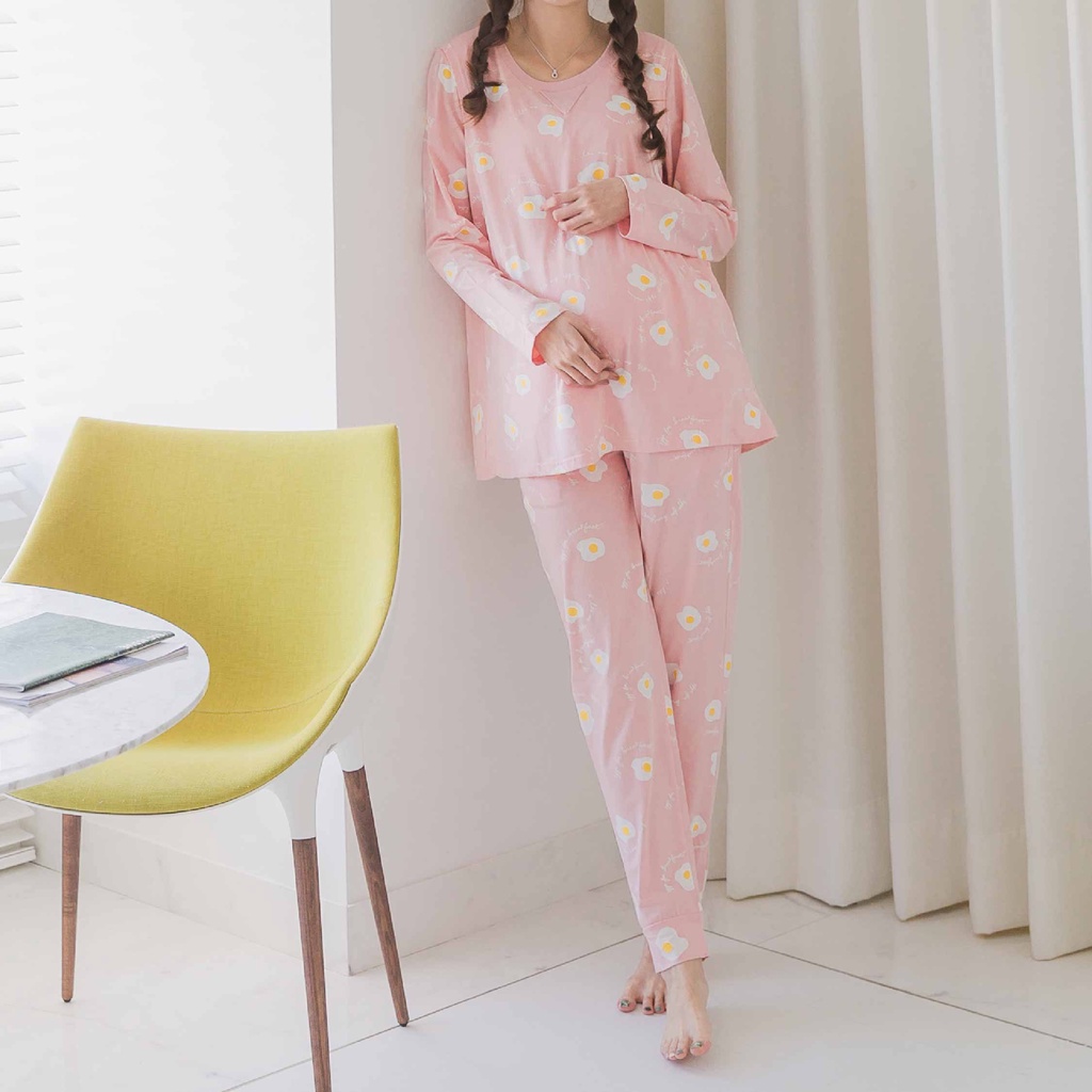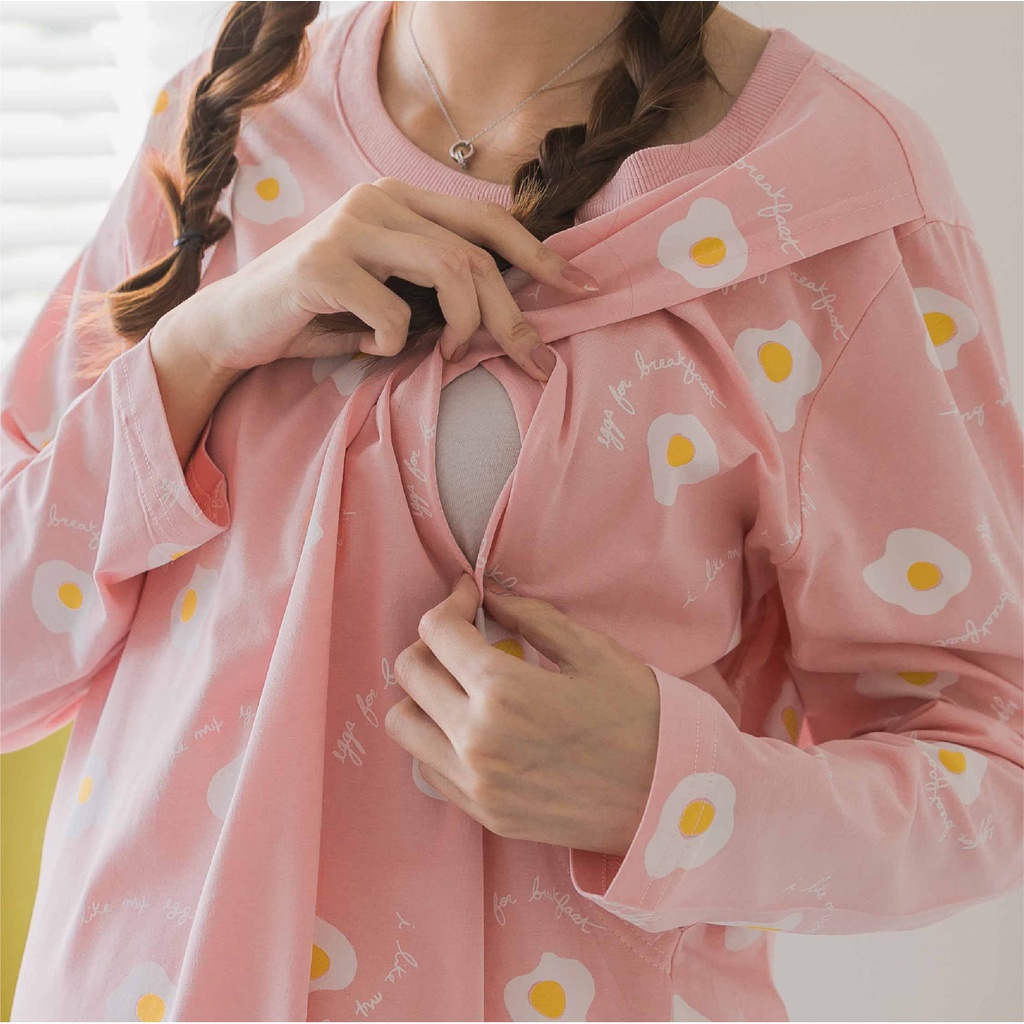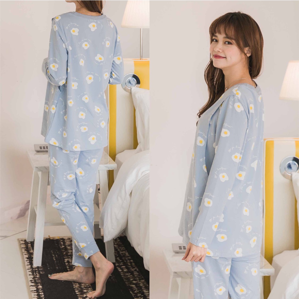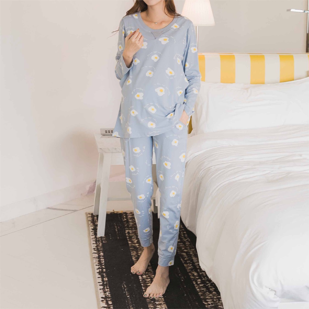 Mamamia孕婦裝 舒適荷包蛋V領哺乳睡衣 哺乳套裝 哺乳衣 長袖 居家服 月子服 孕婦裝 M~XL [A1619]藍,XL|粉,M|粉,L|粉,XL|藍,M|藍,LBreastfeeding WearMamamia孕婦裝