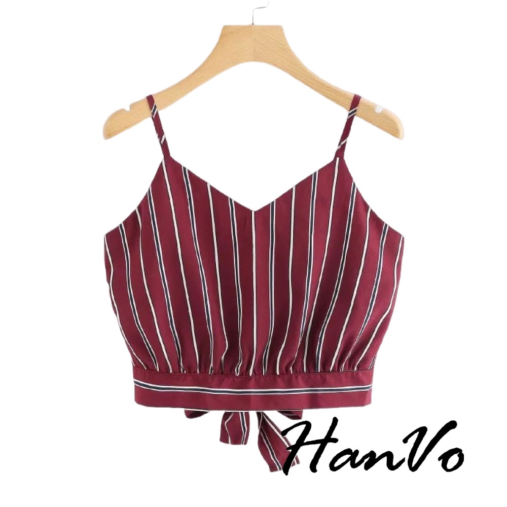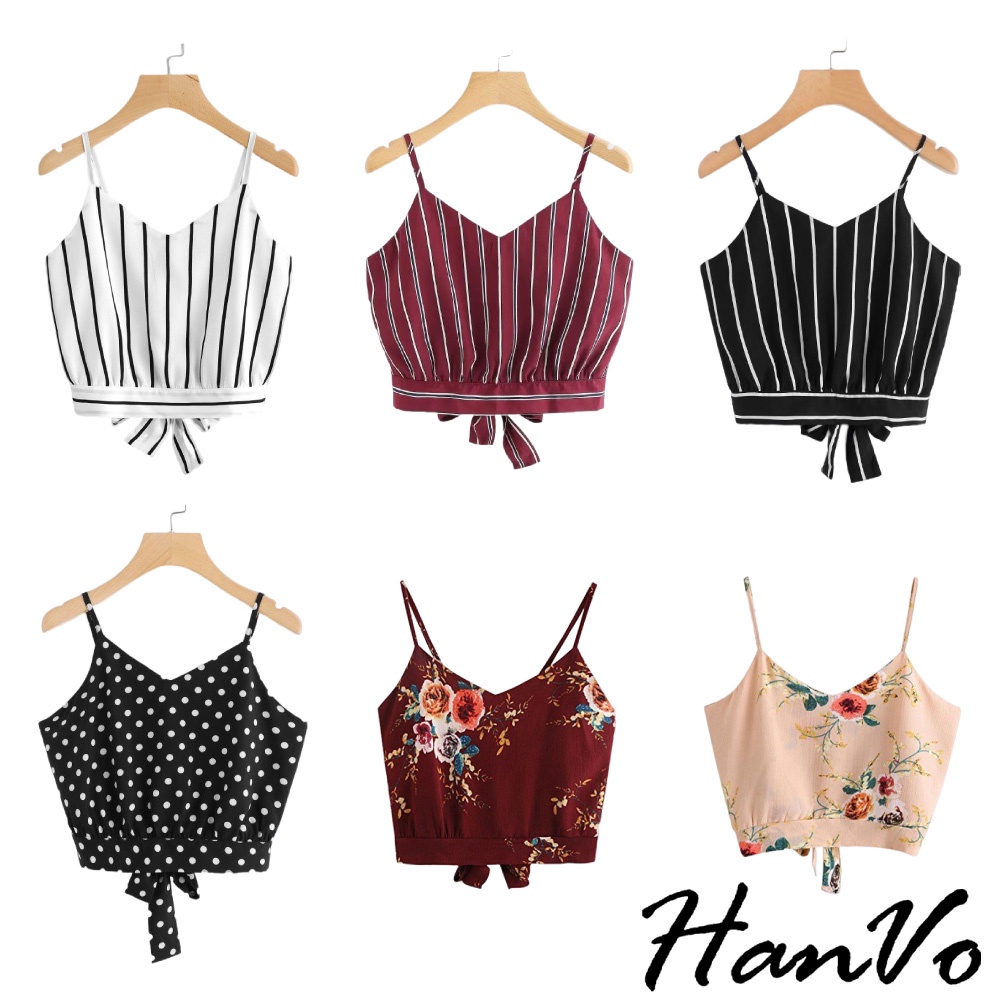 【HanVo】短版印花背心 現貨出清 熱銷新品 吊帶背心細肩帶美背性感露背蝴蝶結 韓系女裝 女生衣著 A01-1047酒紅碎花|復古點點|白底黑條|黑底白條|紅底條紋Tanks & CamisolesHanVo Wear Collection