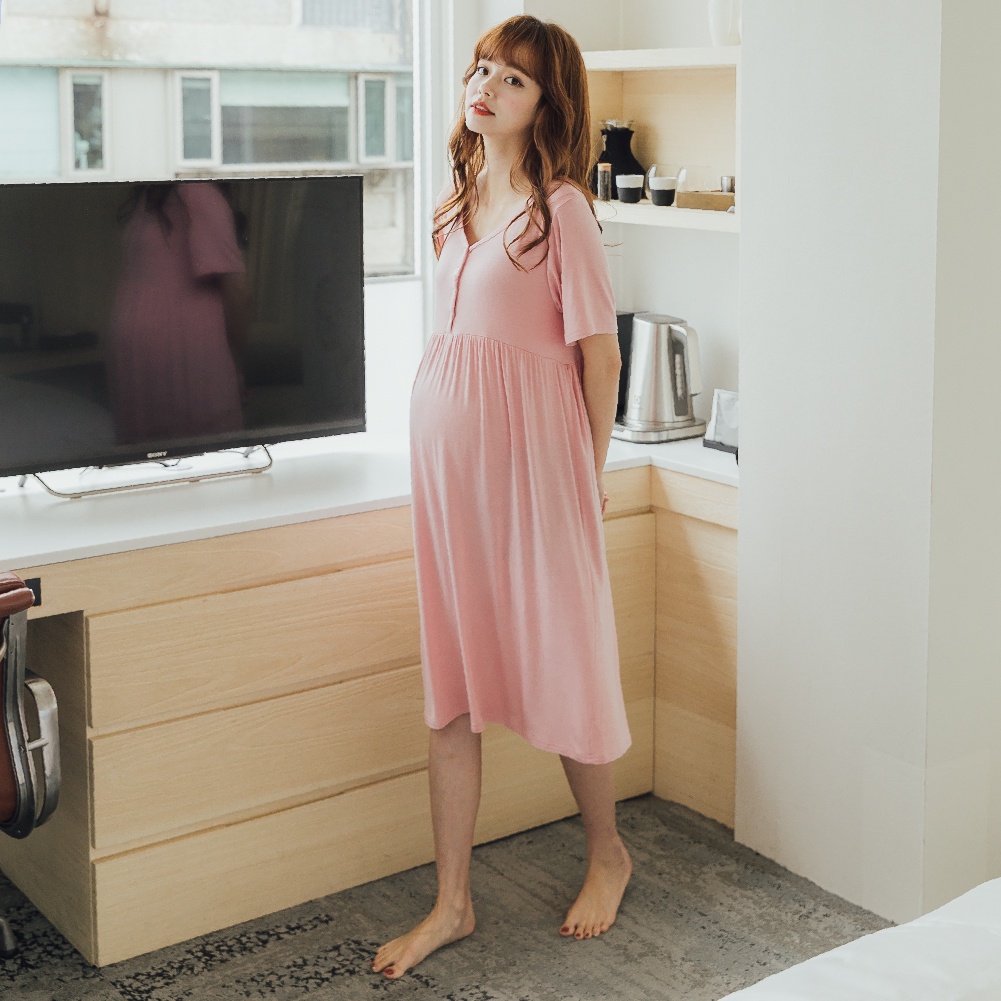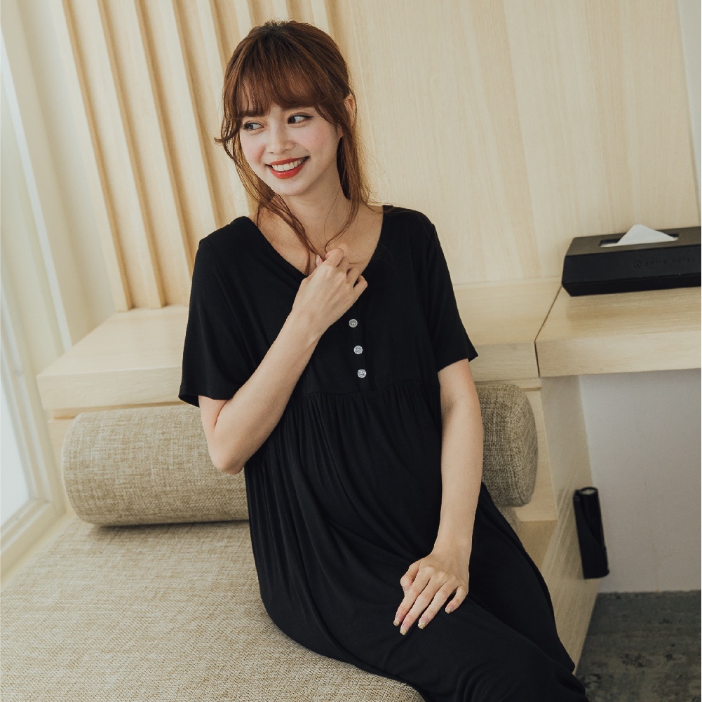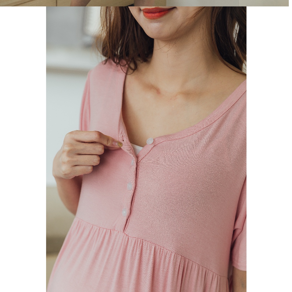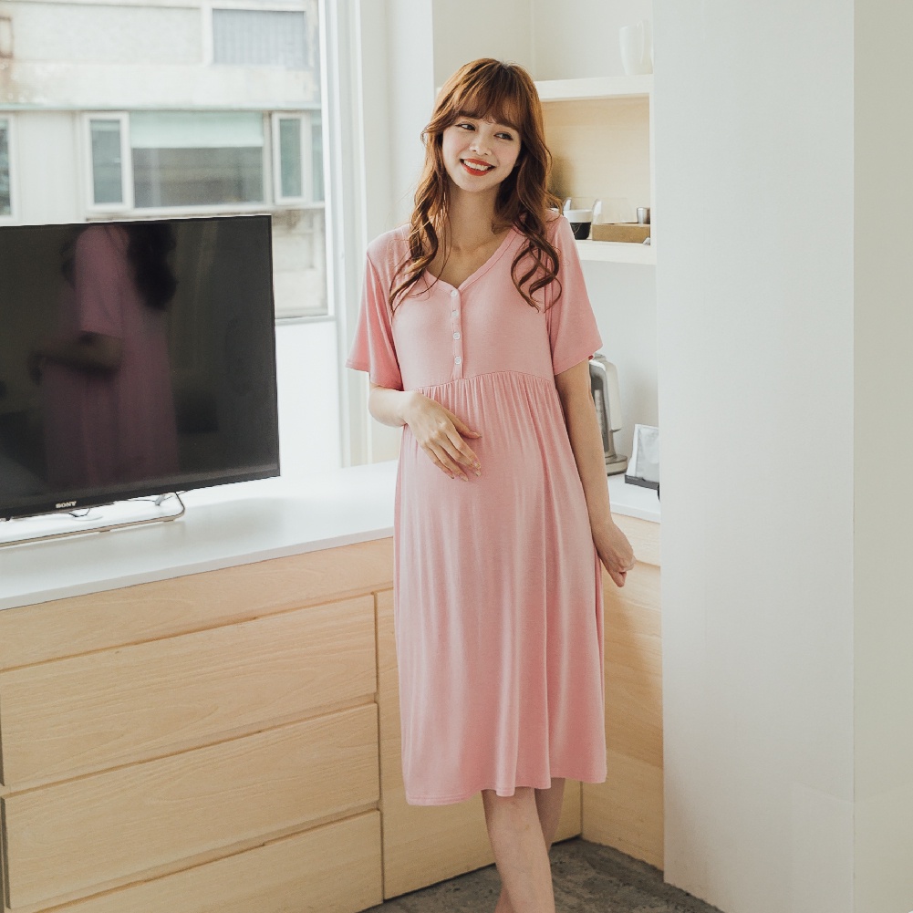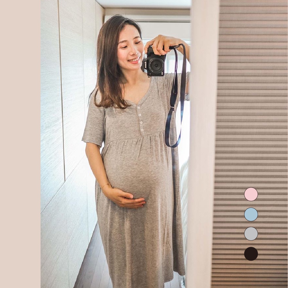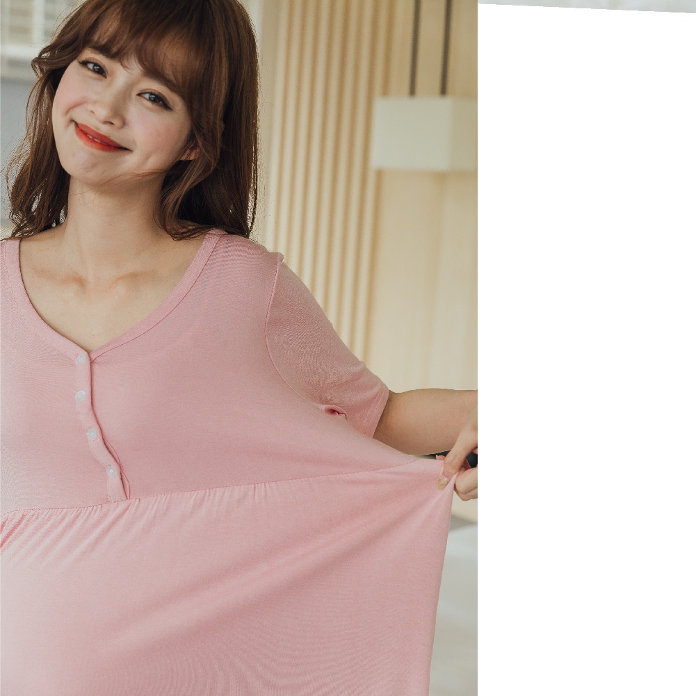 Mamamia孕婦裝 簡約柔感開釦哺乳孕婦裝 正韓製 哺乳洋裝 哺乳衣 月子服 孕婦裝 喂奶衣 短袖 [A15421]粉|藍|灰|黑Breastfeeding WearMamamia孕婦裝