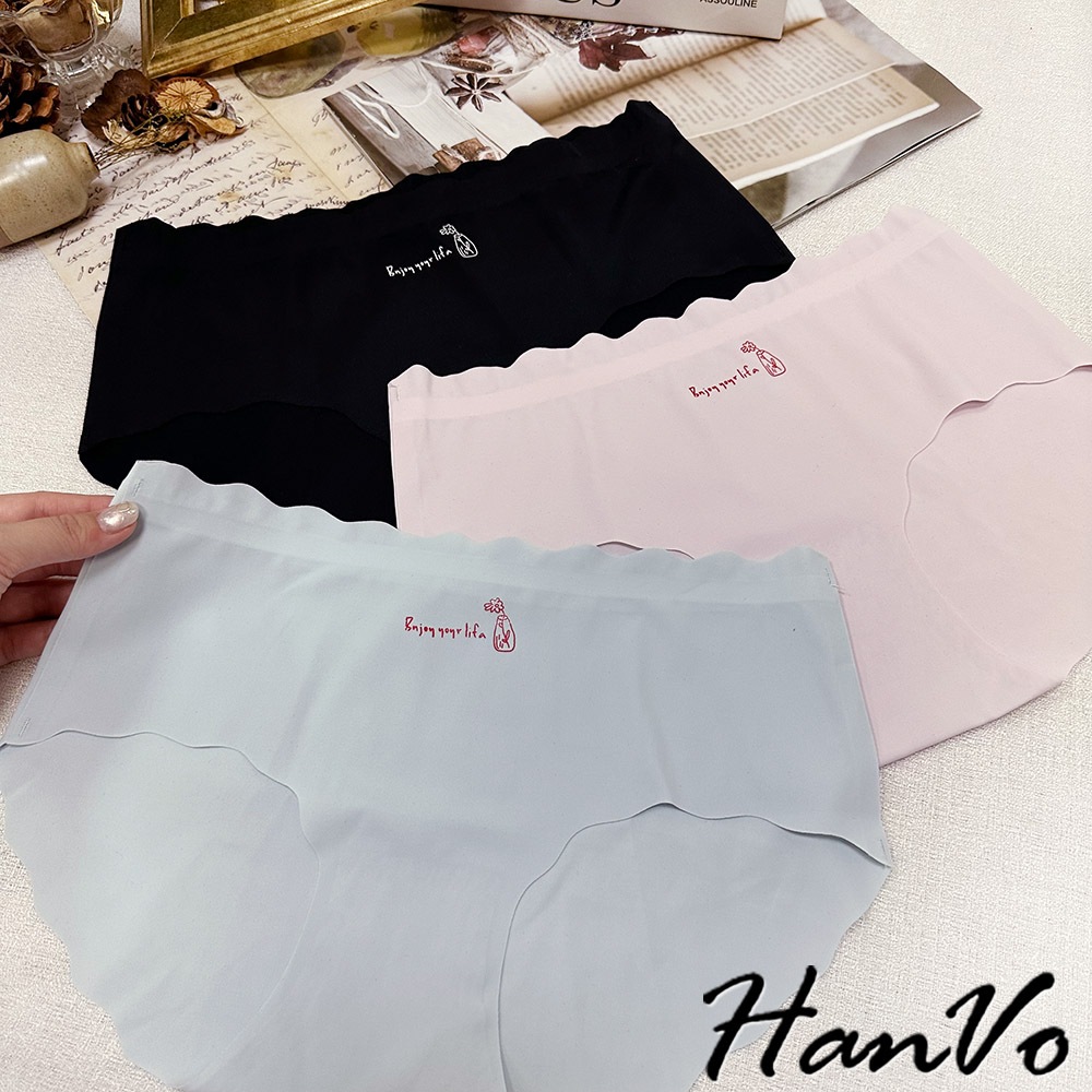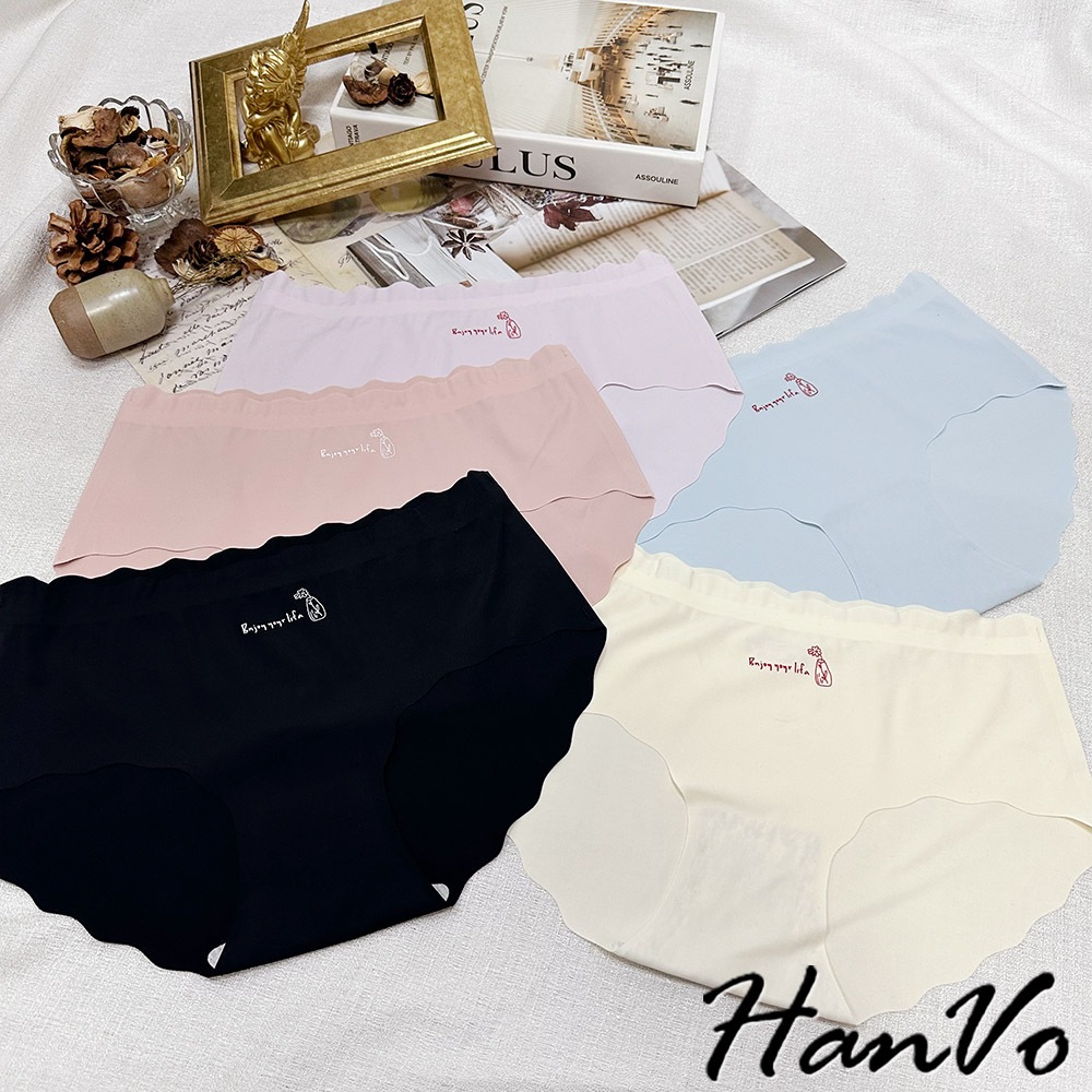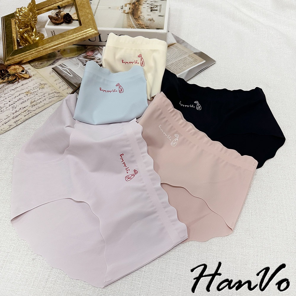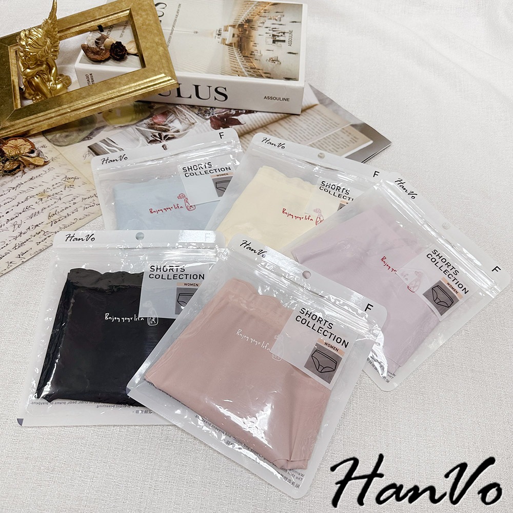 【HanVo】字母花瓶冰絲無痕內褲 彈力包覆裸感中腰三角褲 獨立包裝 流行少女內褲 內著 A11-5215丁香紫|靜謐黑|玫瑰粉|亮膚杏|冰心藍PantiesHanVo Wear Collection