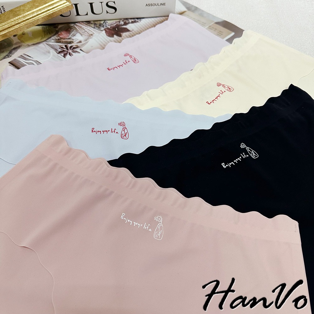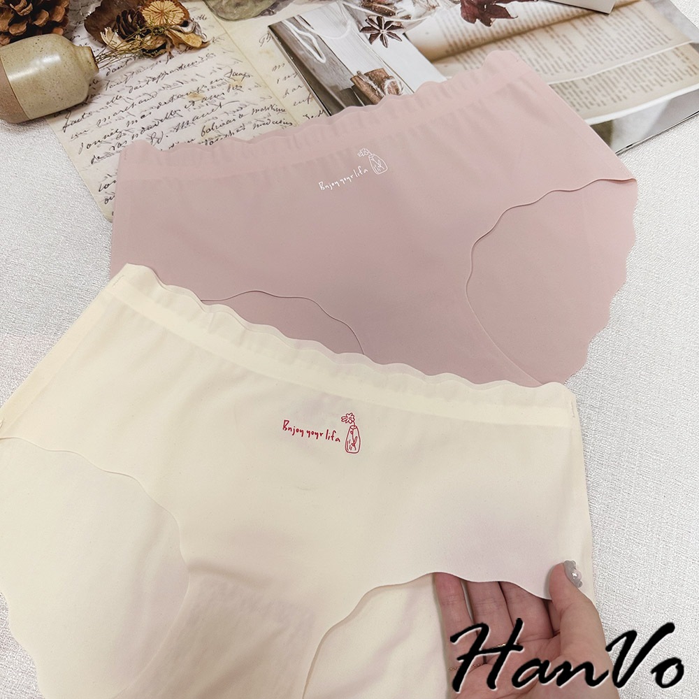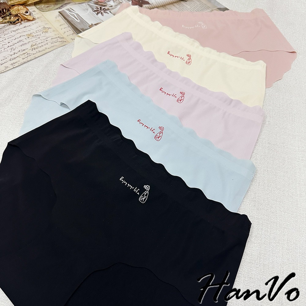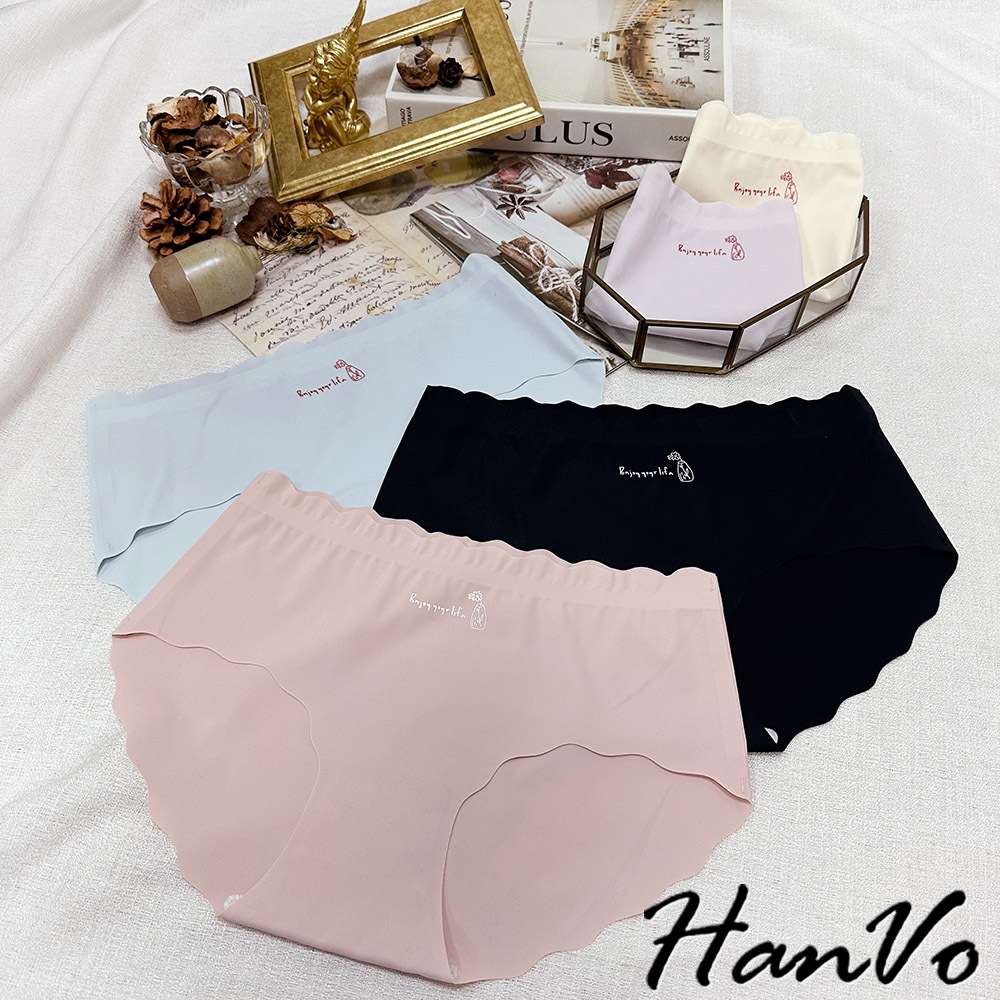 【HanVo】字母花瓶冰絲無痕內褲 彈力包覆裸感中腰三角褲 獨立包裝 流行少女內褲 內著 A11-5215丁香紫|靜謐黑|玫瑰粉|亮膚杏|冰心藍PantiesHanVo Wear Collection