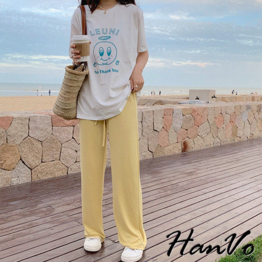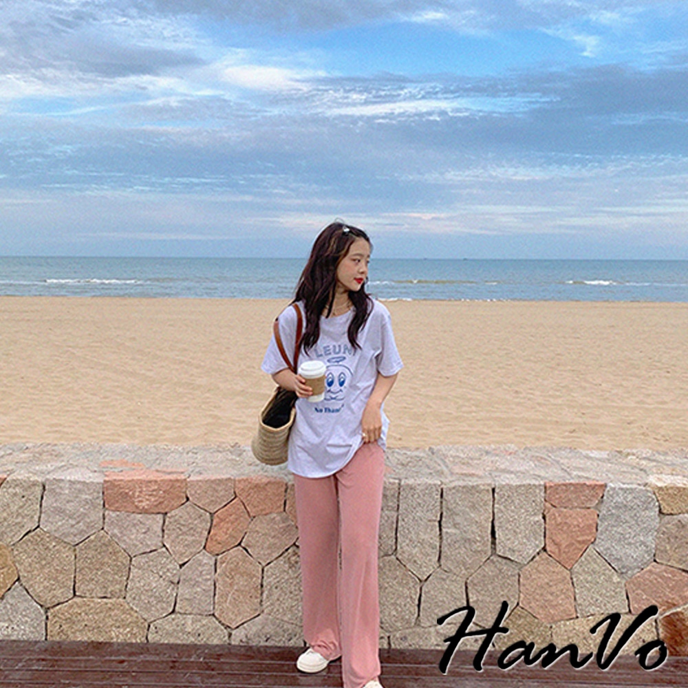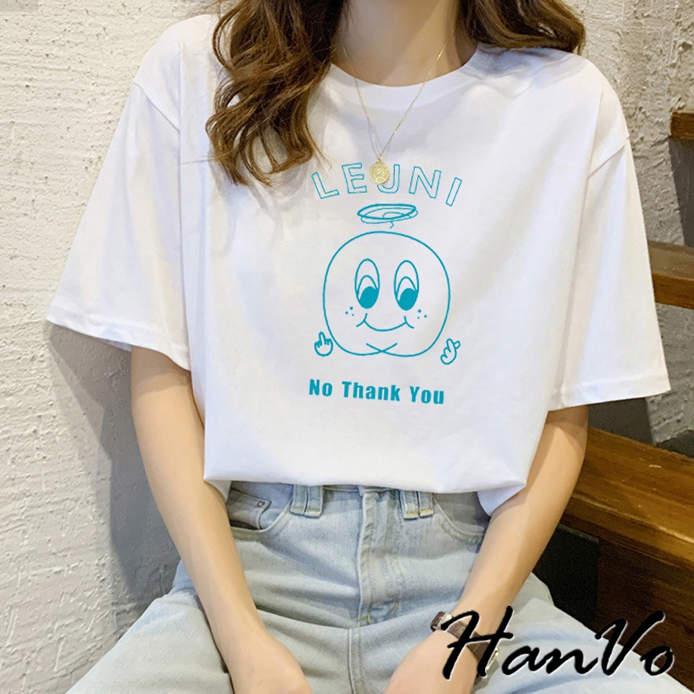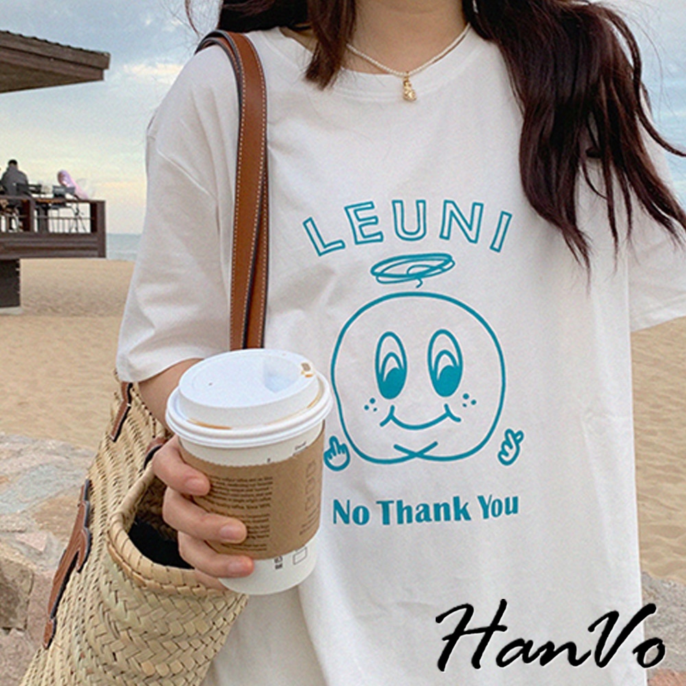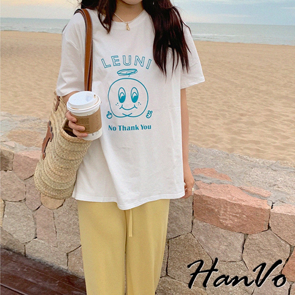 【HanVo】LEUNI印花純棉舒適T恤 親膚排汗透氣簡約短袖 韓系女裝 女生衣著 A01-0245白色T-shirtsHanVo Wear Collection