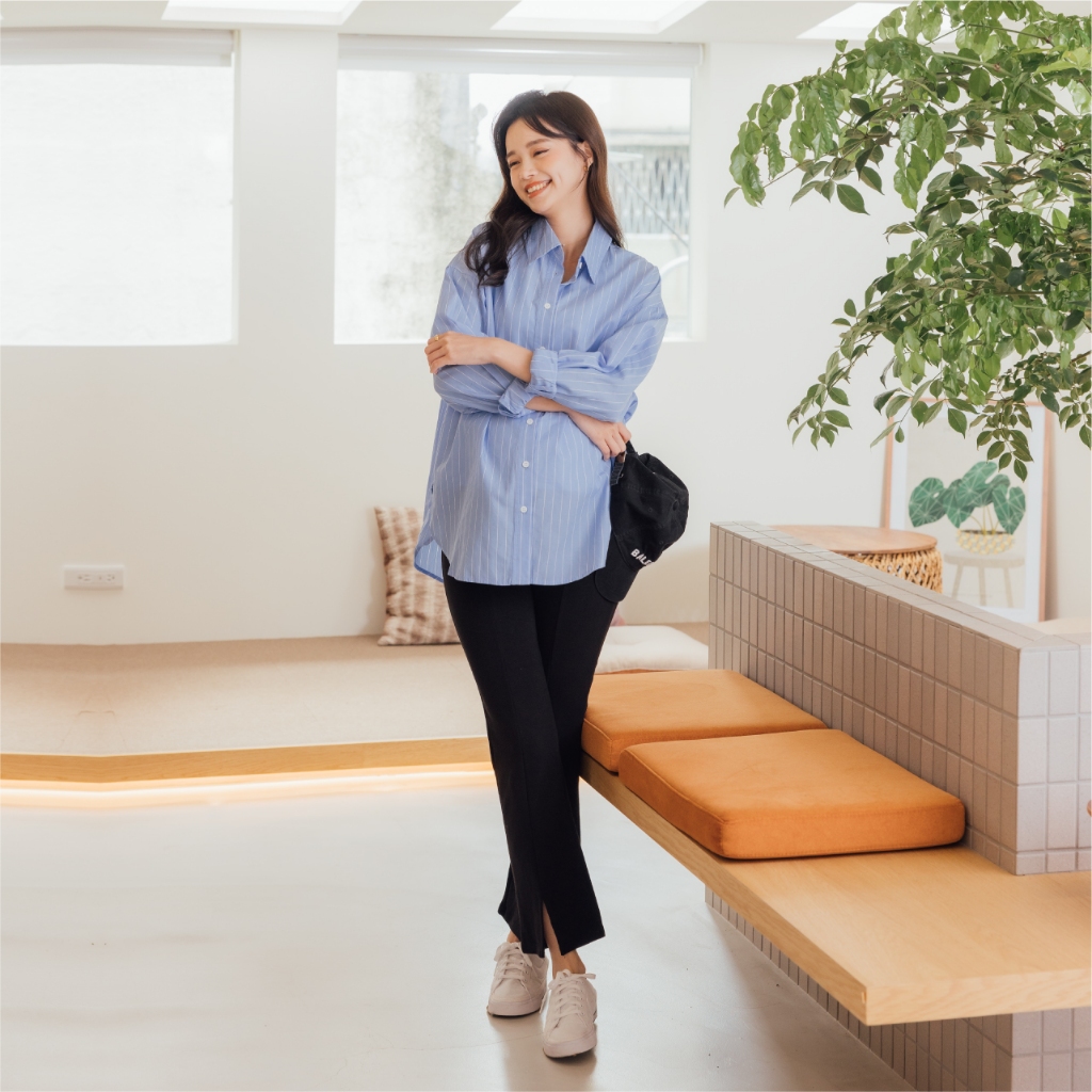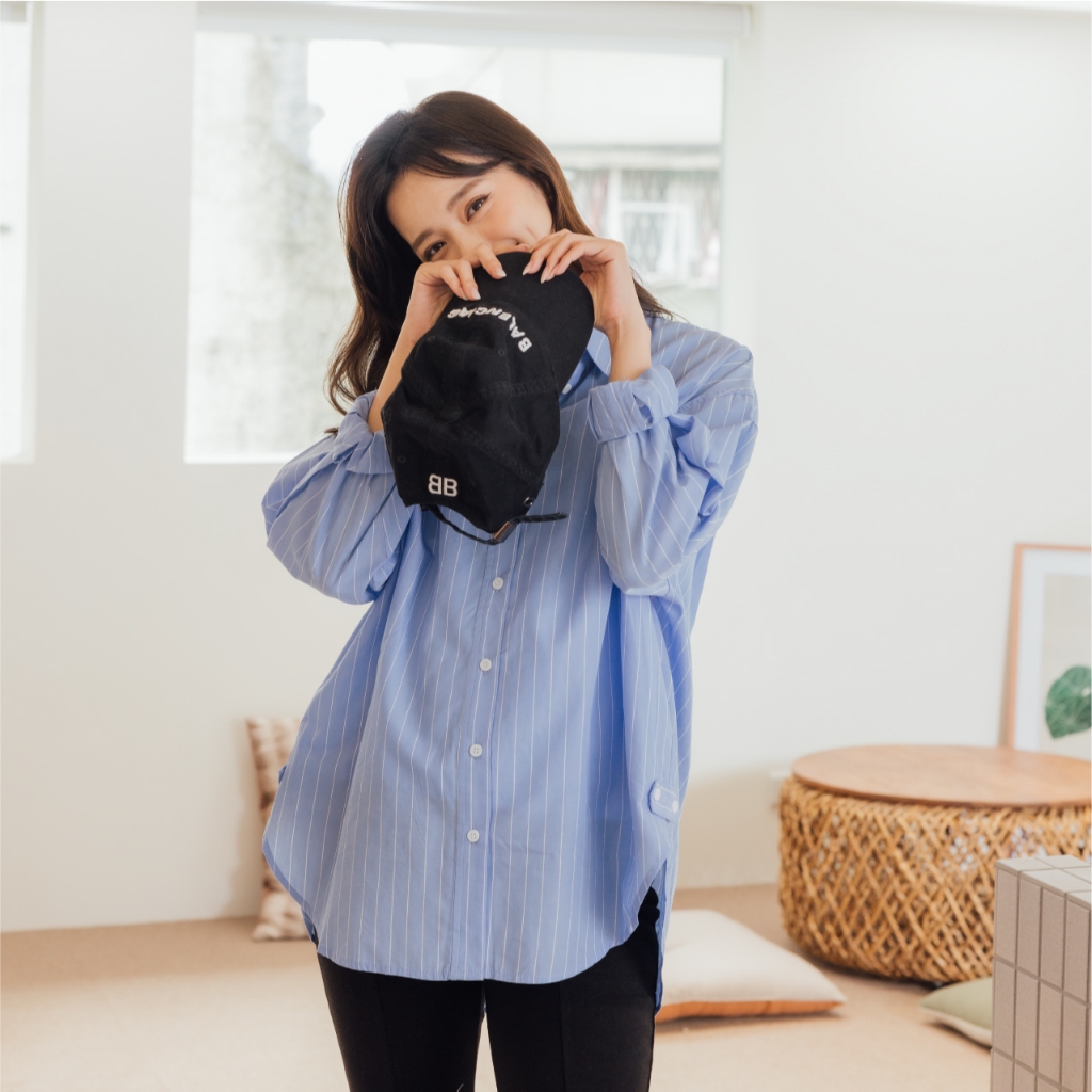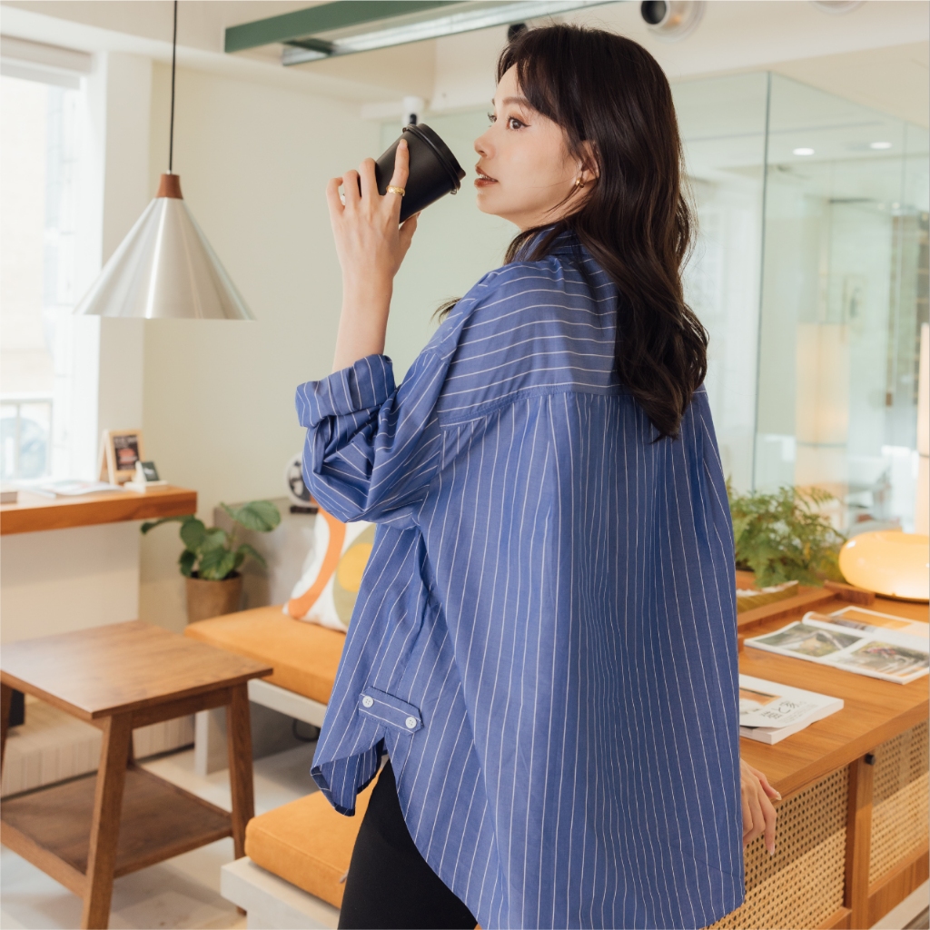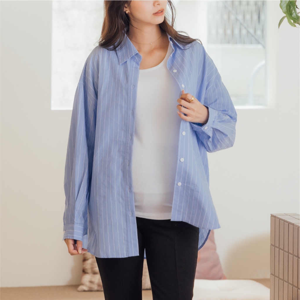Mamamia孕婦裝 兩穿式經典知性條紋哺乳襯 孕婦裝 孕婦上衣 哺乳上衣 長版上衣 長袖 襯衫 [A1942]淺藍|深藍Breastfeeding WearMamamia孕婦裝