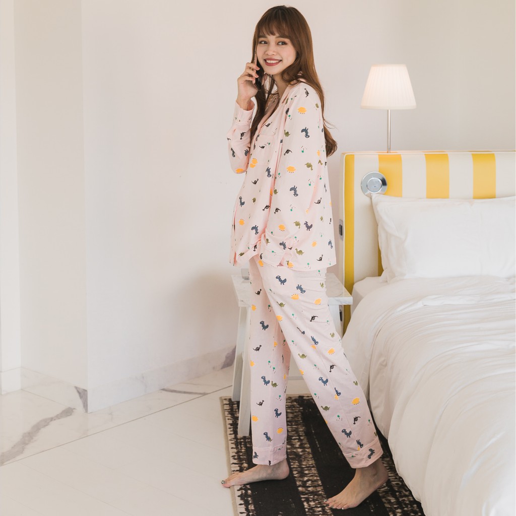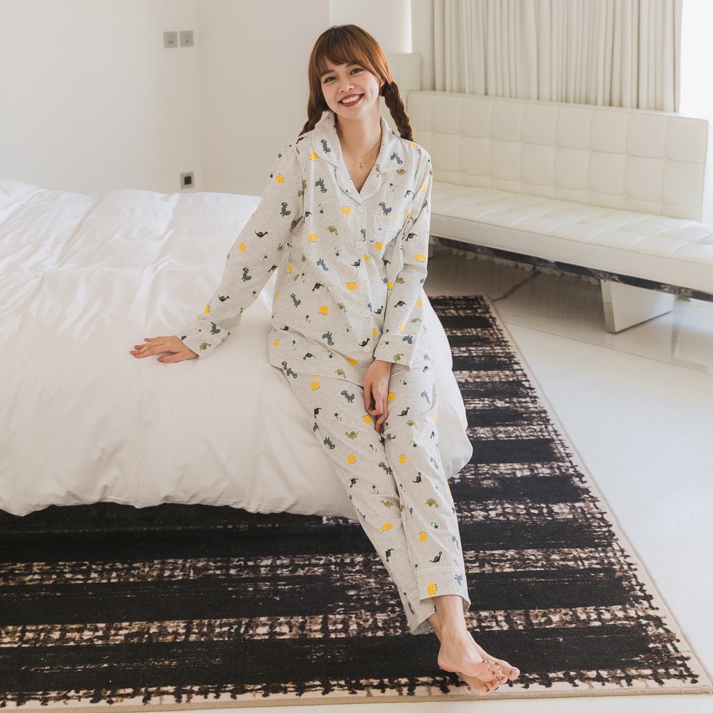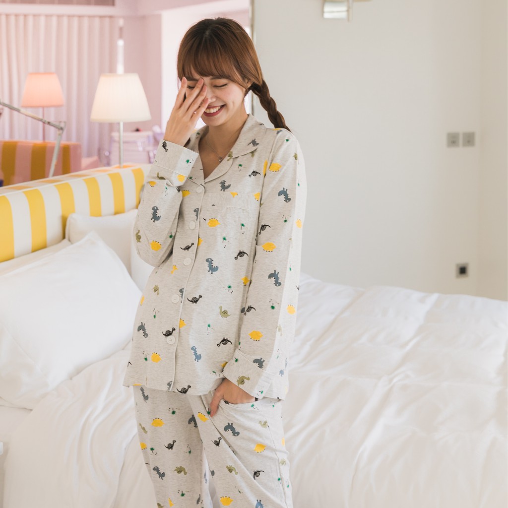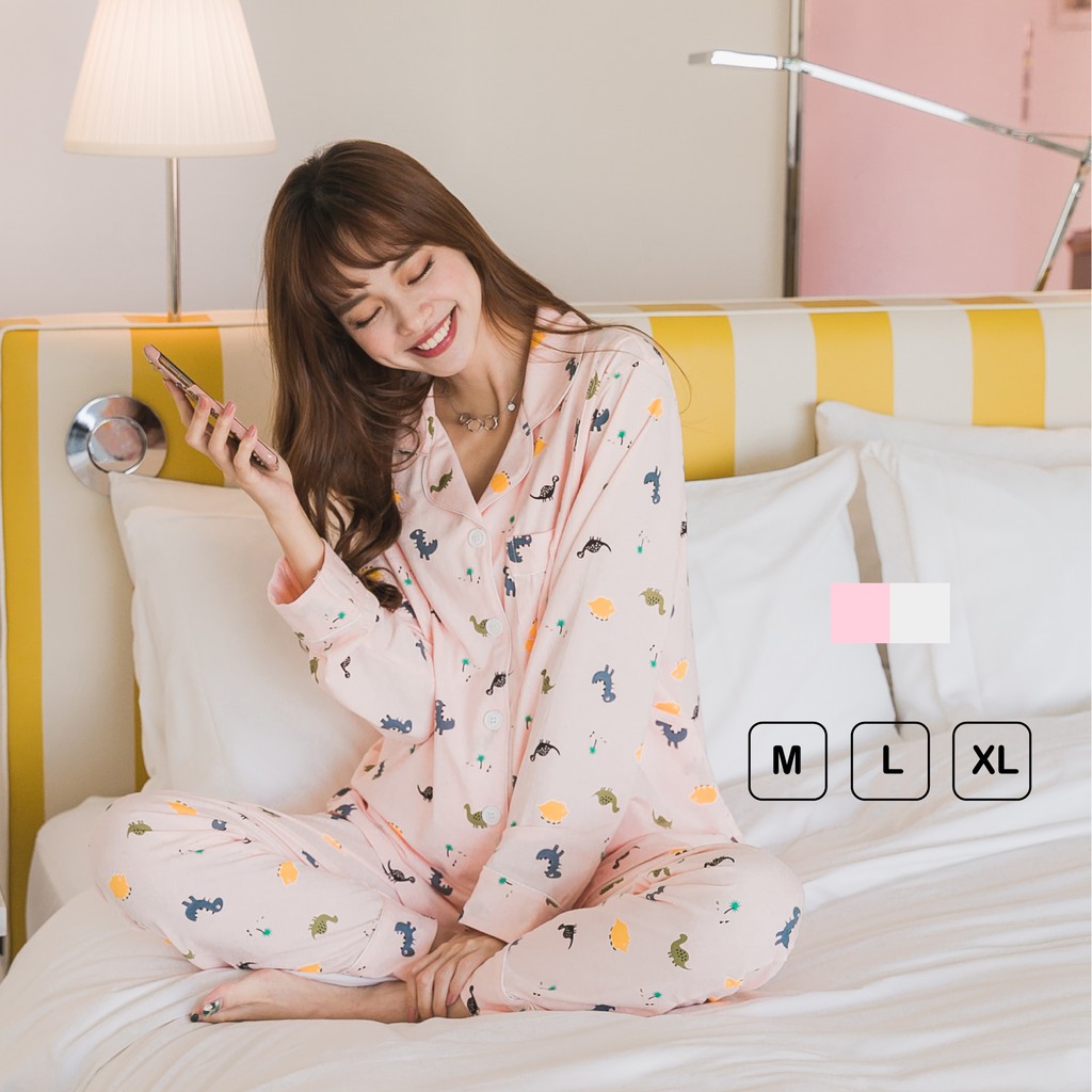 Mamamia孕婦裝 滿版恐龍哺乳睡衣 M~XL 哺乳套裝 喂奶衣 長袖 哺乳衣 月子服 孕婦裝 [A1617]灰,L|灰,XL|粉,M|粉,L|粉,XL|灰,M|奶茶,L|奶茶,M|奶茶,XLBreastfeeding WearMamamia孕婦裝
