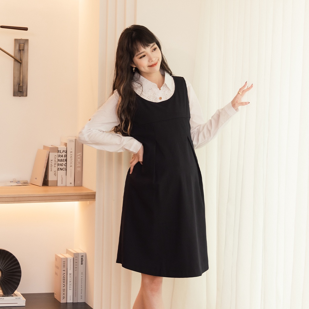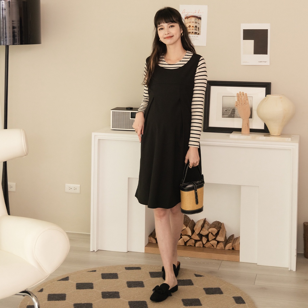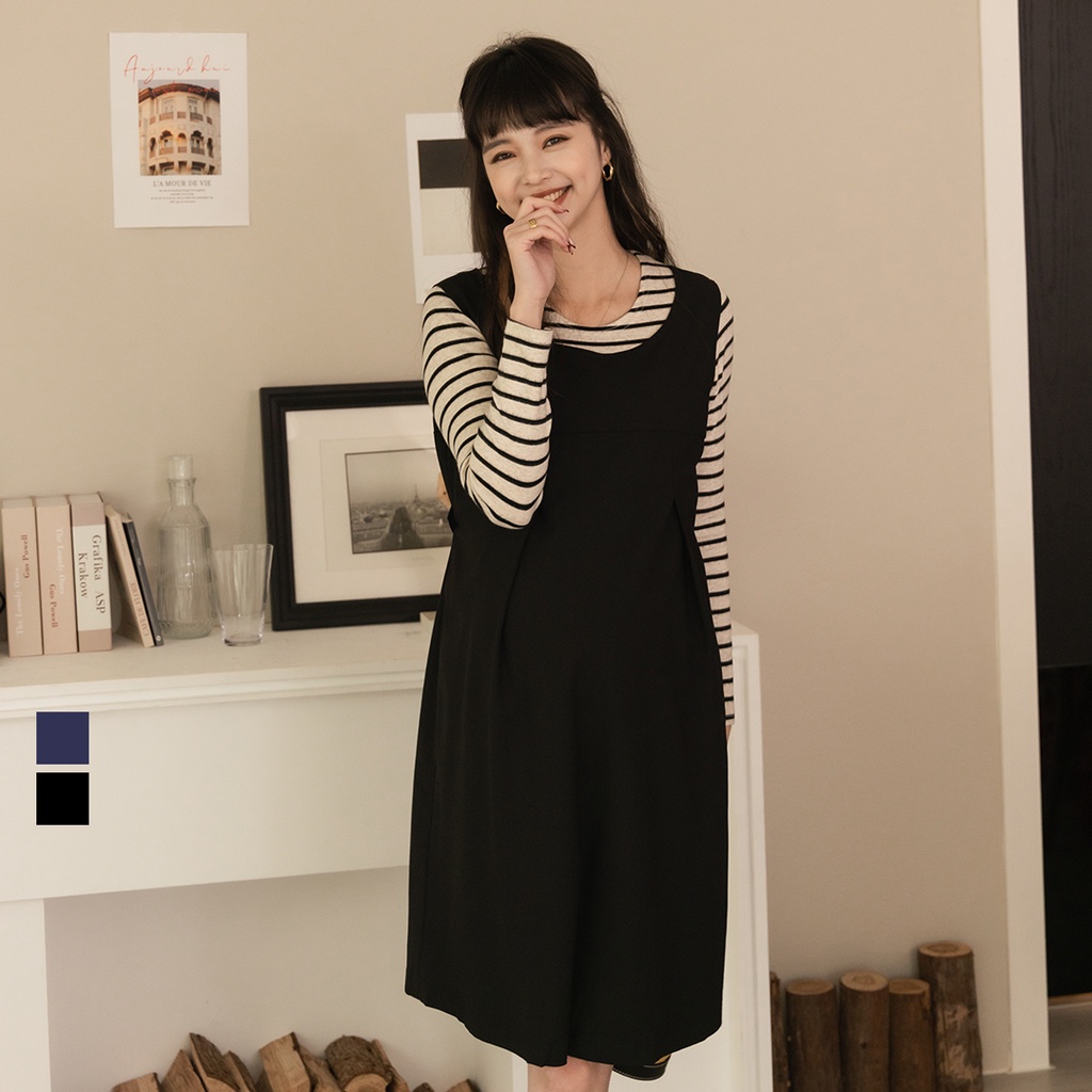 Mamamia孕婦裝 輕正裝圓領後綁帶孕婦洋裝 M~XL 正韓製 吊帶裙 孕婦裝 連身裙 孕婦洋裝 [A1871]黑,M|黑,L|黑,XL|深藍,M|深藍,L|深藍,XLMaternity DressesMamamia孕婦裝