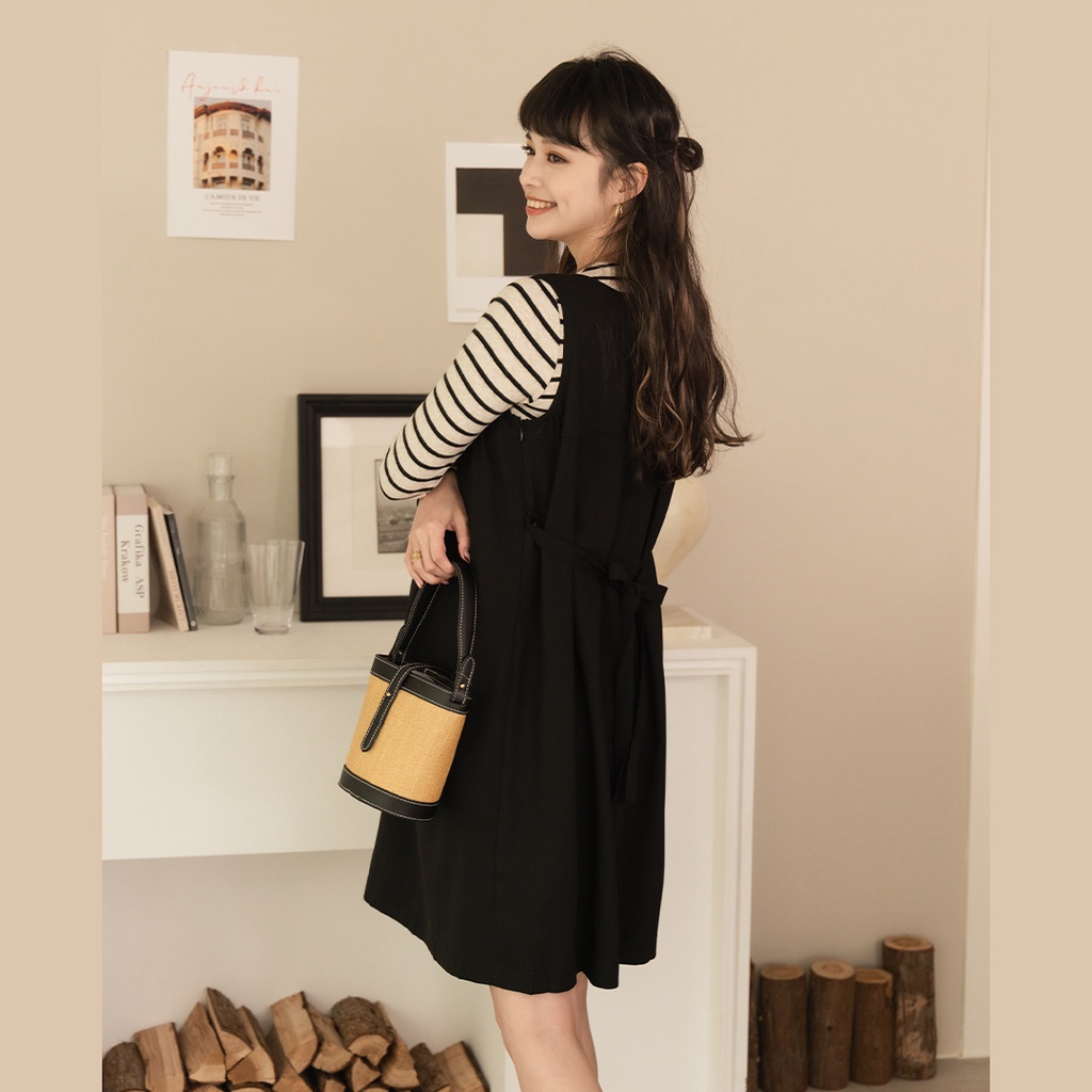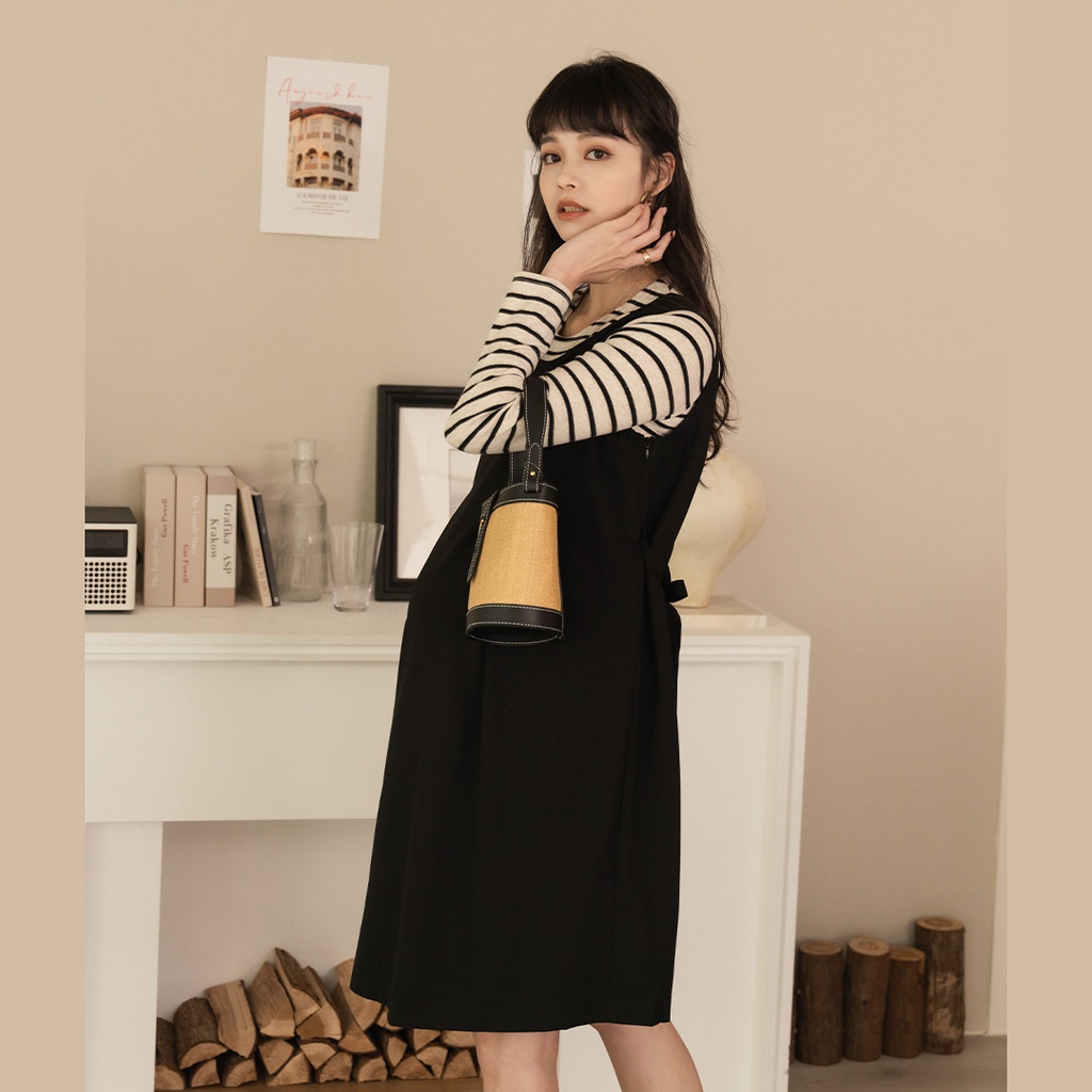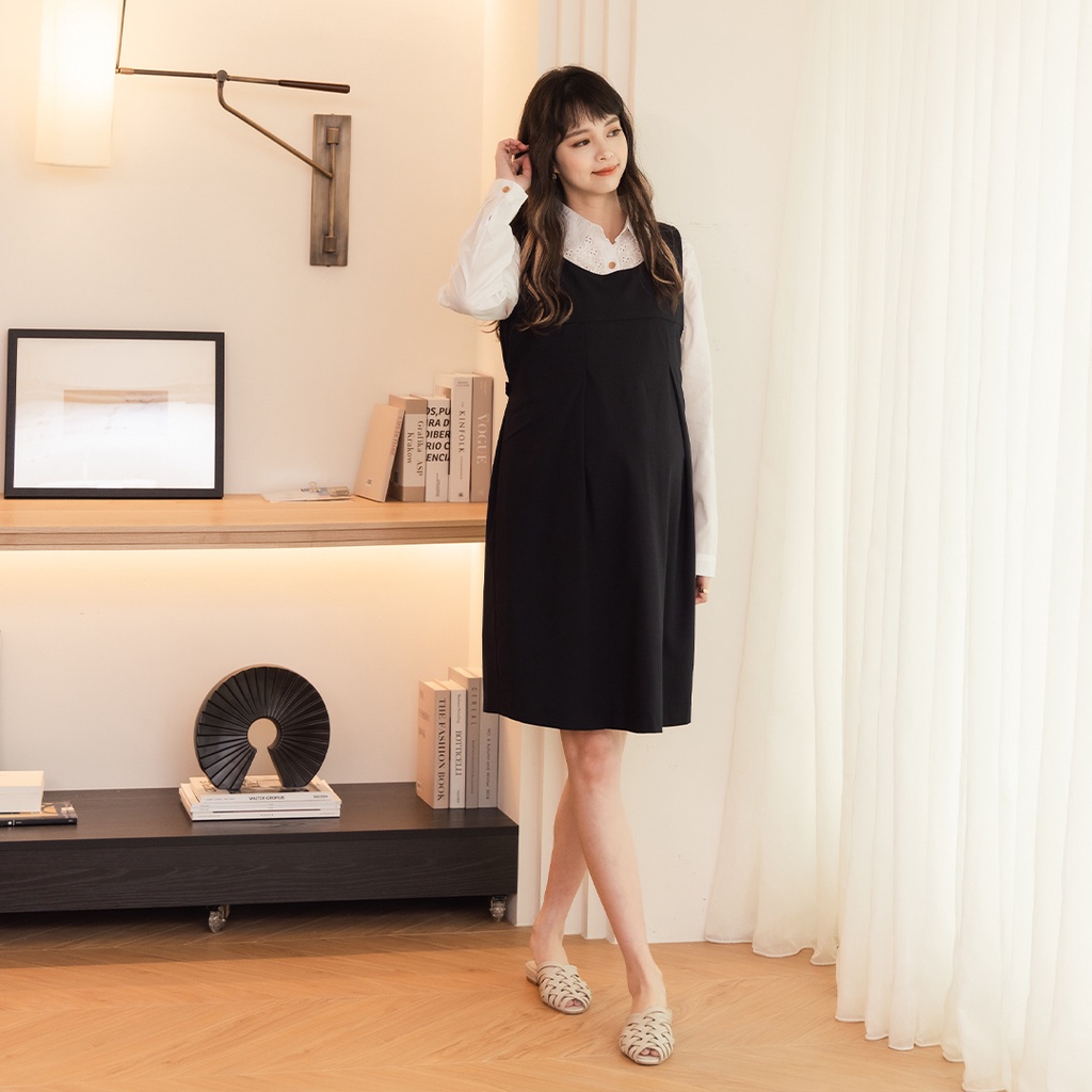 Mamamia孕婦裝 輕正裝圓領後綁帶孕婦洋裝 M~XL 正韓製 吊帶裙 孕婦裝 連身裙 孕婦洋裝 [A1871]黑,M|黑,L|黑,XL|深藍,M|深藍,L|深藍,XLMaternity DressesMamamia孕婦裝