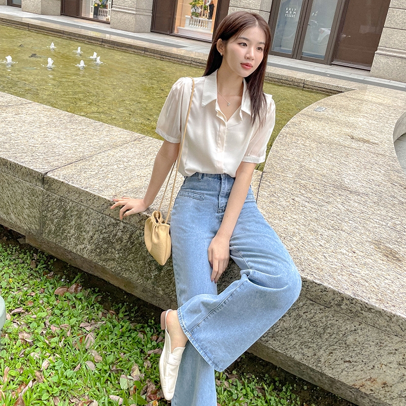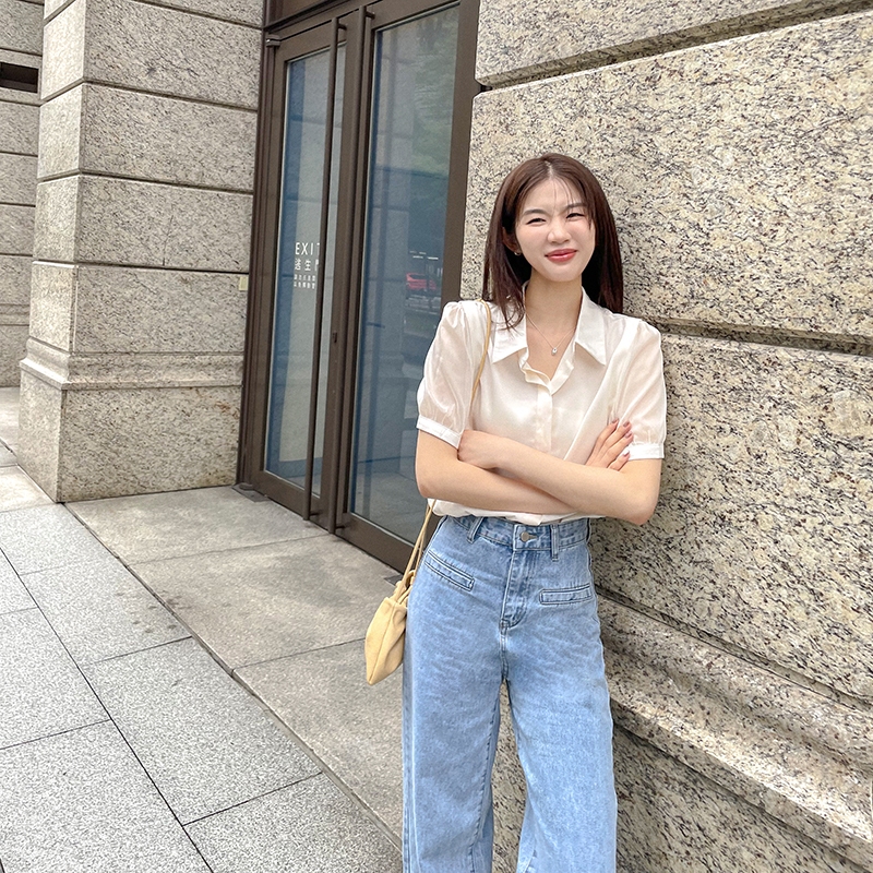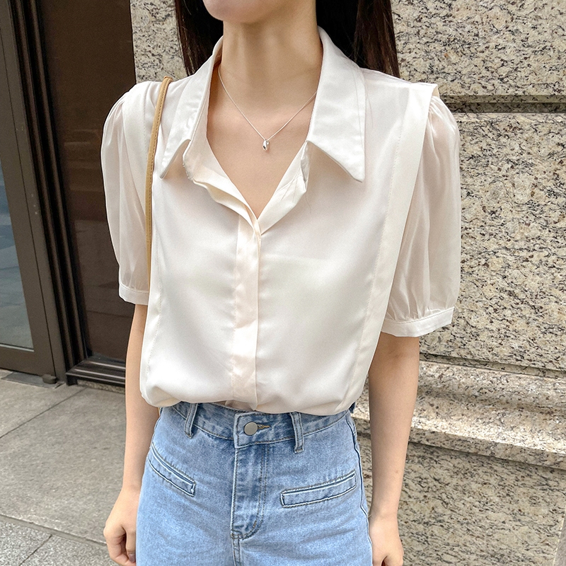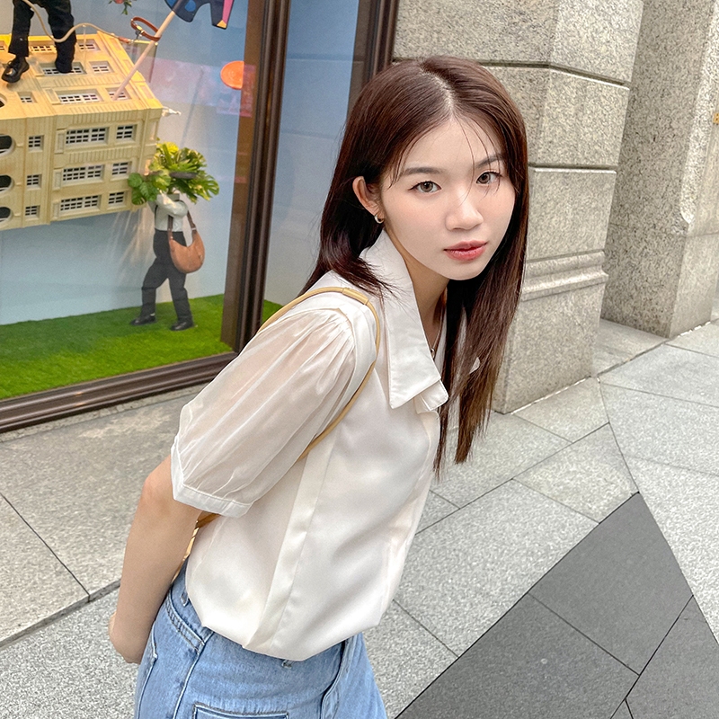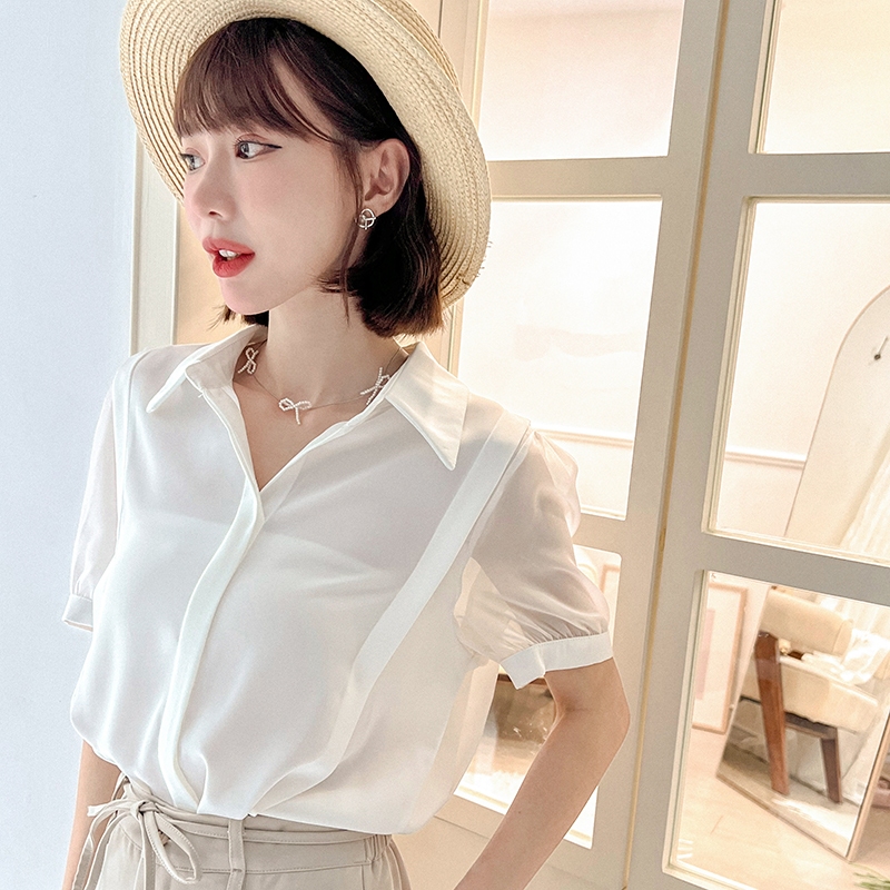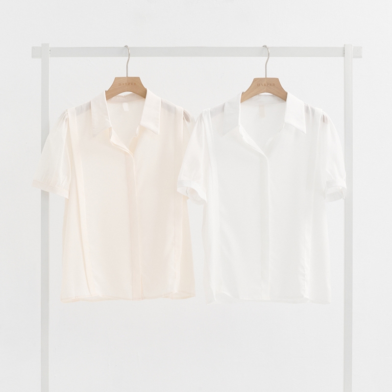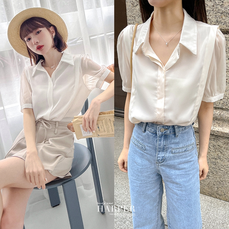 【HARPER】袖接紗雪紡上衣 |現貨 短袖 襯衫 上衣【CLC34620H】白,F|杏,FShirts & BlousesHARPER