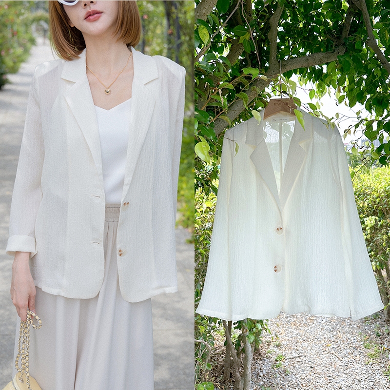 【HARPER】品牌自訂質感微透膚西裝外套 |現貨 西裝外套 長袖 透膚【JTF64921H】米杏,S~M|米杏,L~XLBlazersHARPER