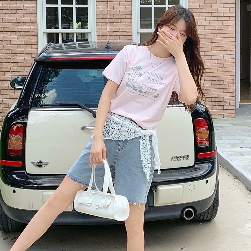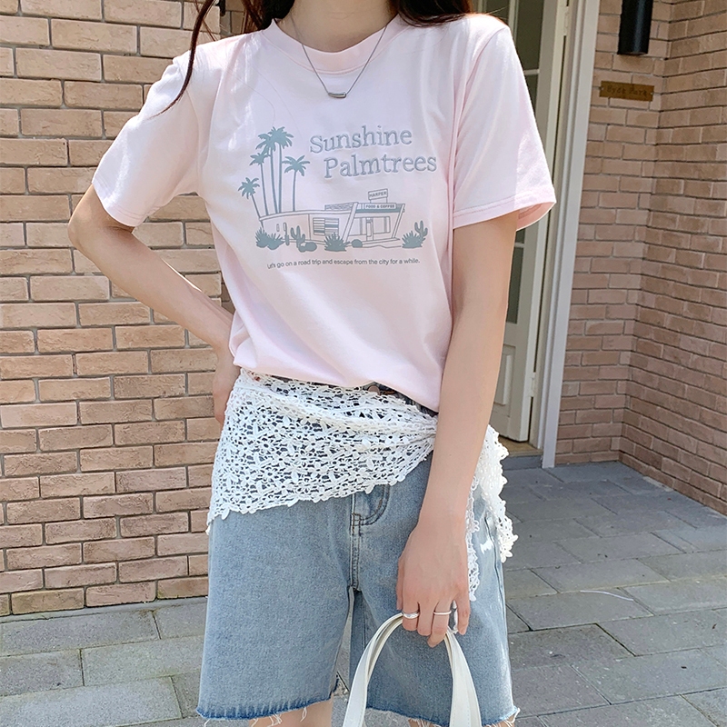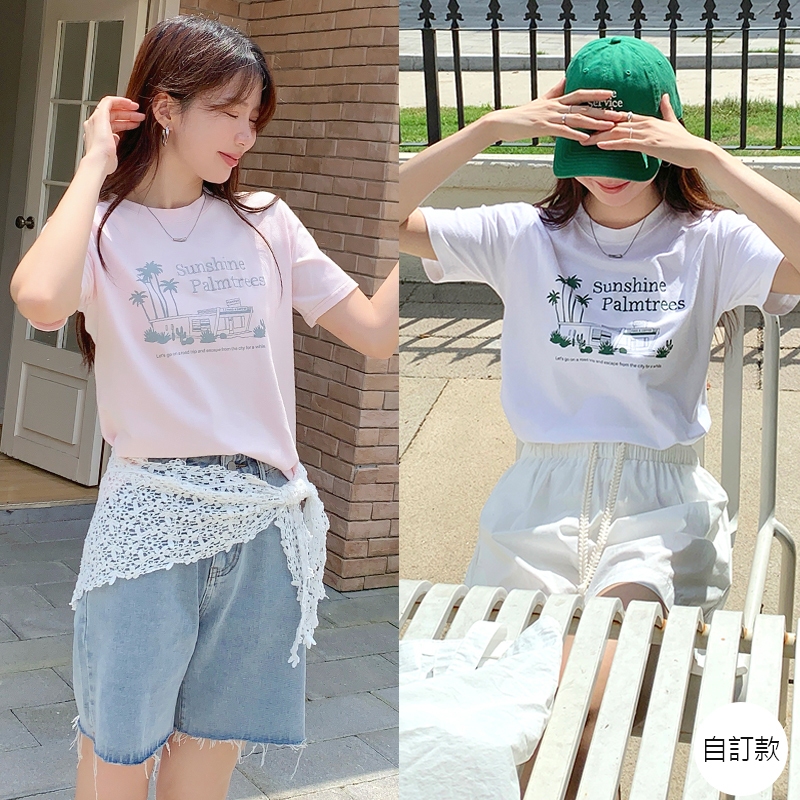 【HARPER】品牌自訂陽光棕櫚小店T恤 | 現貨 短袖上衣 字母T 圖案T T恤【CLE90628J】白,S~M|白,L~XL|草莓奶昔,S~M|草莓奶昔,L~XLT-shirtsHARPER
