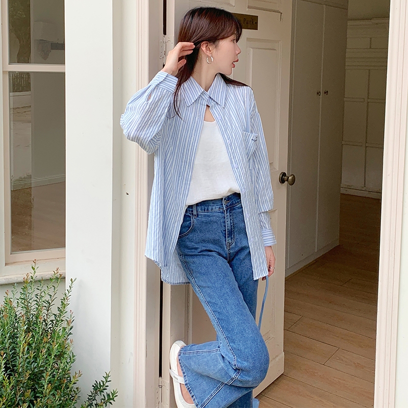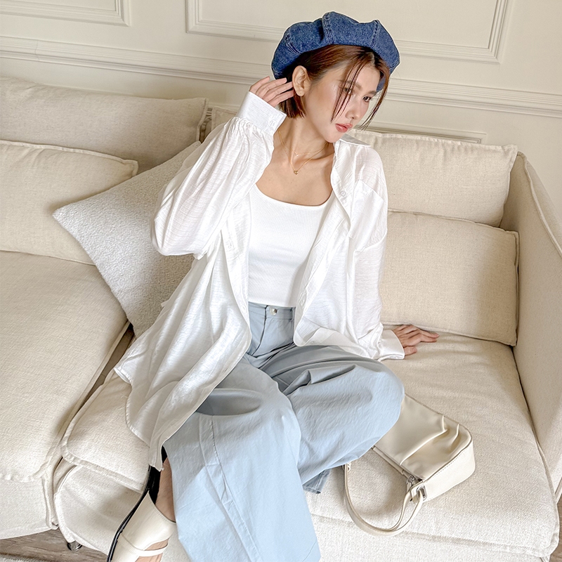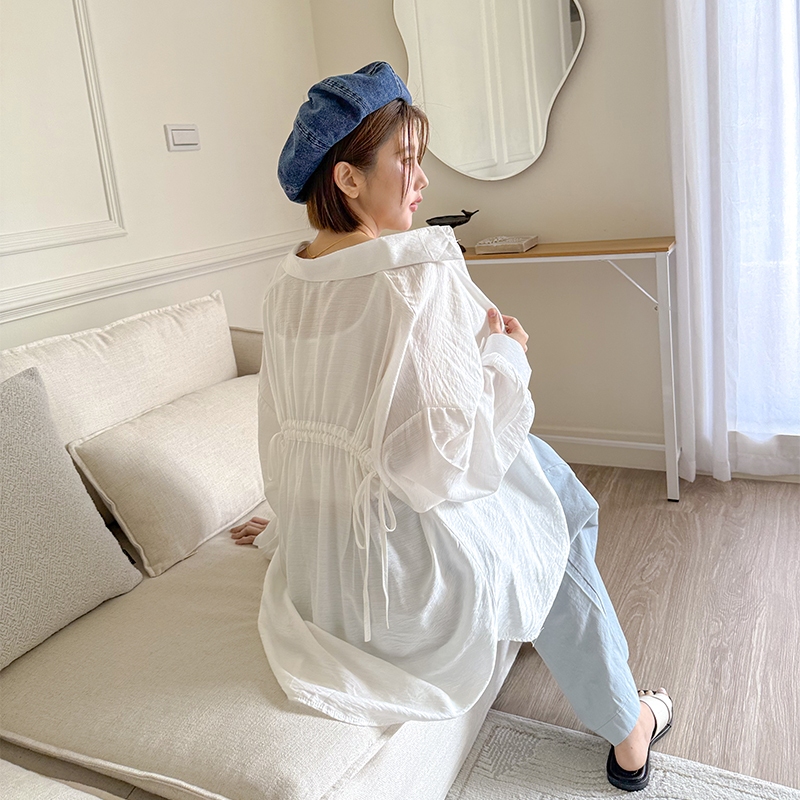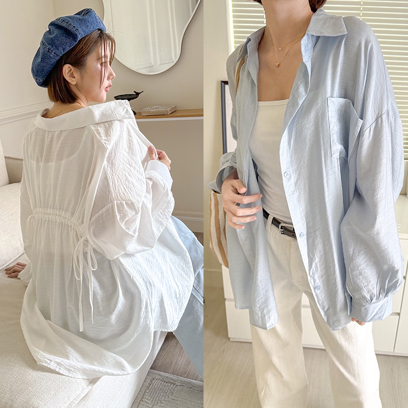 【HARPER】後抽繩綁帶襯衫 | 現貨 長袖上衣 襯衫 休閒【CLA95230J】白,F|藍,FShirts & BlousesHARPER
