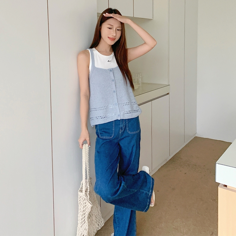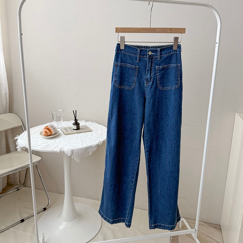 【HARPER】獨特車線彈力牛仔寬褲 | 現貨 牛仔褲 褲子 寬褲 長褲【PNZ70834J】藍,S|藍,M|藍,L|藍,XLHARPER