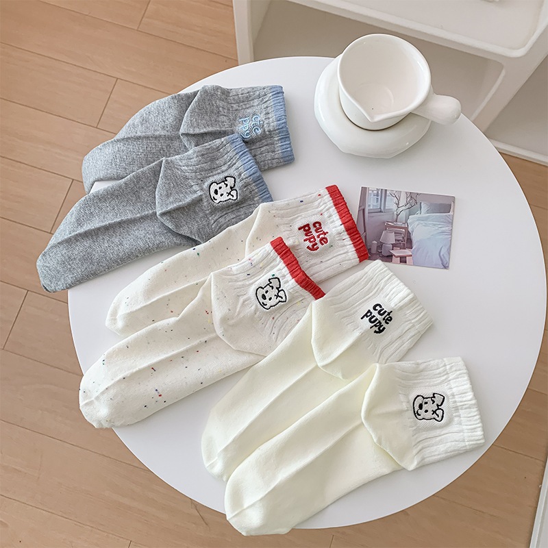 Material瑪特麗歐 可愛小狗短襪 K3039黑色|白色|米色|灰色SocksMaterial 瑪特麗歐 台灣製女鞋品牌 旗艦店
