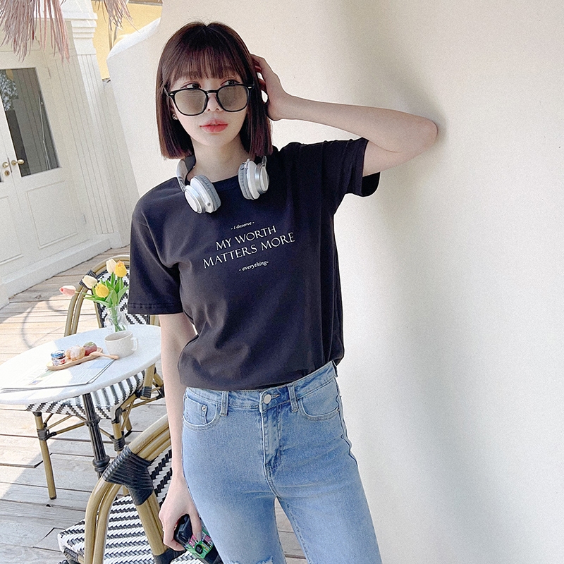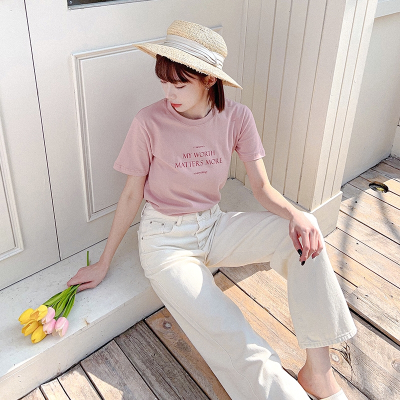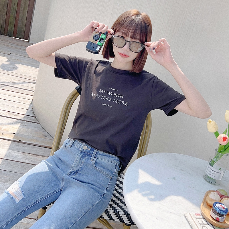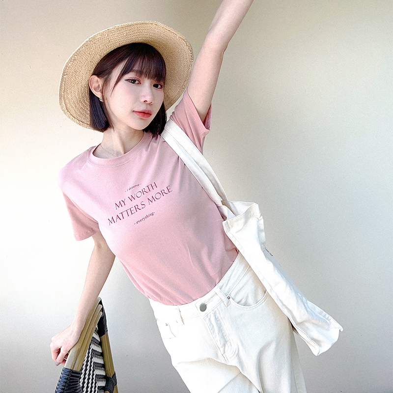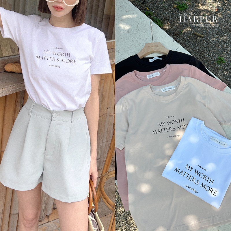 【HARPER】品牌自訂 i deserve 英文T恤 S~L 4色 |現貨 字母T T恤【CLB49413H】粉,L|黑,M|白,M|白,L|杏,S|粉,S|粉,M|黑,S|黑,L|白,S|杏,M|杏,LT-shirtsHARPER