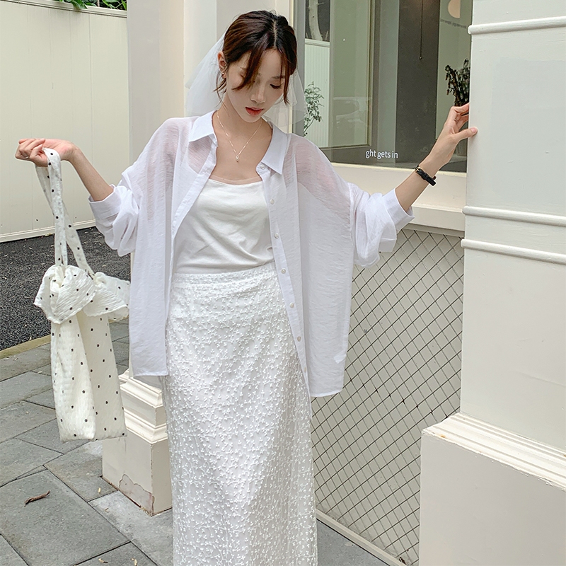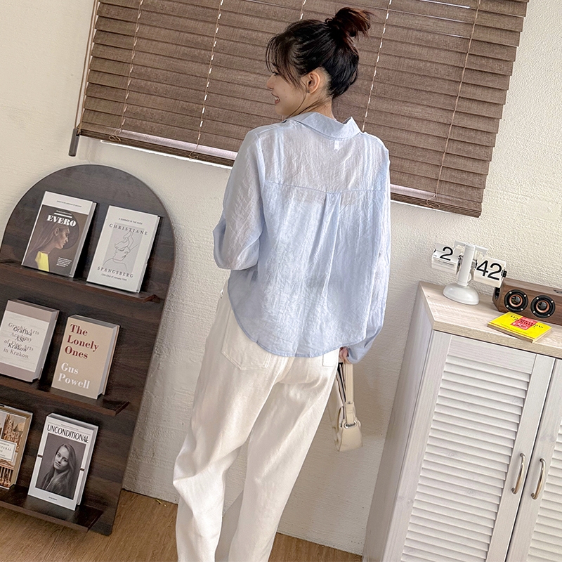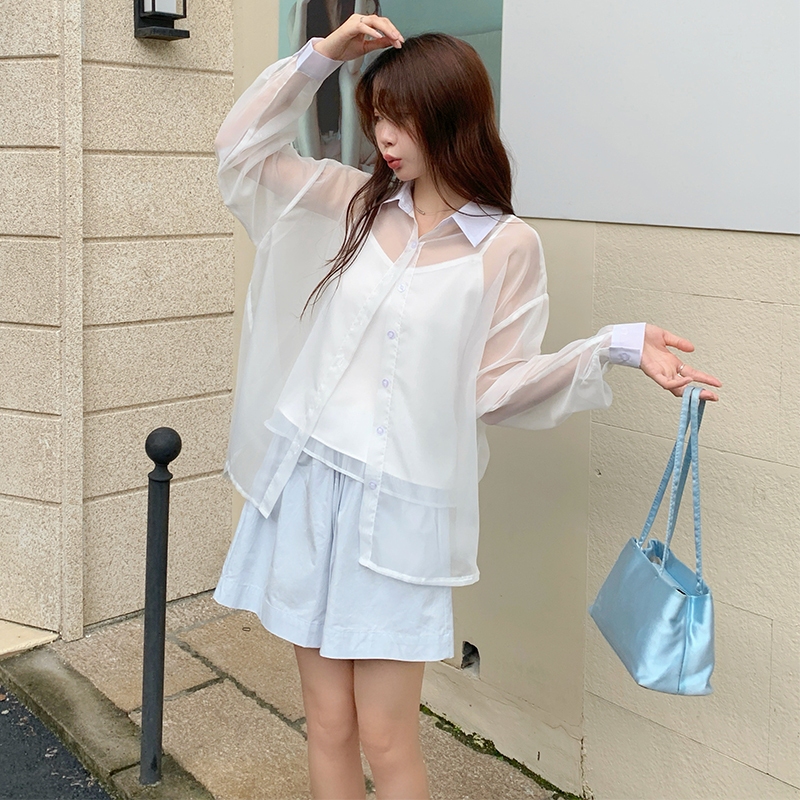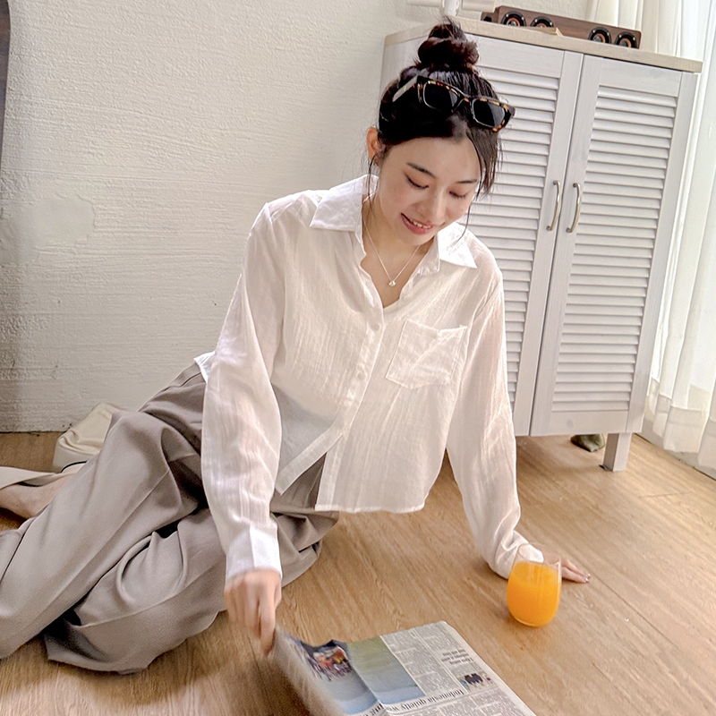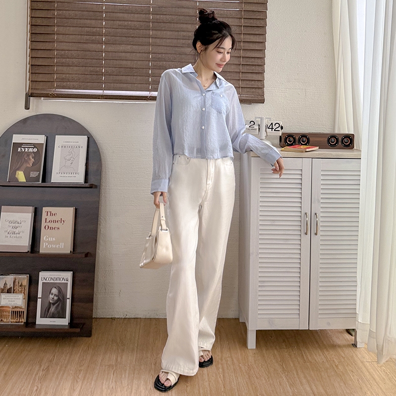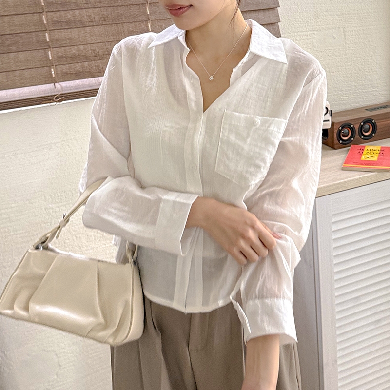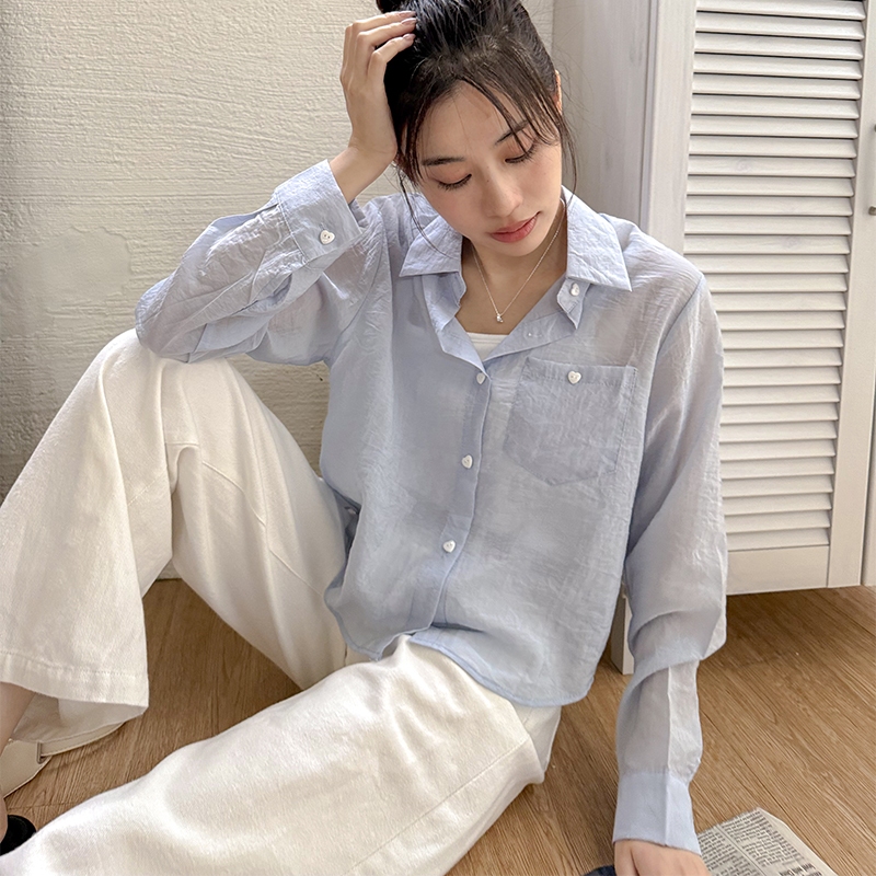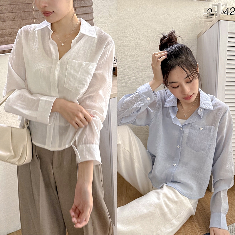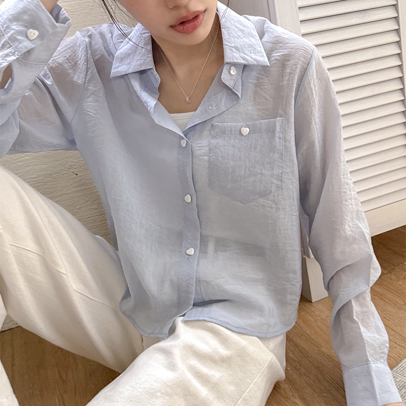 【HARPER】愛心釦單口袋透肌襯衫 | 現貨 長袖上衣 透肌 襯衫【CLE39624J】白,F|藍,FShirts & BlousesHARPER