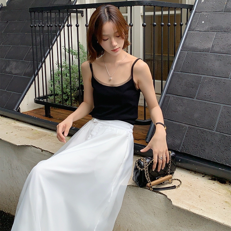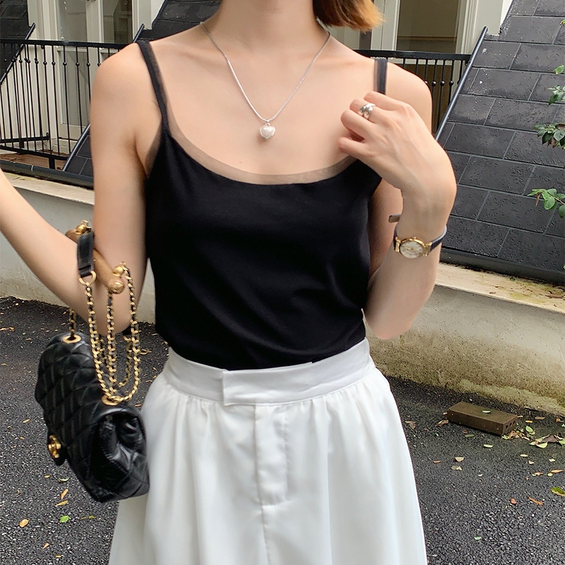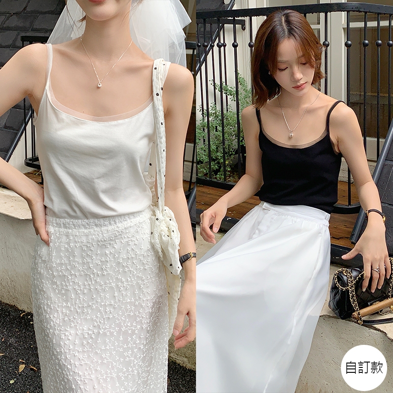 【HARPER】品牌自訂拼接紗彈性背心 | 現貨 無袖上衣 背心 內搭【CLB42025J】白,F|黑,FTanks & CamisolesHARPER