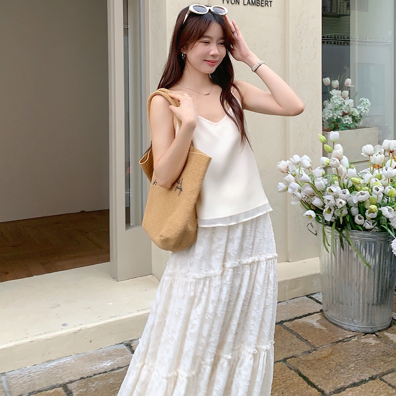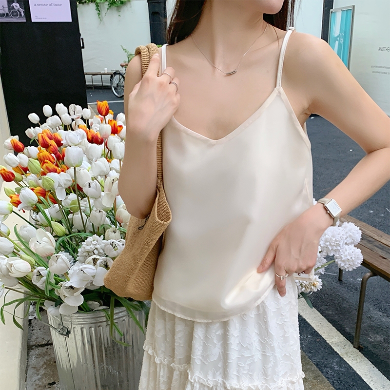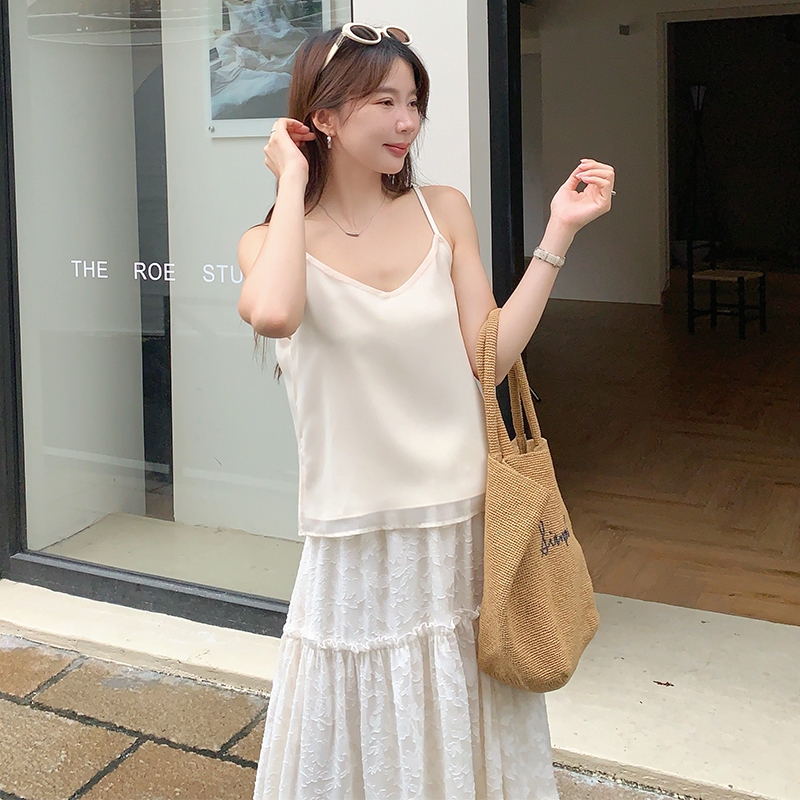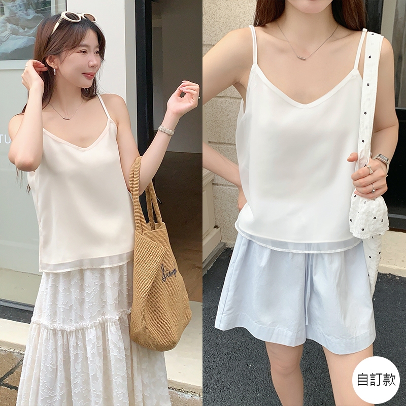 【HARPER】品牌自訂雙層透紗背心 | 現貨 無袖上衣 背心 細肩帶【CLA22129J】白,F|杏,FTanks & CamisolesHARPER