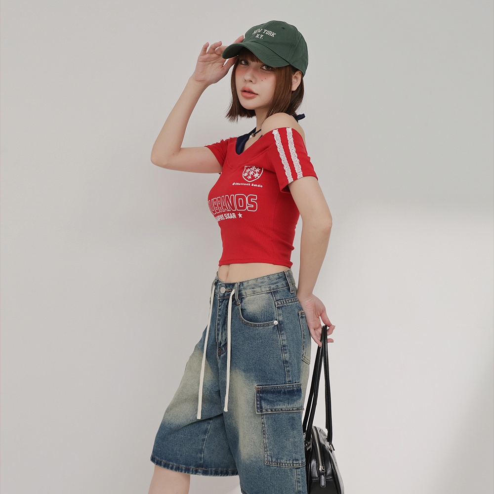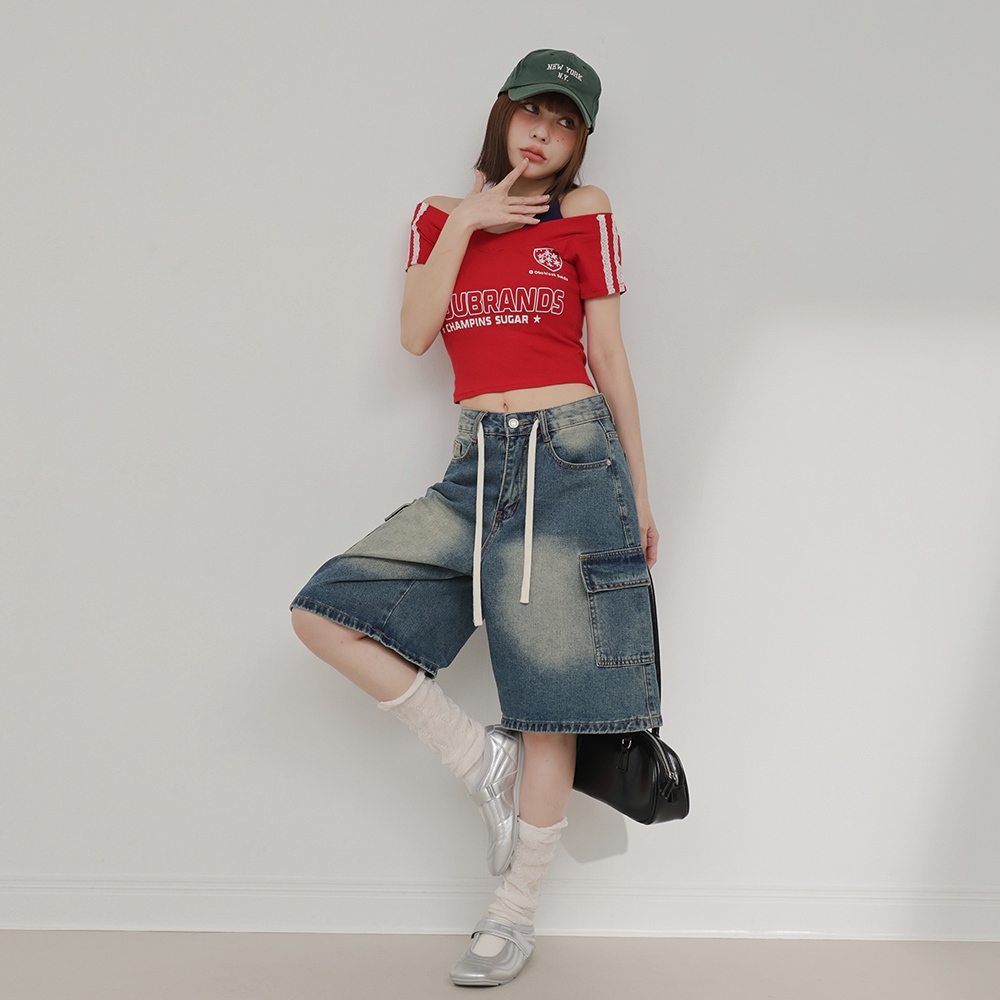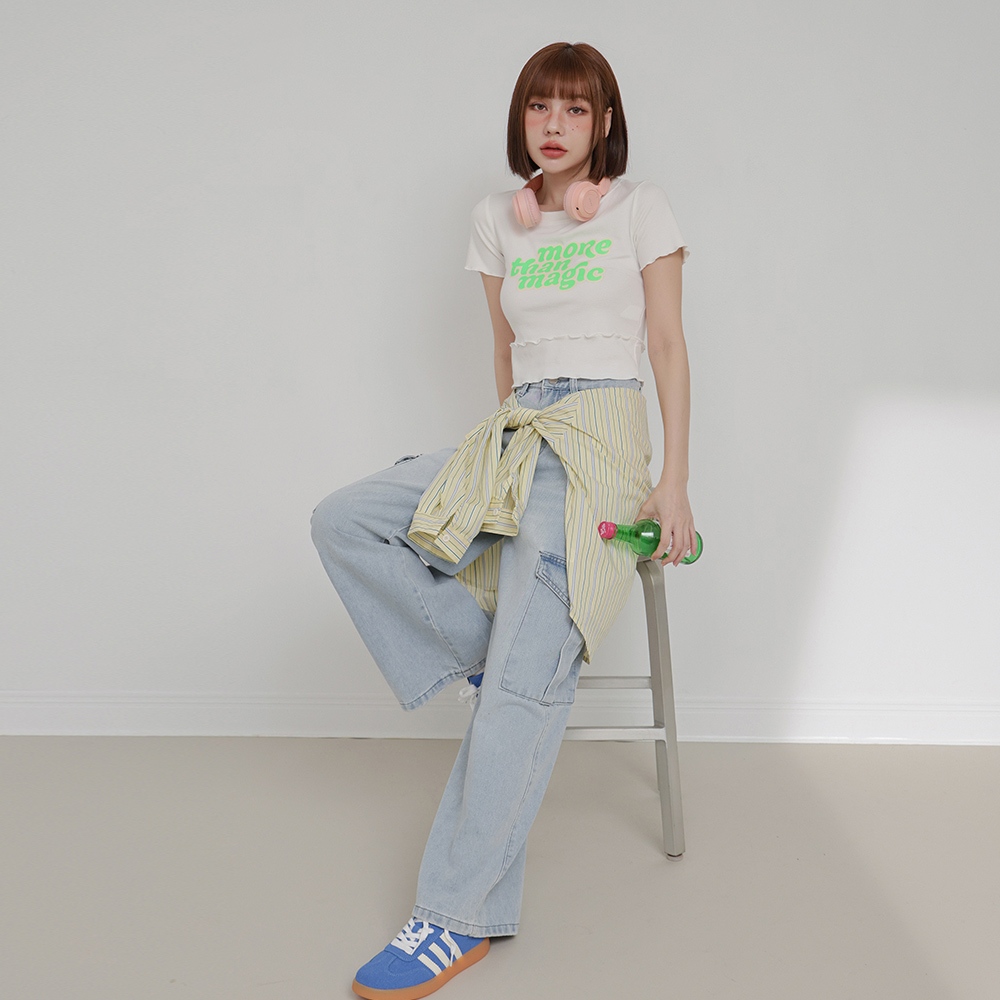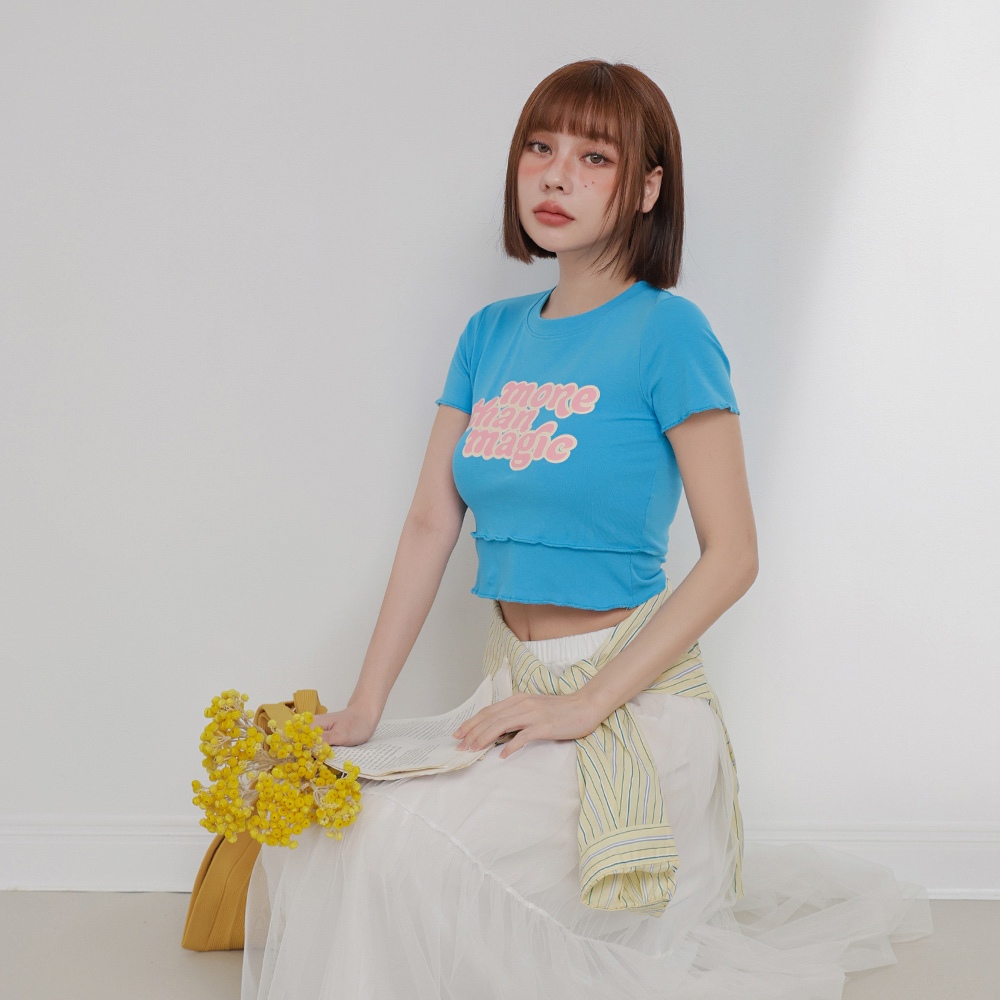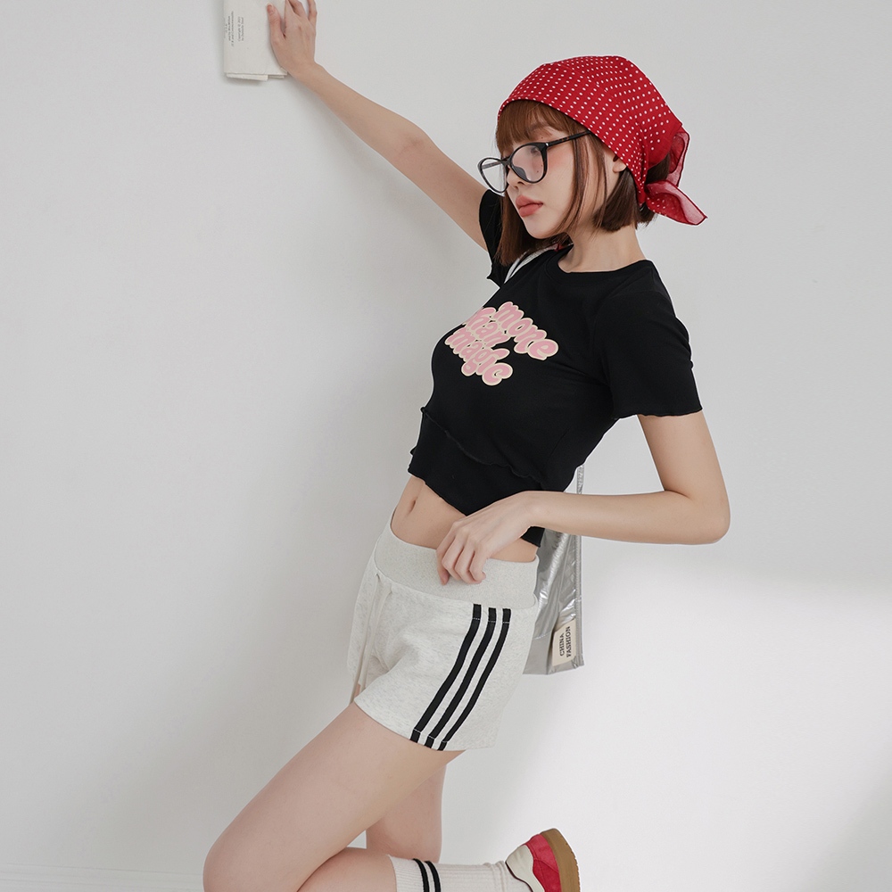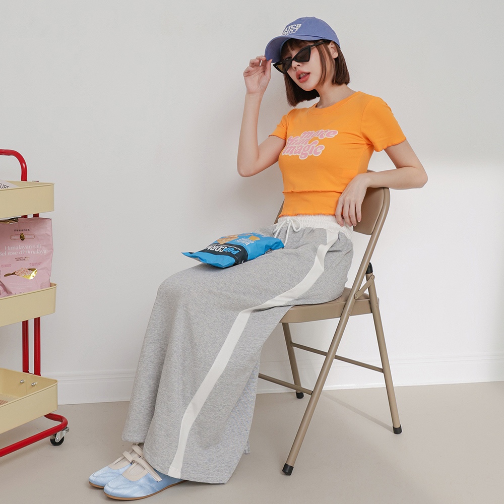 IN SHOP 雙層次撞色字短T-共4色【KT224448】白|橘|藍|黑T-shirtsIN’ SHOP 旗艦店