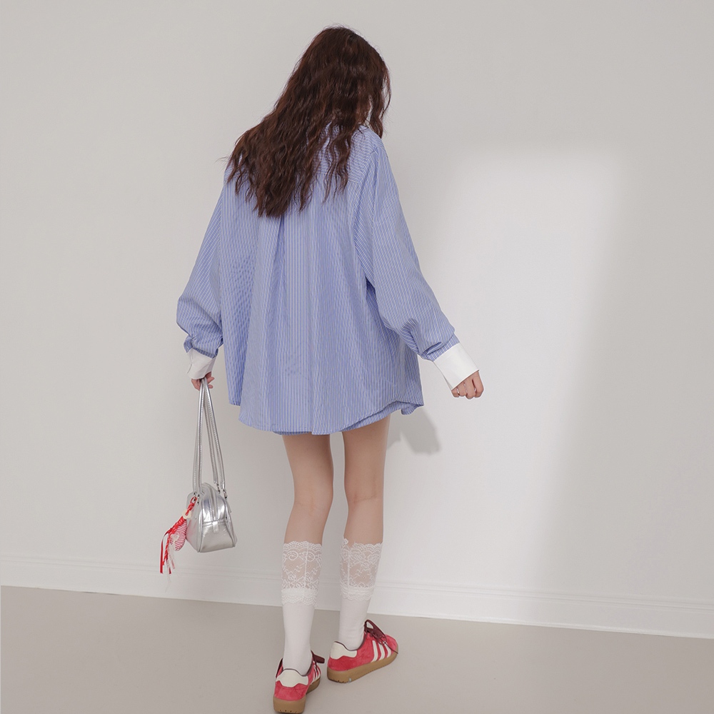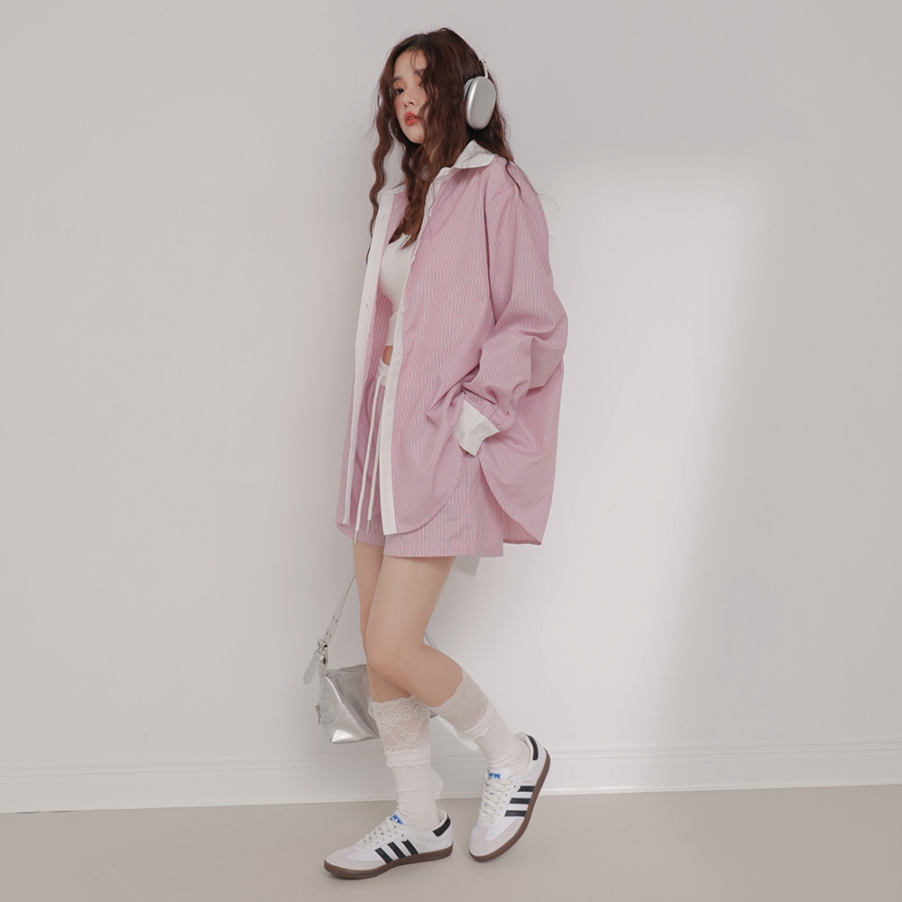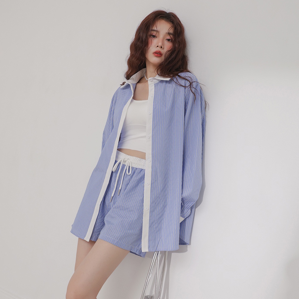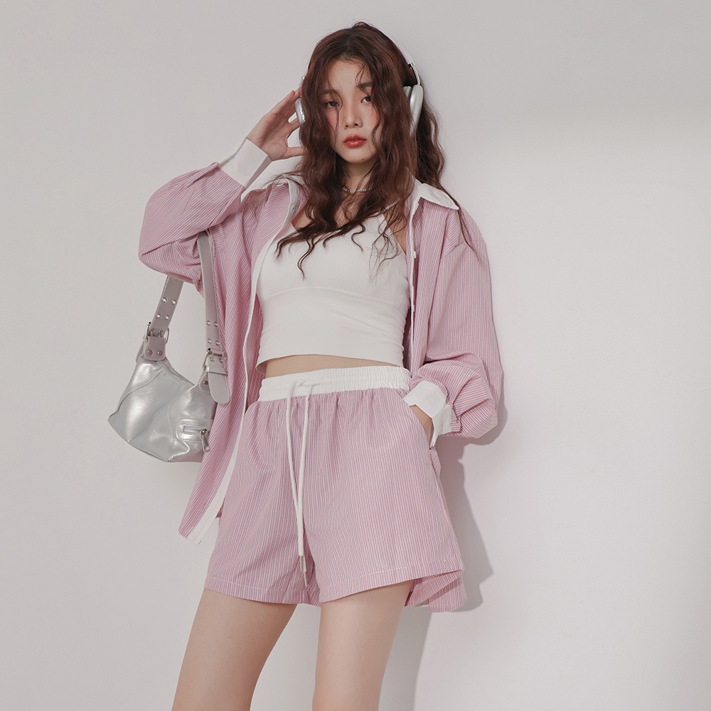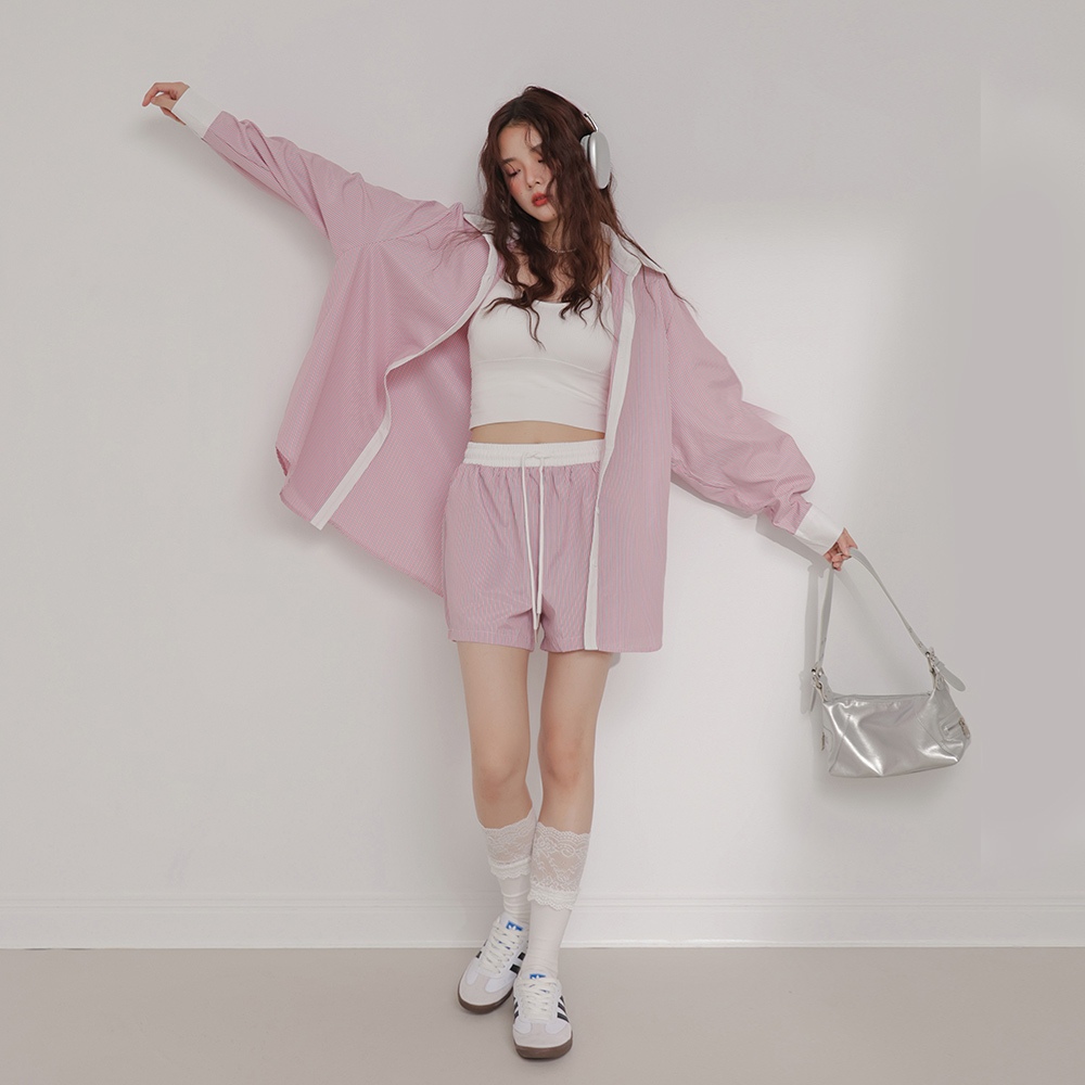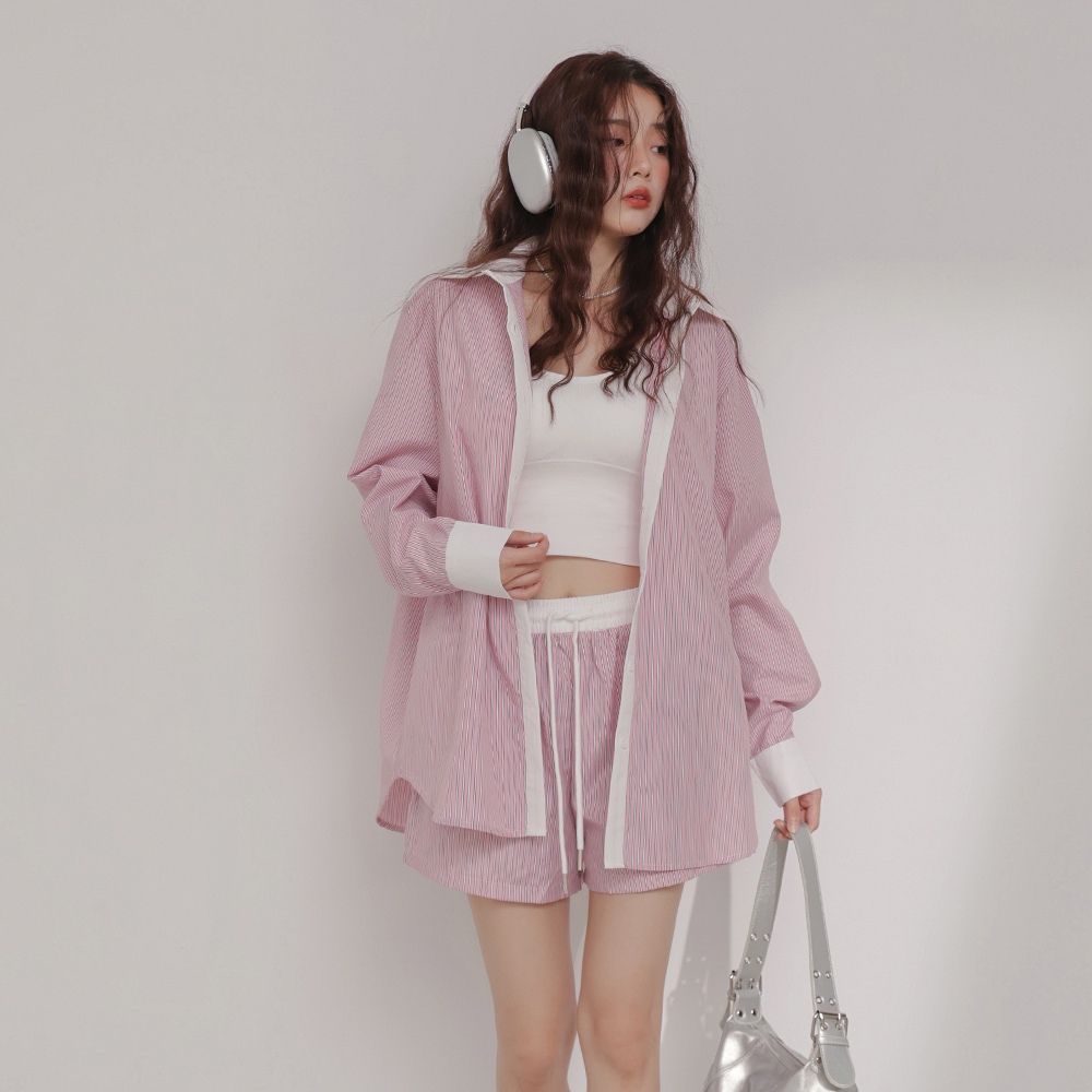 IN SHOP 韓系條紋襯衫/短褲套裝-共2色【KT24544】粉|藍Individual SetsIN’ SHOP 旗艦店
