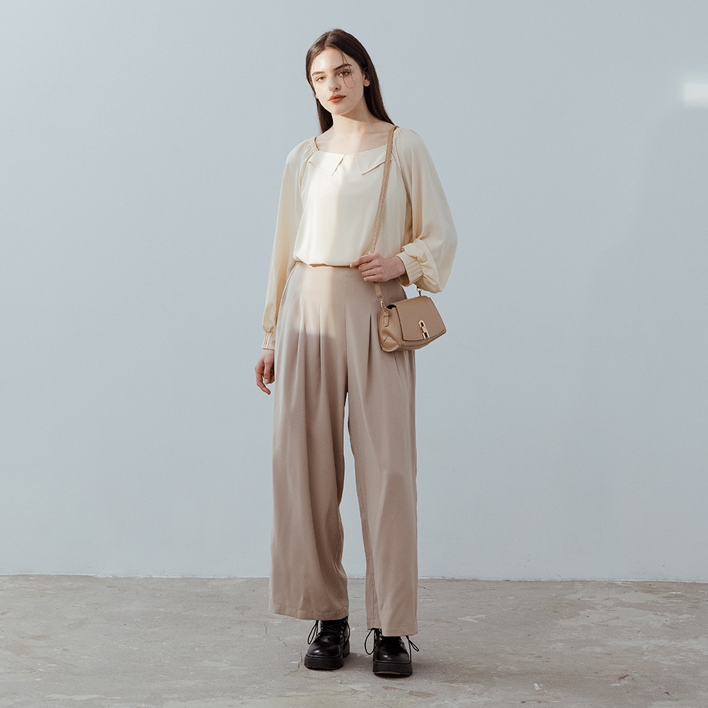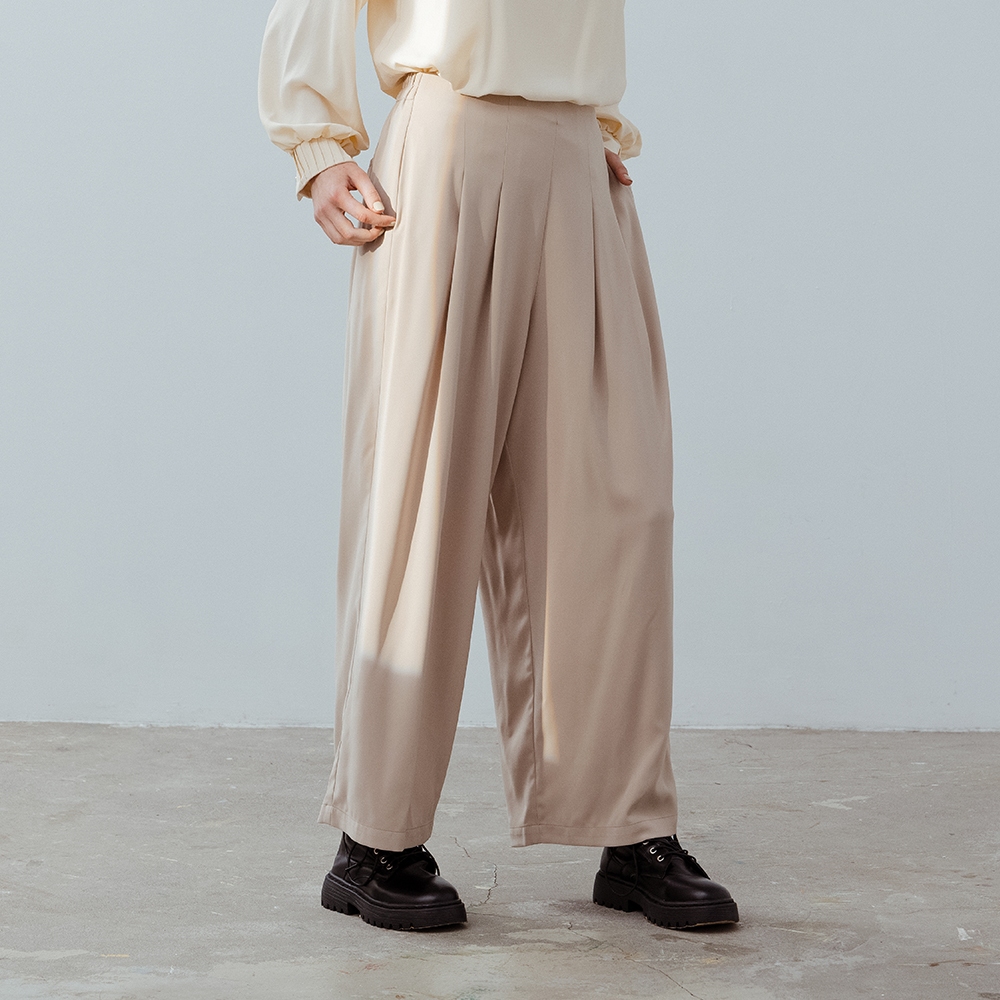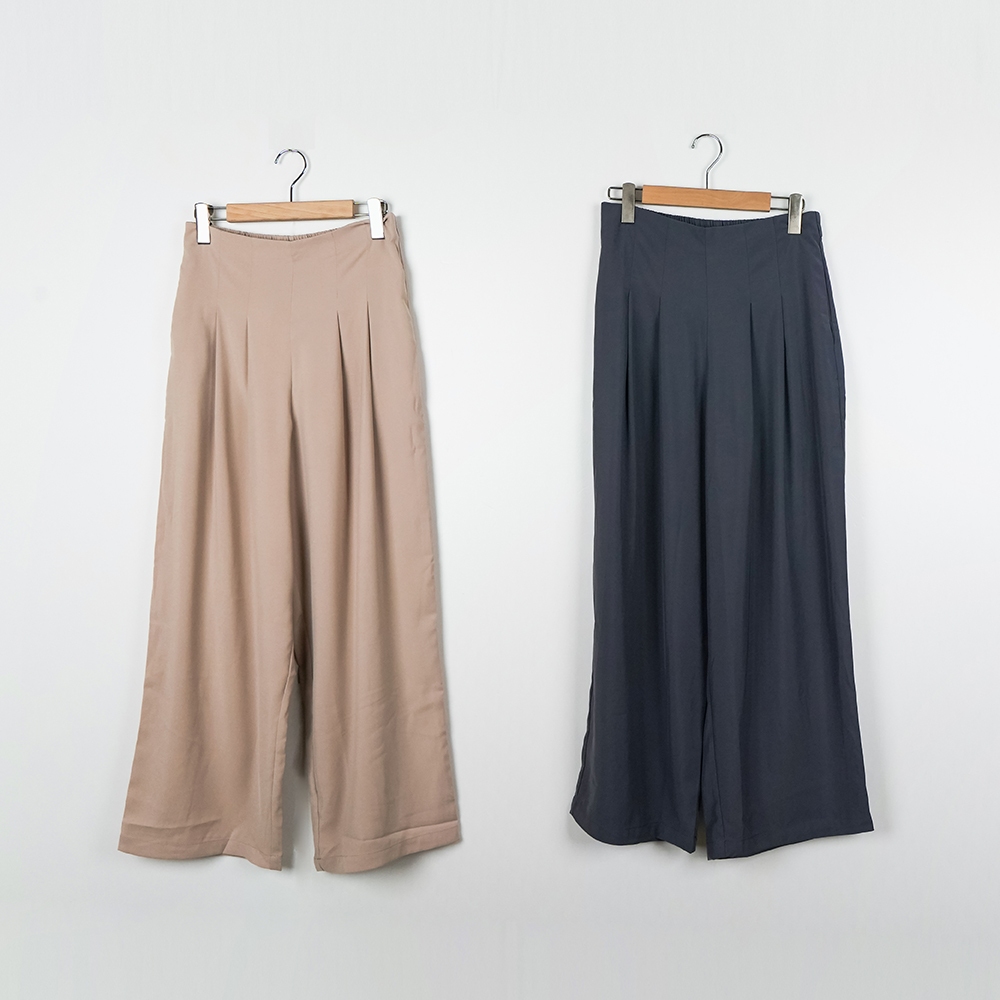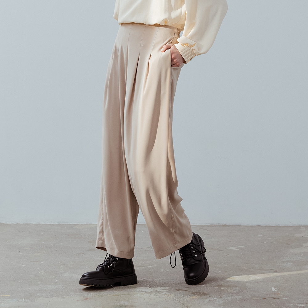 【MASTINA】後腰鬆緊長寬褲 卡 灰卡/M|灰/M|卡/L|灰/LPantsINLook 流行女裝品牌旗艦店