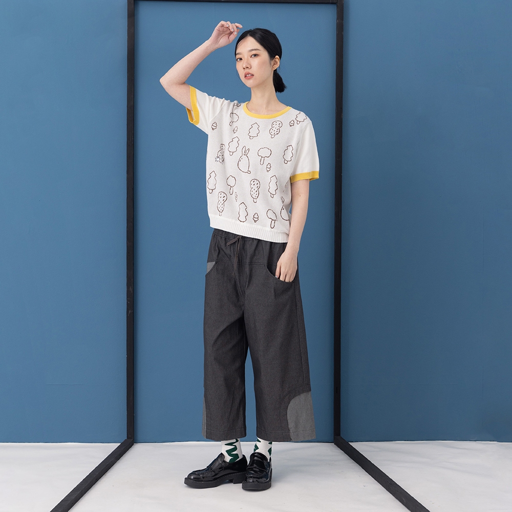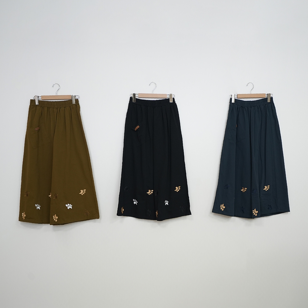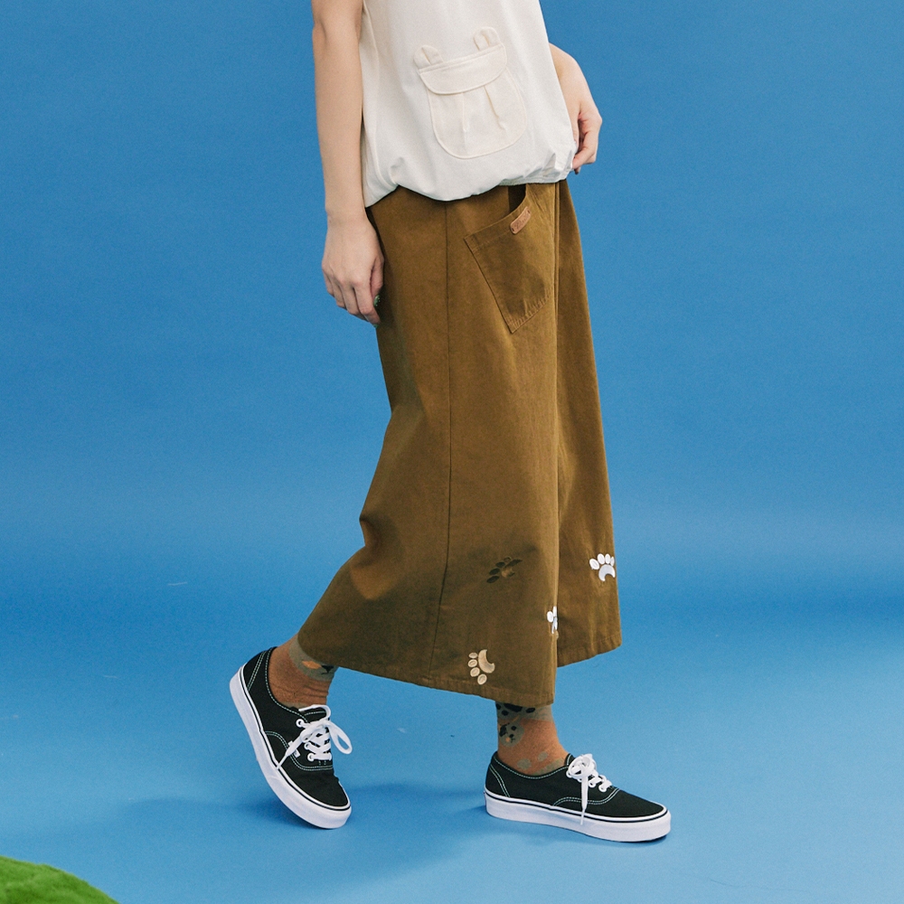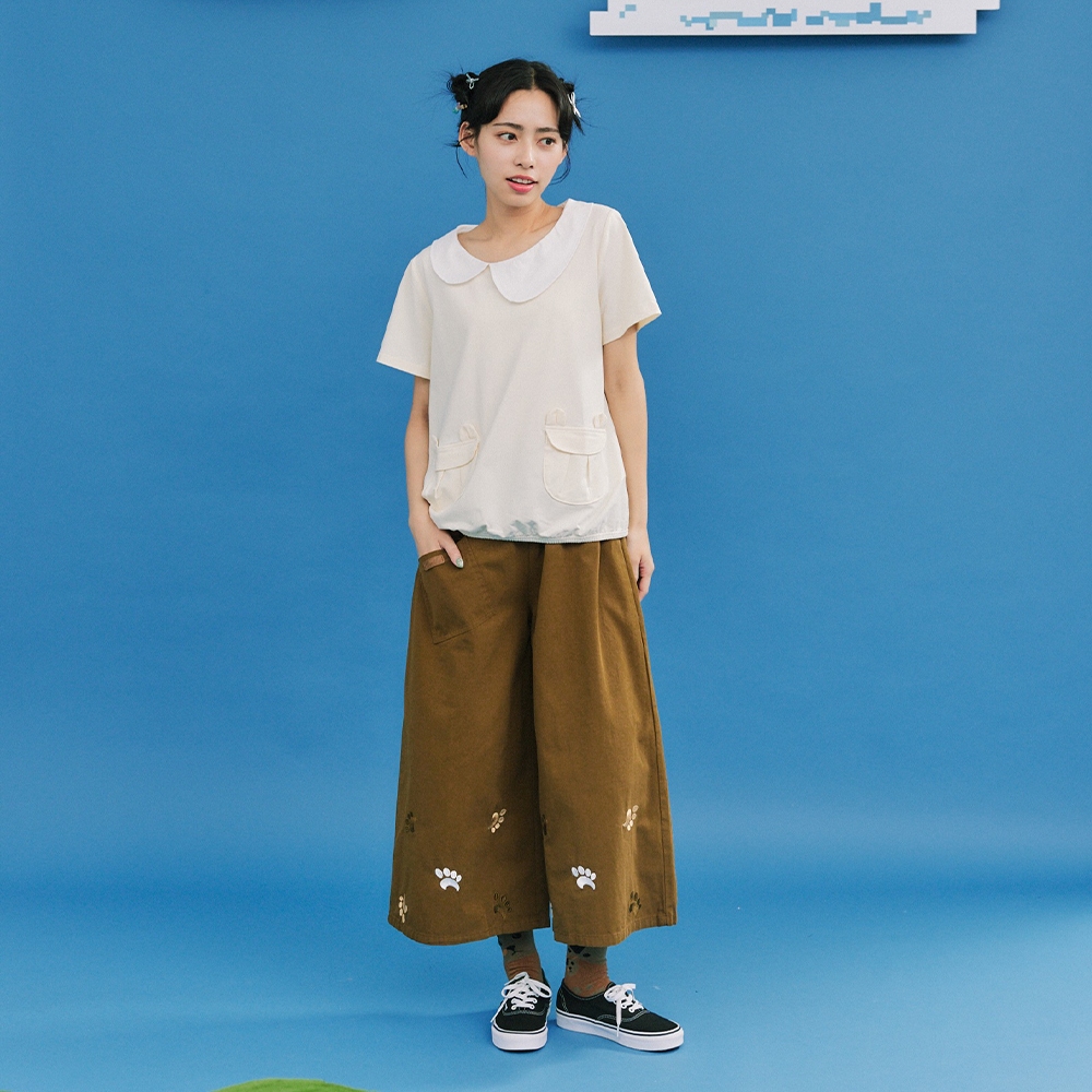 【Dailo】可愛熊掌印印花九分寬褲 深藍 黑 芥黃深藍/F|黑/F|芥黃/FPantsINLook 流行女裝品牌旗艦店