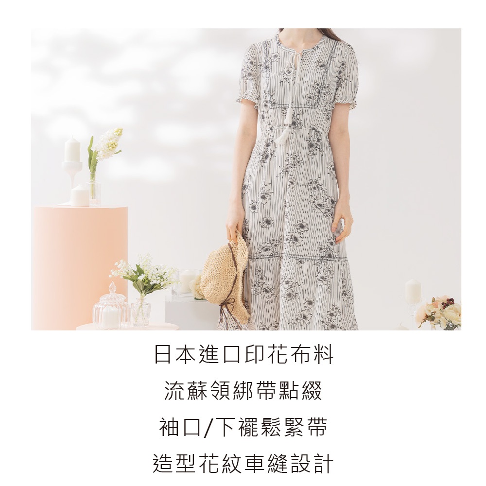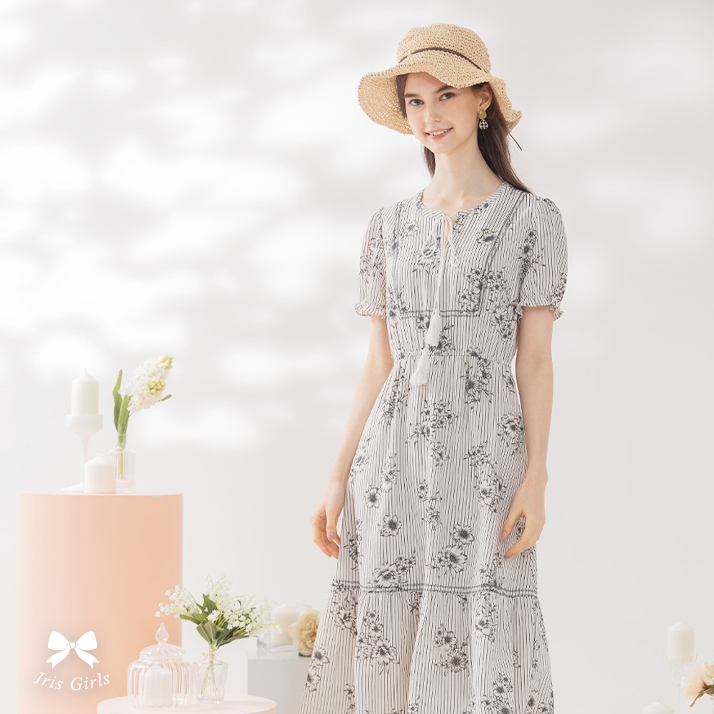 Iris Girls 艾莉詩 甜漾復古印花長洋裝-白色 41643白色,XL|白色,M|白色,LIRIS 艾莉詩服飾 官方旗艦店