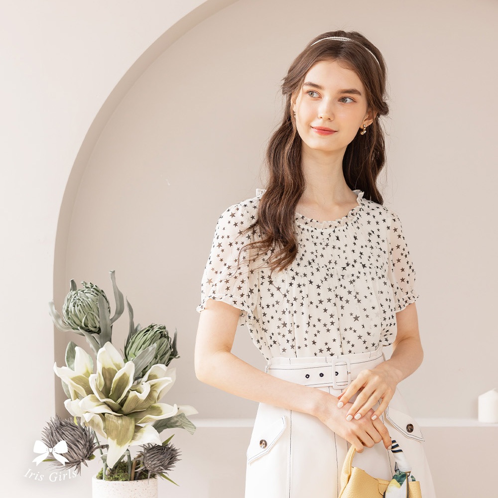 Iris Girls 艾莉詩 星空美學雪紡上衣-2色 41152淺米白,M|淺米白,L|黑色,M|黑色,LOthersIRIS 艾莉詩服飾 官方旗艦店
