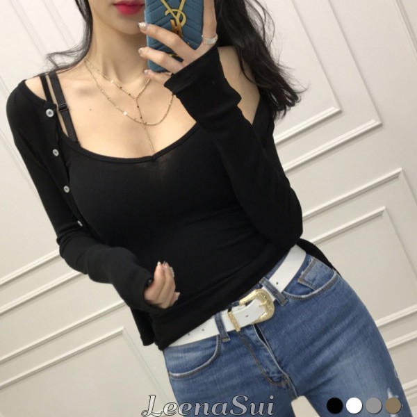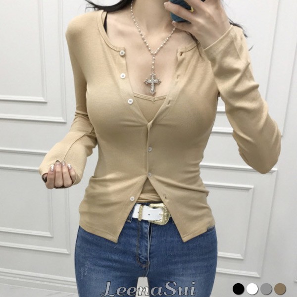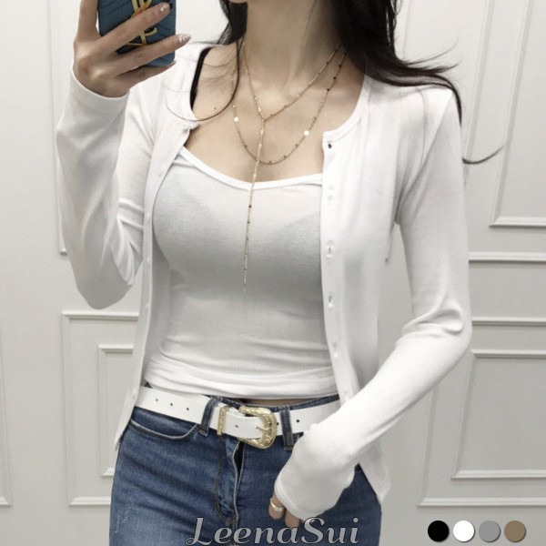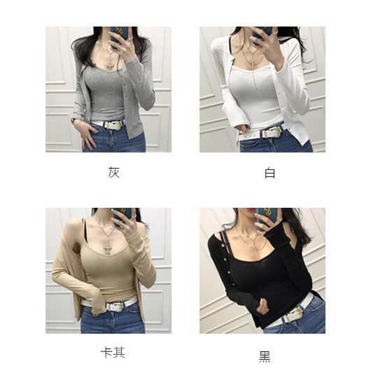 外套 二件式套裝 女生衣服 冰絲細肩小可愛 優雅U領吊帶背心+開衫外套 兩件式套裝 062118黑|白|灰|卡其VestsLeenaSui ~台灣賣家 隔日到貨