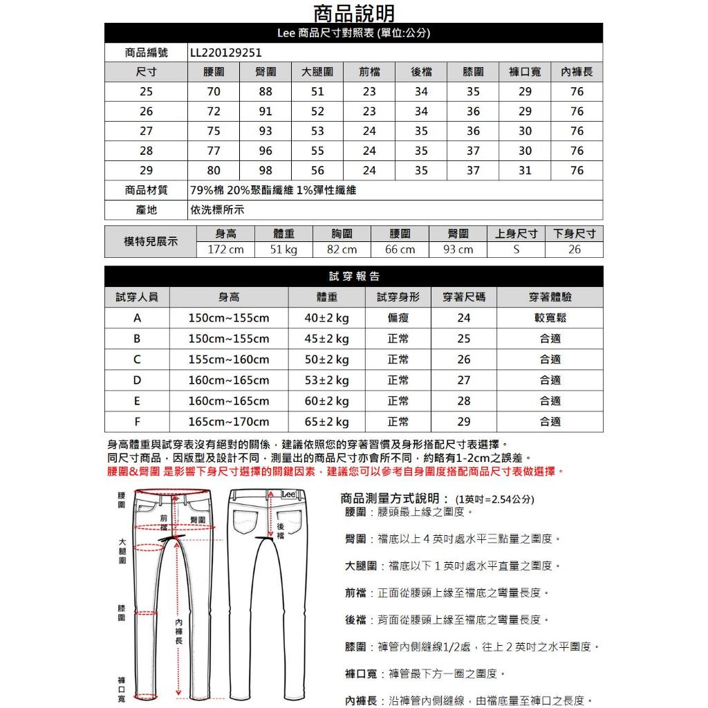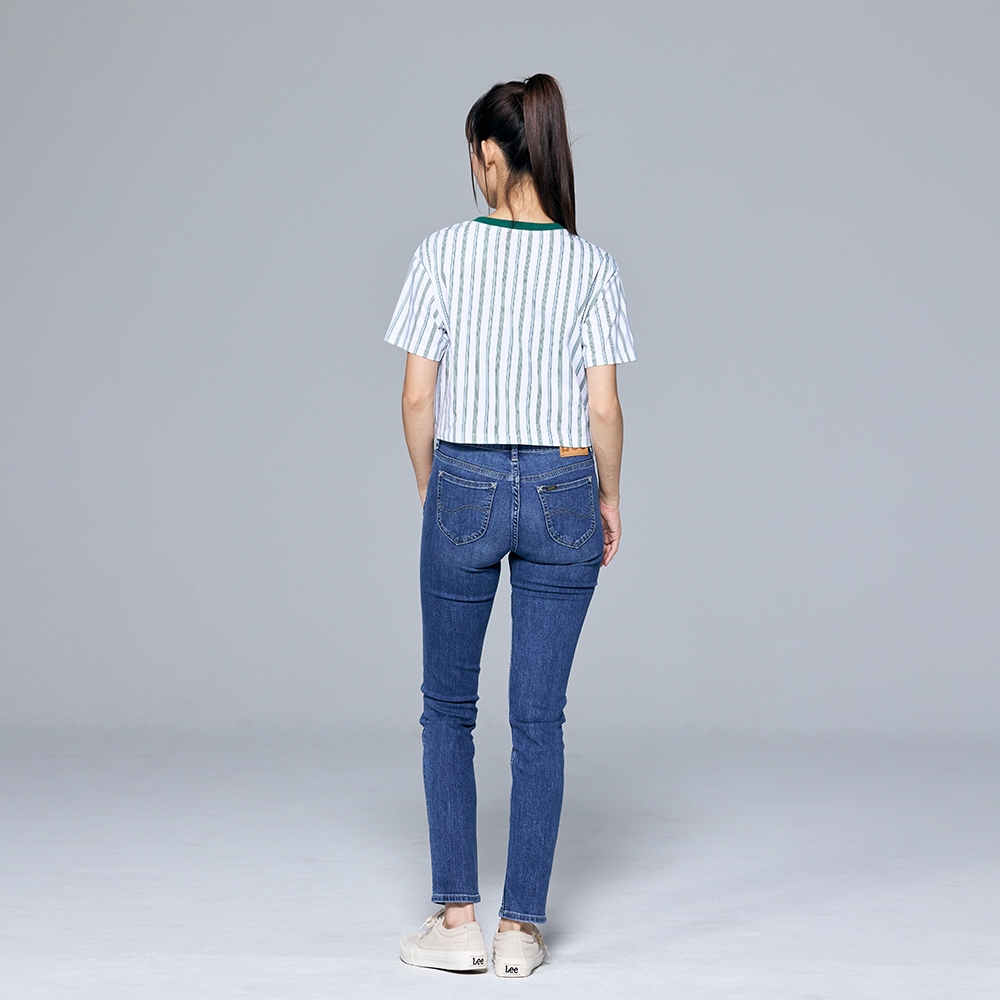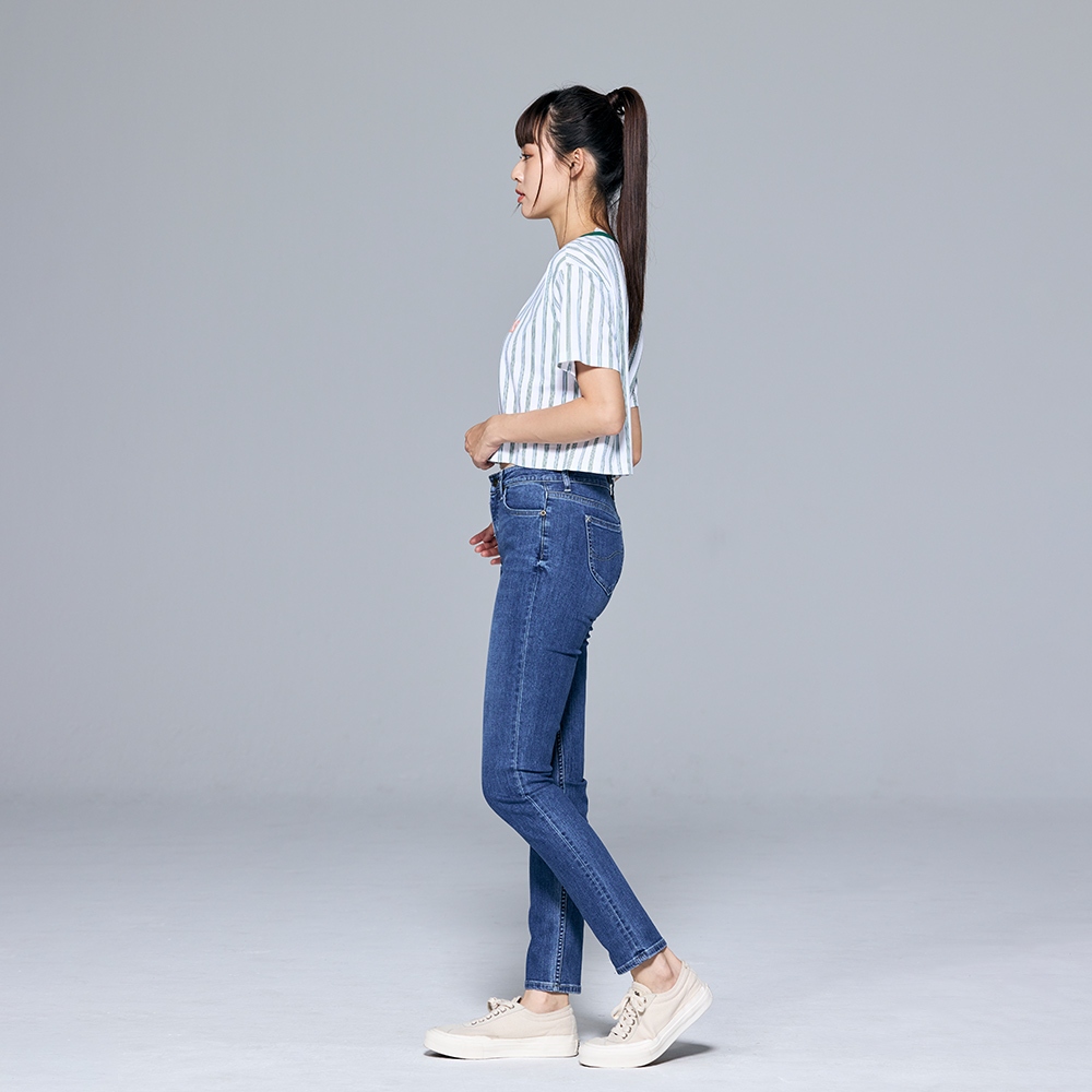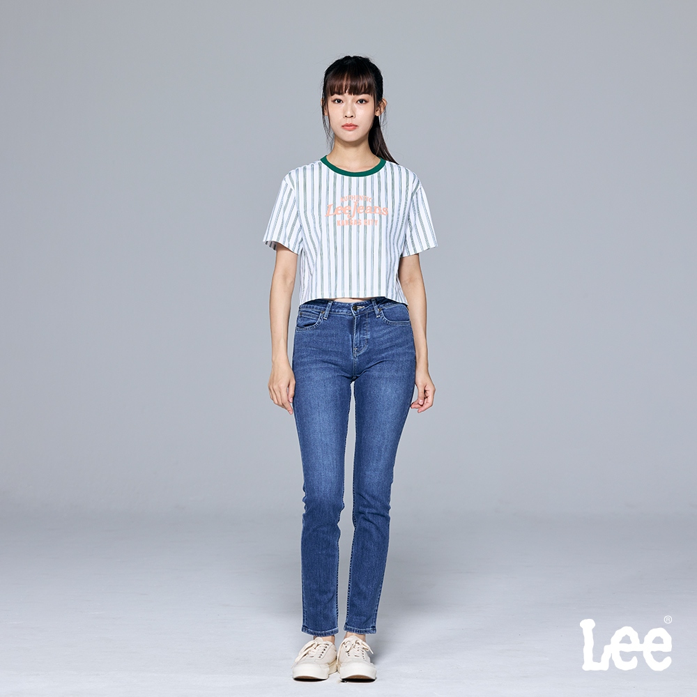 Lee 409 彈性中腰合身小直筒牛仔褲 女 中藍洗水 LL22012925128|29|30|25|26|27Lee Jeans 品牌旗艦店