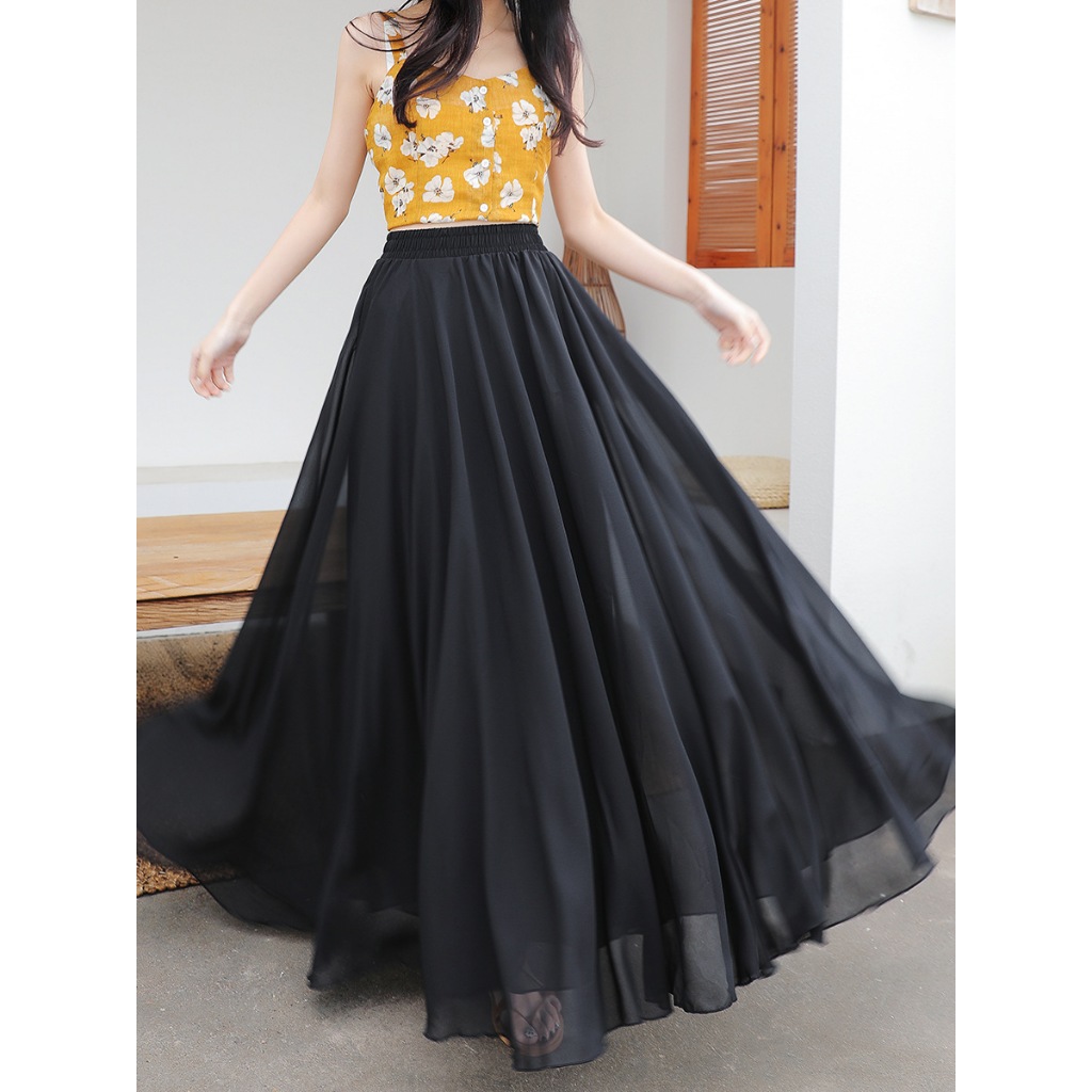 長裙 大擺三層雪紡半身裙 A字裙 長裙顯瘦沙灘仙女裙跳舞裙059021黑,85CM|黑,90CM|白,85CM|白,90CM|淺沙色,85CM|淺沙色,90CM|粉紫,85CM|粉紫,90CM|裸色,85CM|裸色,90CM|裸粉,85CM|裸粉,90CMLeenaSui ~台灣賣家 隔日到貨