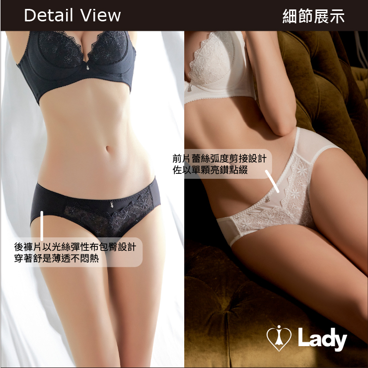 Lady 花履奇緣系列 中腰 刺繡 蕾絲 三角褲 (晨光白)M|L|XLPantiesLady內衣官方直營旗艦店